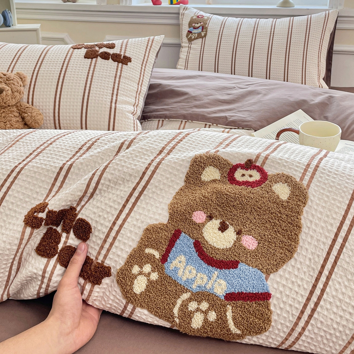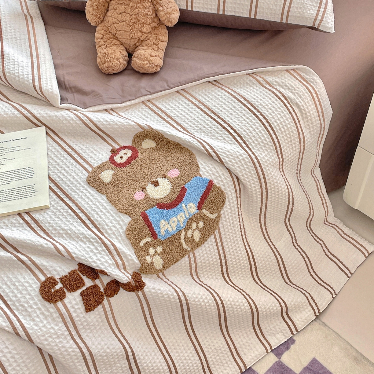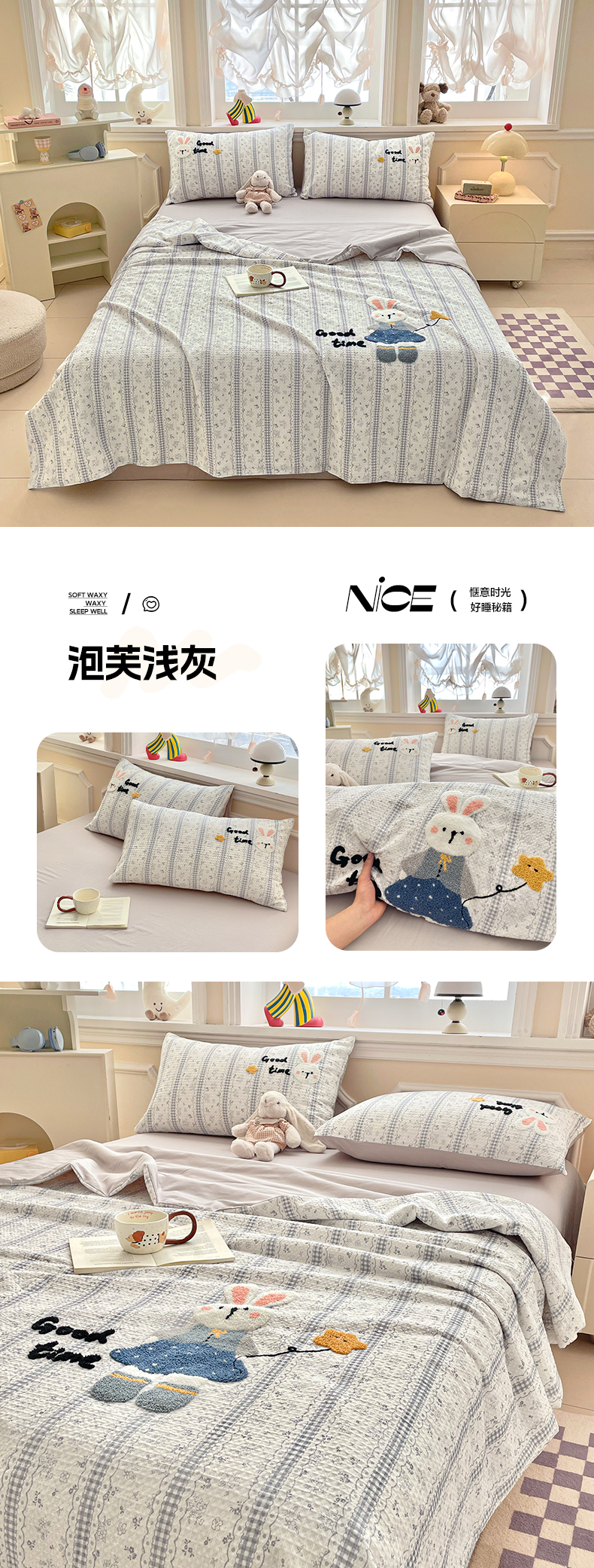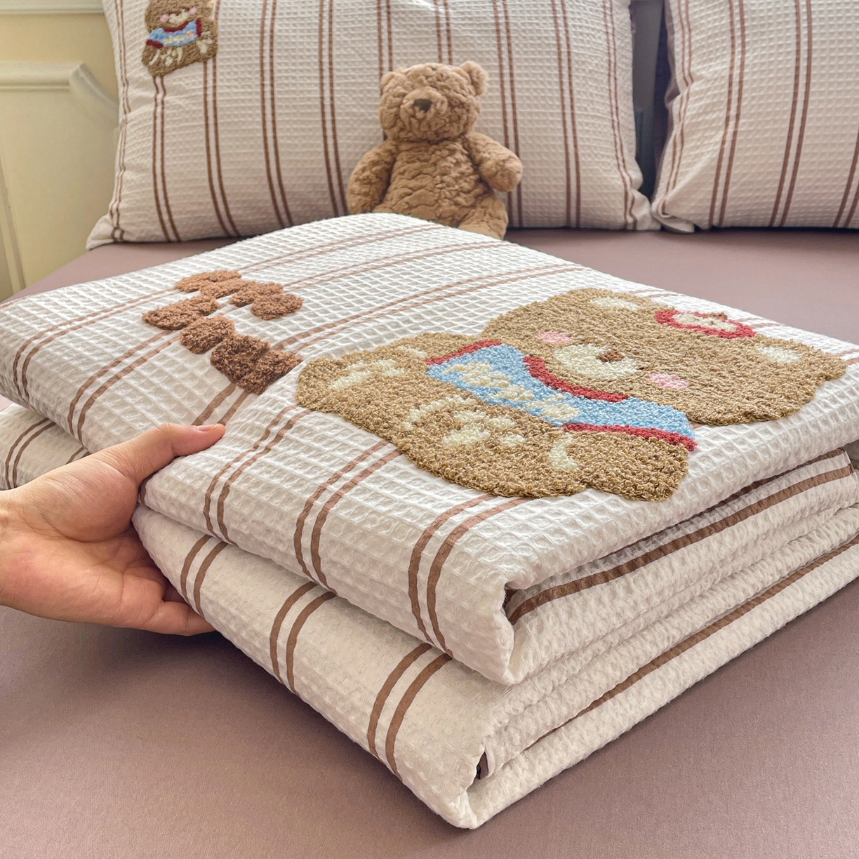 2026春夏新款全棉A类水洗华夫格毛巾绣大豆夏被夏凉被空调被四件套系列