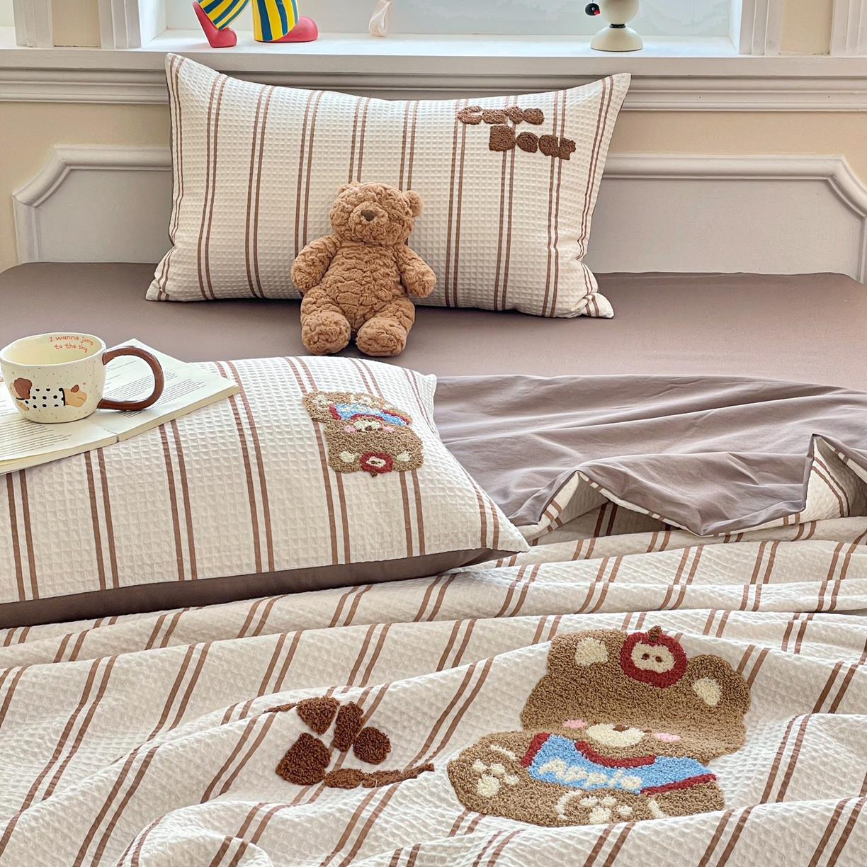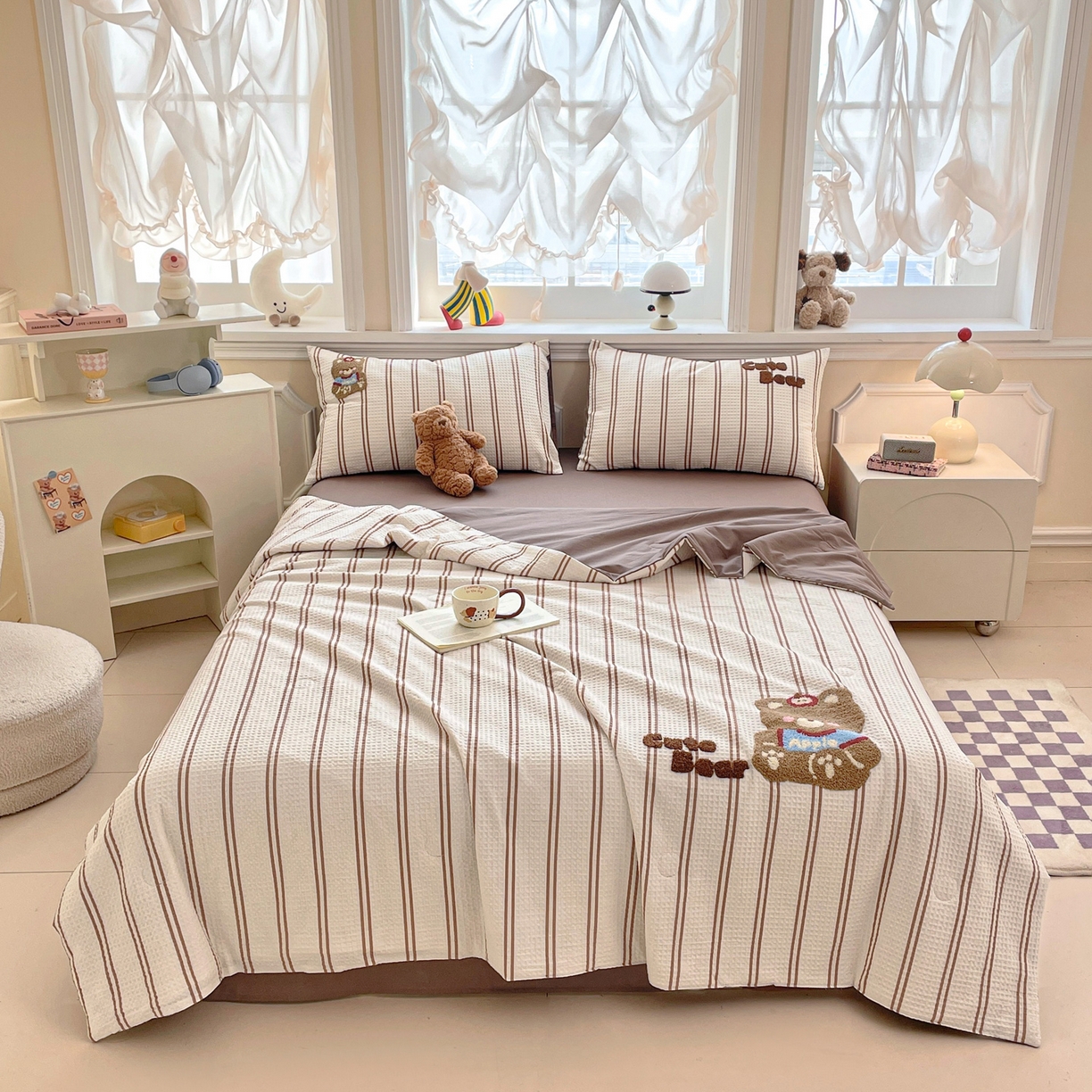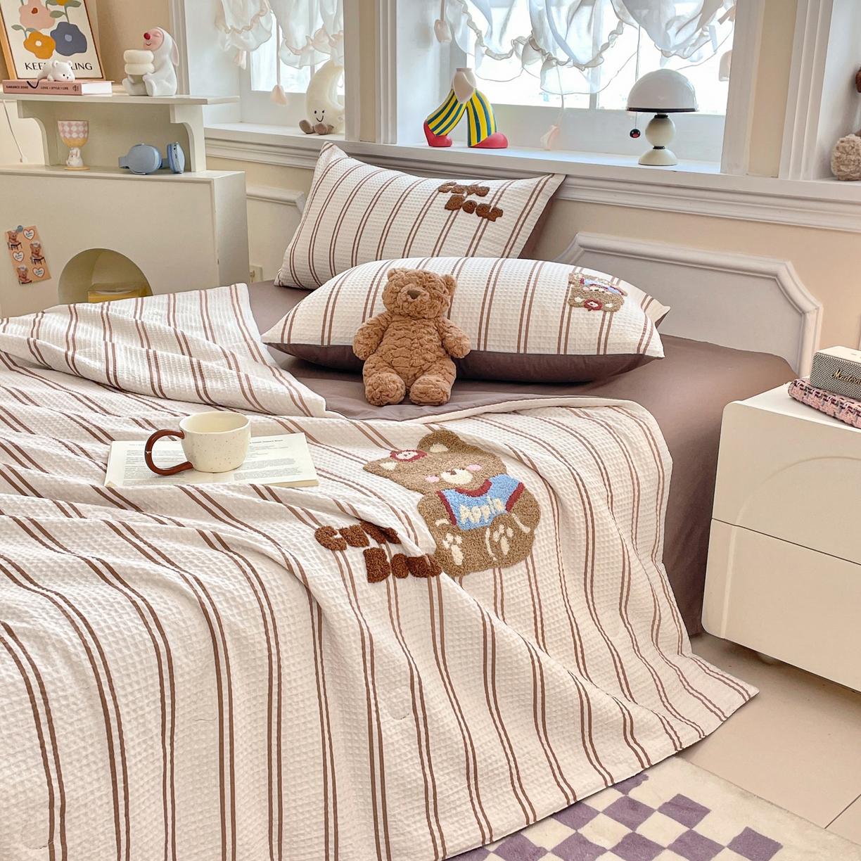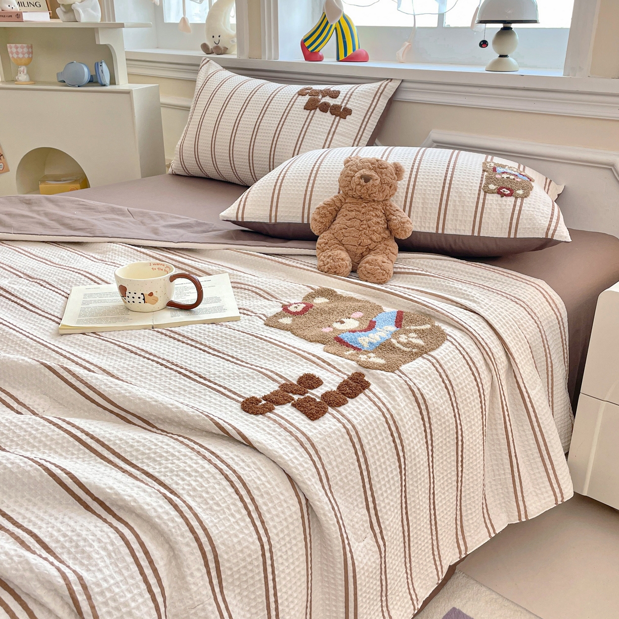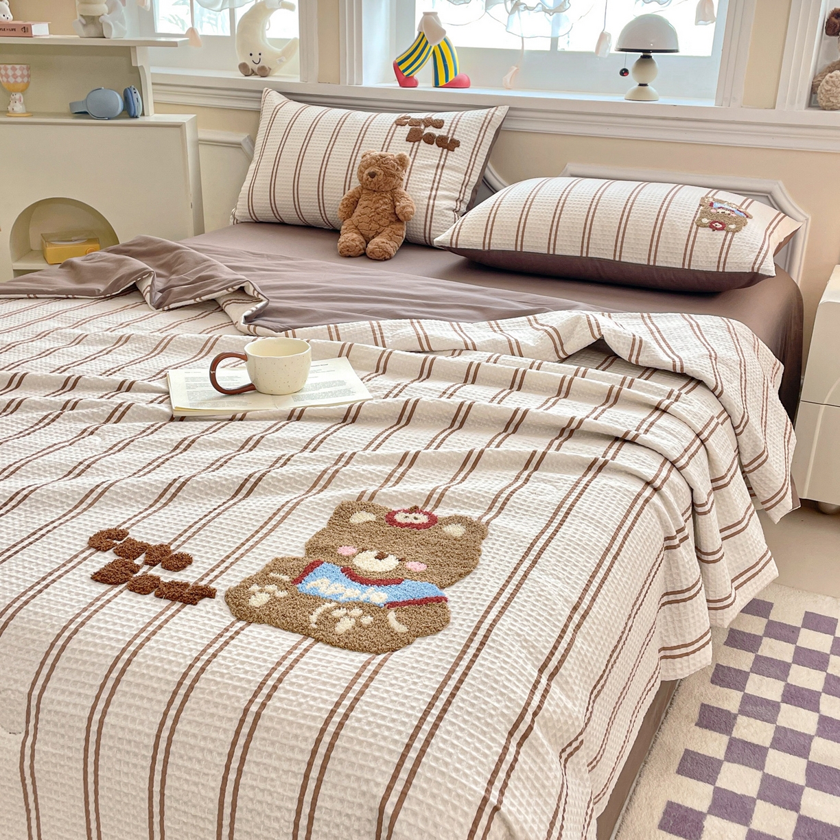 > 莱登卡奴 2026春夏新款全棉A类水洗华夫格毛巾绣大豆夏被夏凉被空调被四件套系列 风月茶褐