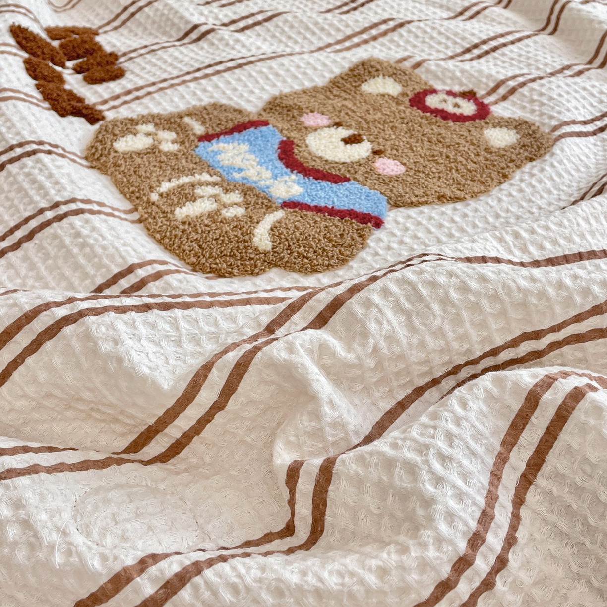 莱登卡奴 2026春夏新款全棉A类水洗华夫格毛巾绣大豆夏被夏凉被空调被四件套系列 风月茶褐