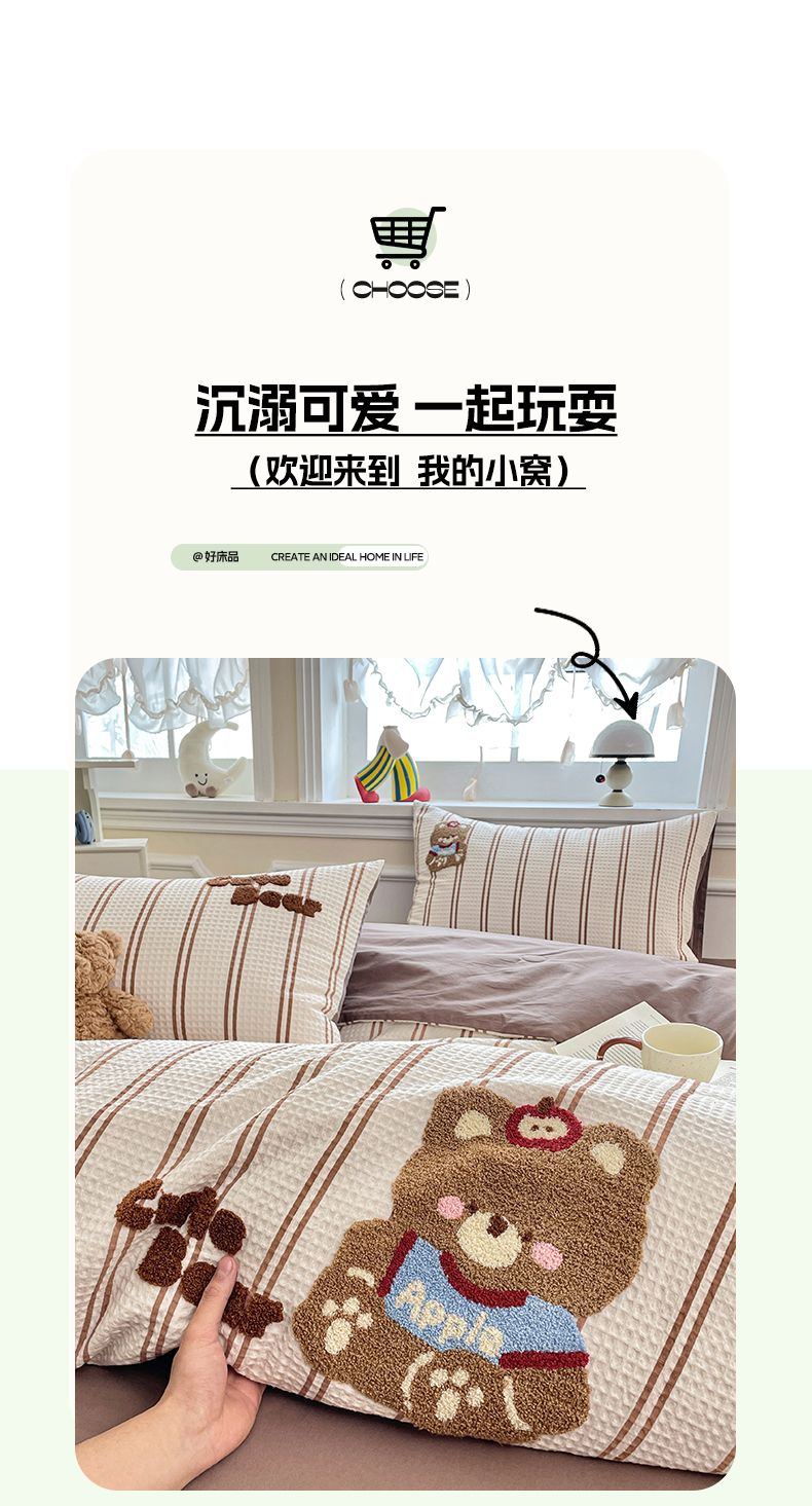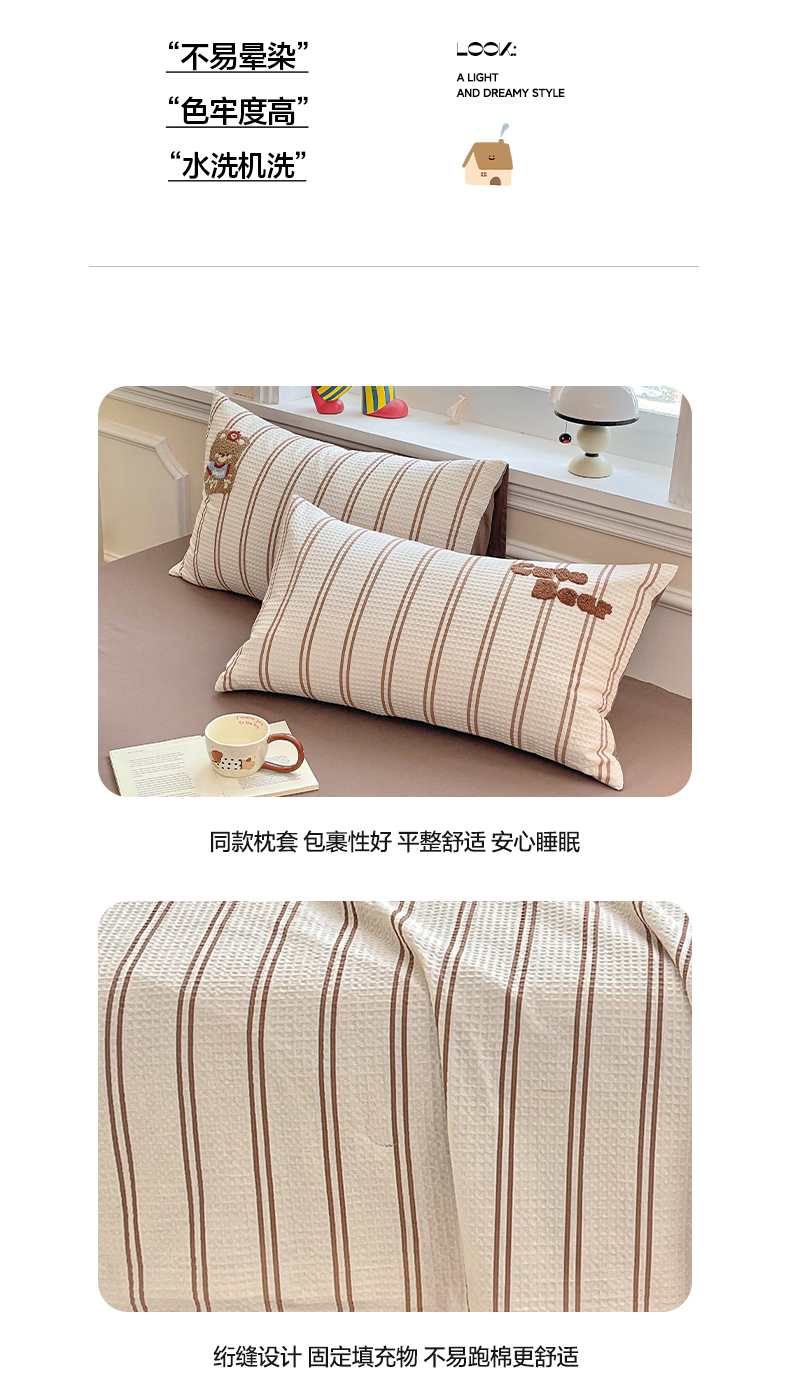 全棉A类色织水洗棉贝壳绣学生宿舍床系列