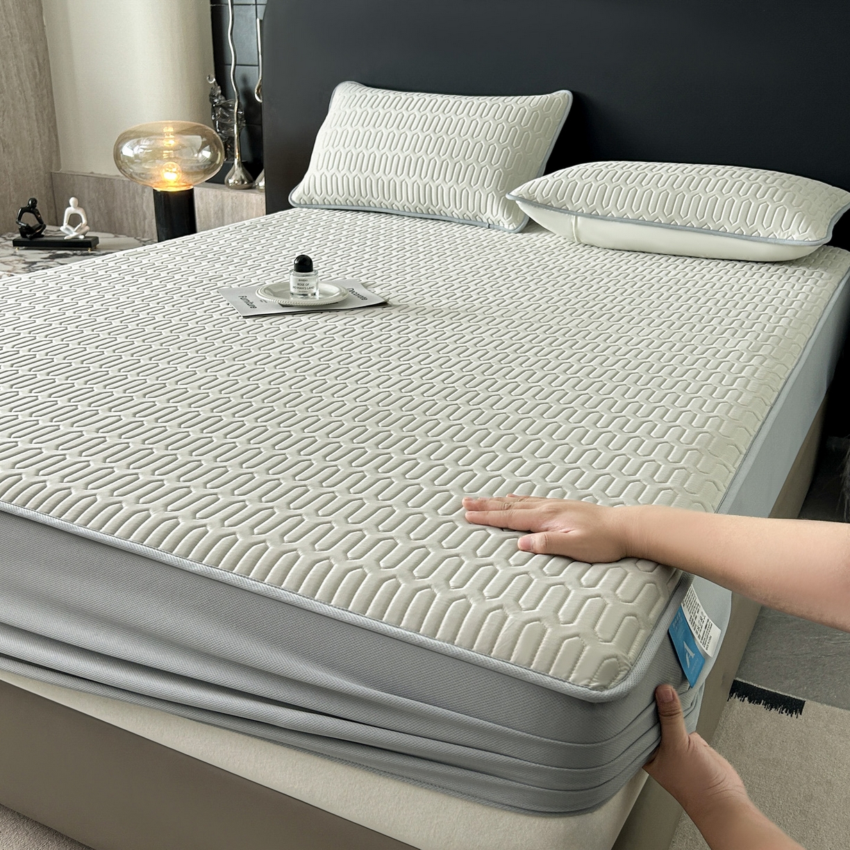 (总)莱登卡奴 2026春夏新款A类冰淇淋凉感丝氨纶夹棉聚氨酯单床笠 床笠单件曲纹系列-曲纹系列