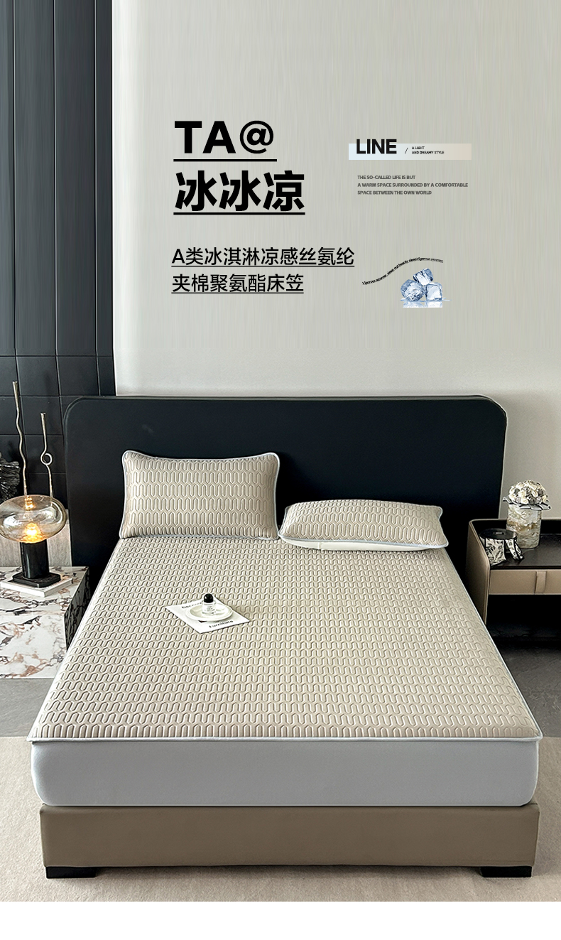 2026春夏新款A类冰淇淋凉感丝氨纶夹棉聚氨酯单床笠-曲纹