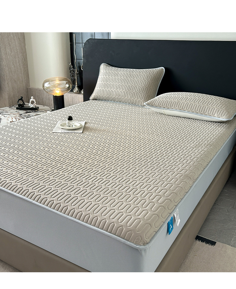 > 莱登卡奴 2026春夏新款A类冰淇淋凉感丝氨纶夹棉聚氨酯单床笠 床笠单件曲纹系列-曲纹系列 曲纹-浅咖