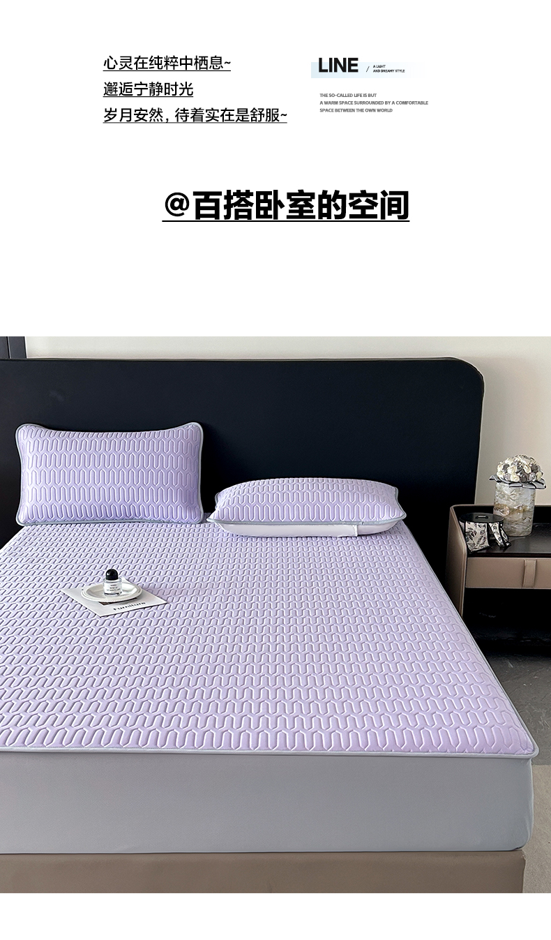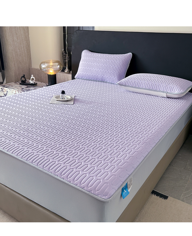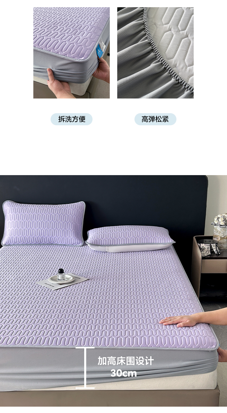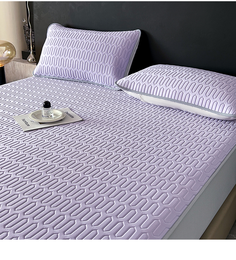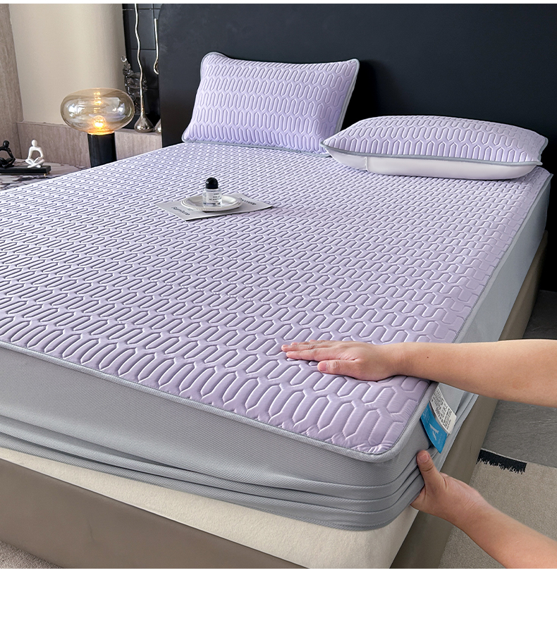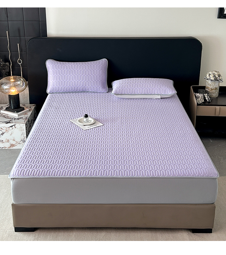 > 莱登卡奴 2026春夏新款A类冰淇淋凉感丝氨纶夹棉聚氨酯单床笠 床笠单件曲纹系列-曲纹系列 曲纹-浅紫
