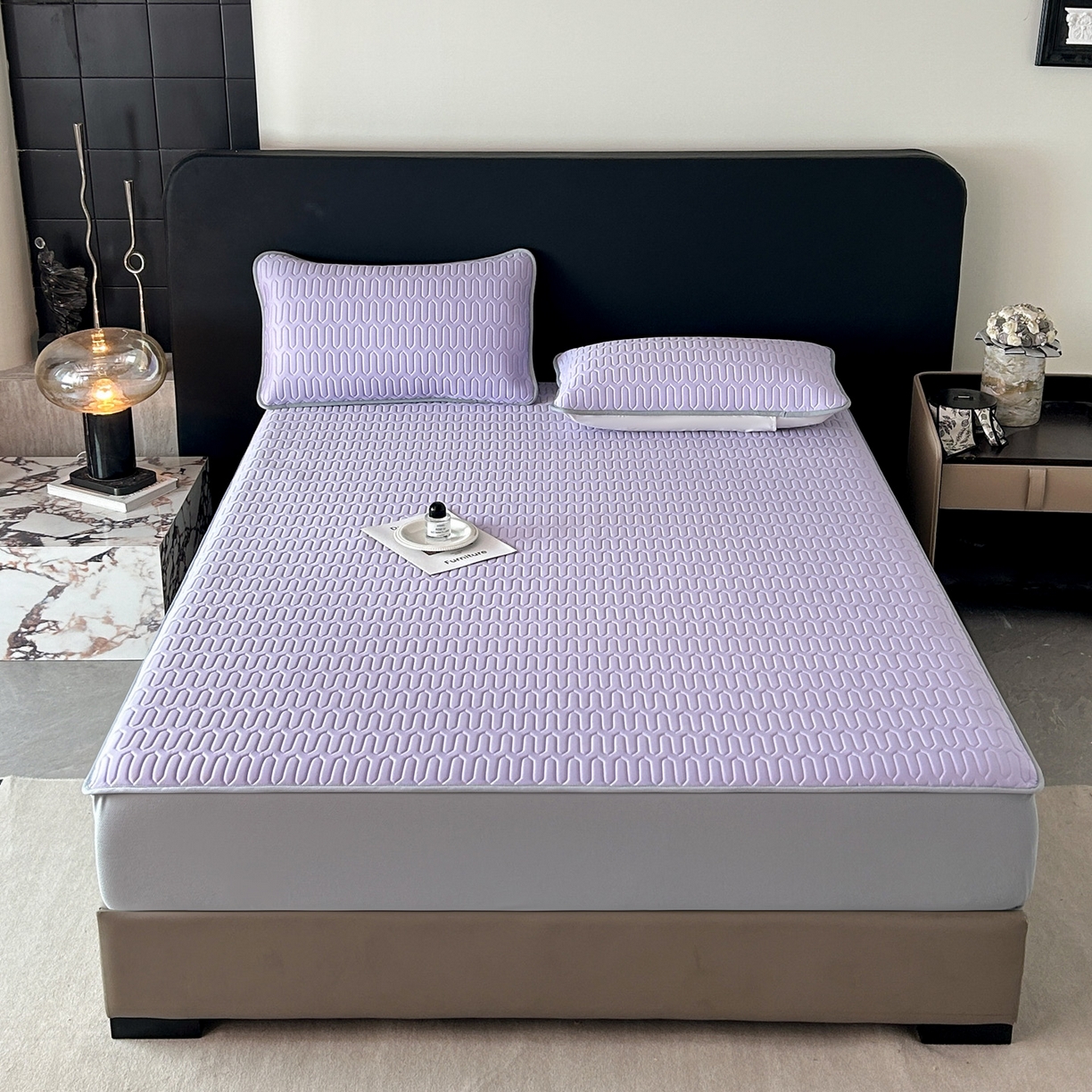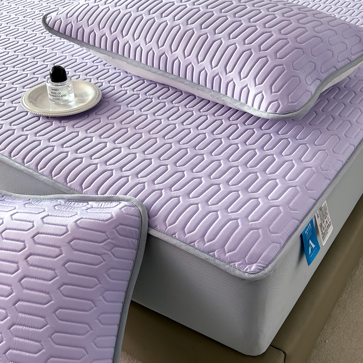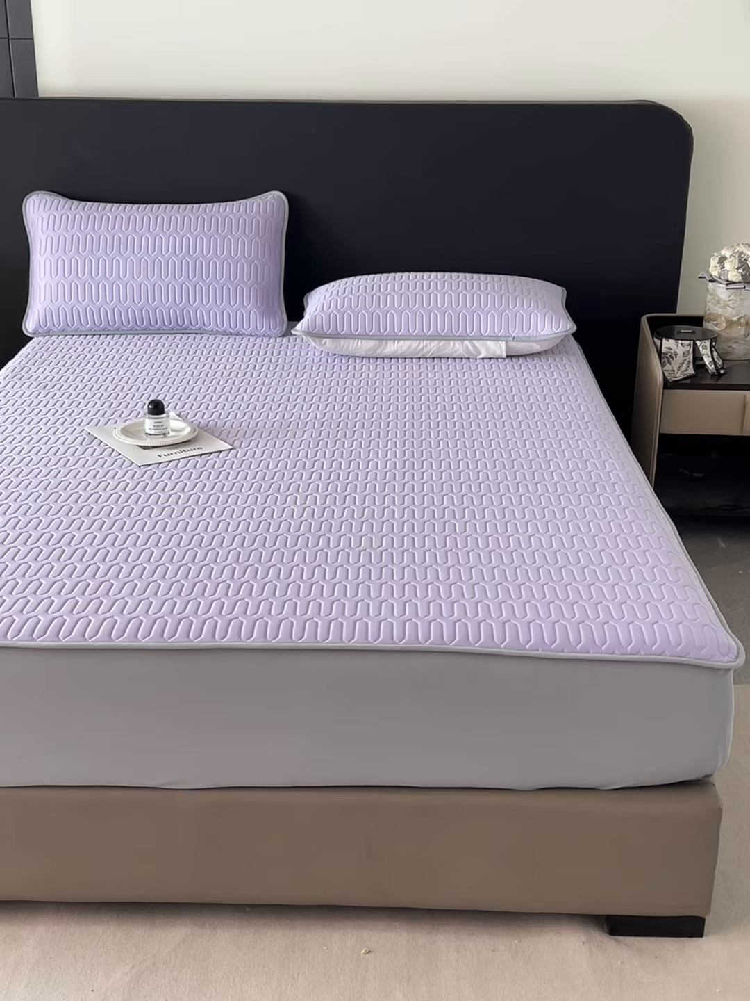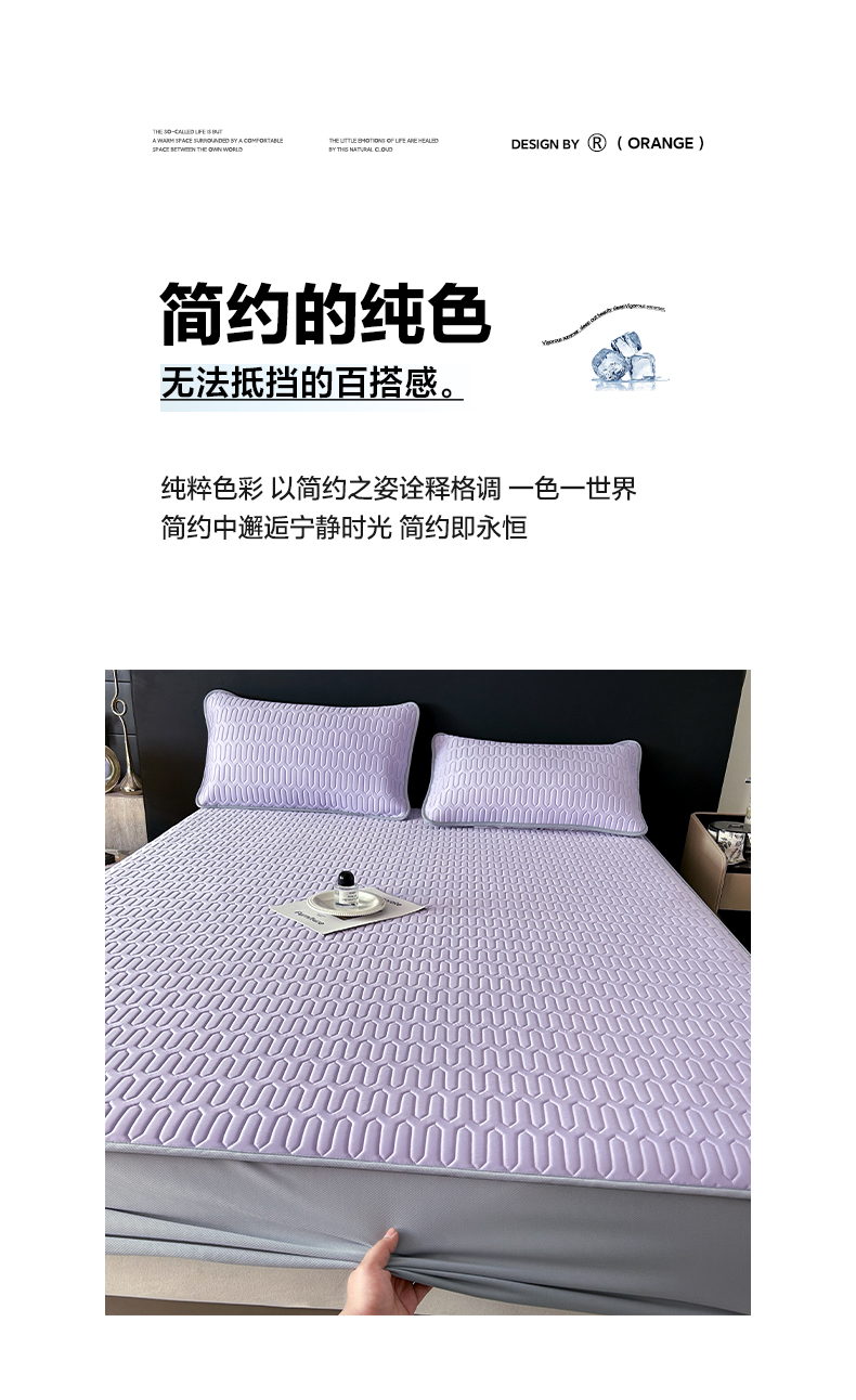 > 莱登卡奴 2026春夏新款A类冰淇淋凉感丝氨纶夹棉聚氨酯单床笠 床笠单件曲纹系列-曲纹系列 曲纹-浅紫