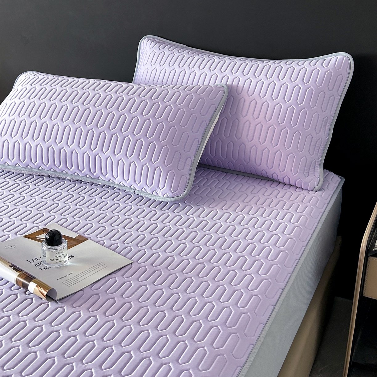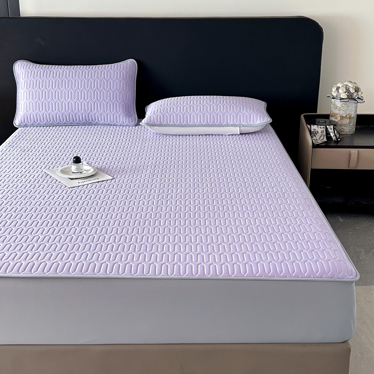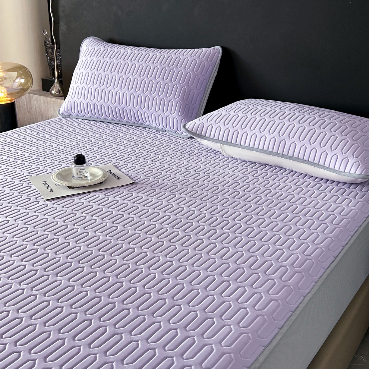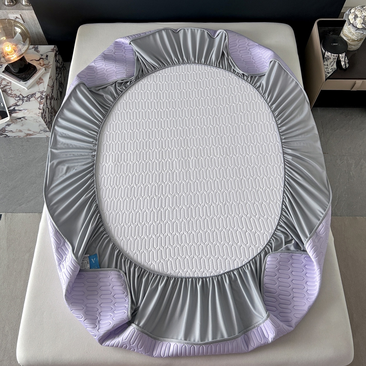> 莱登卡奴 2026春夏新款A类冰淇淋凉感丝氨纶夹棉聚氨酯单床笠 床笠单件曲纹系列-曲纹系列 曲纹-浅紫