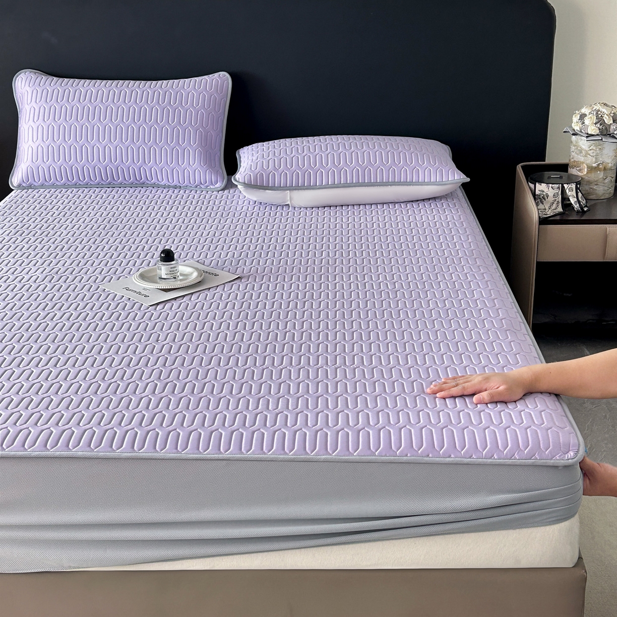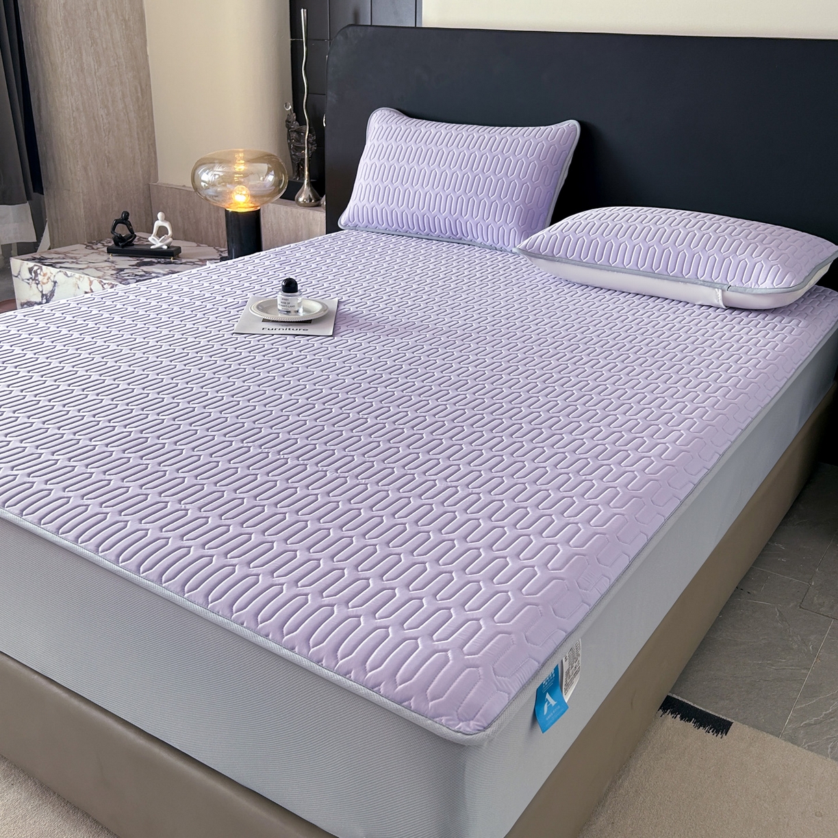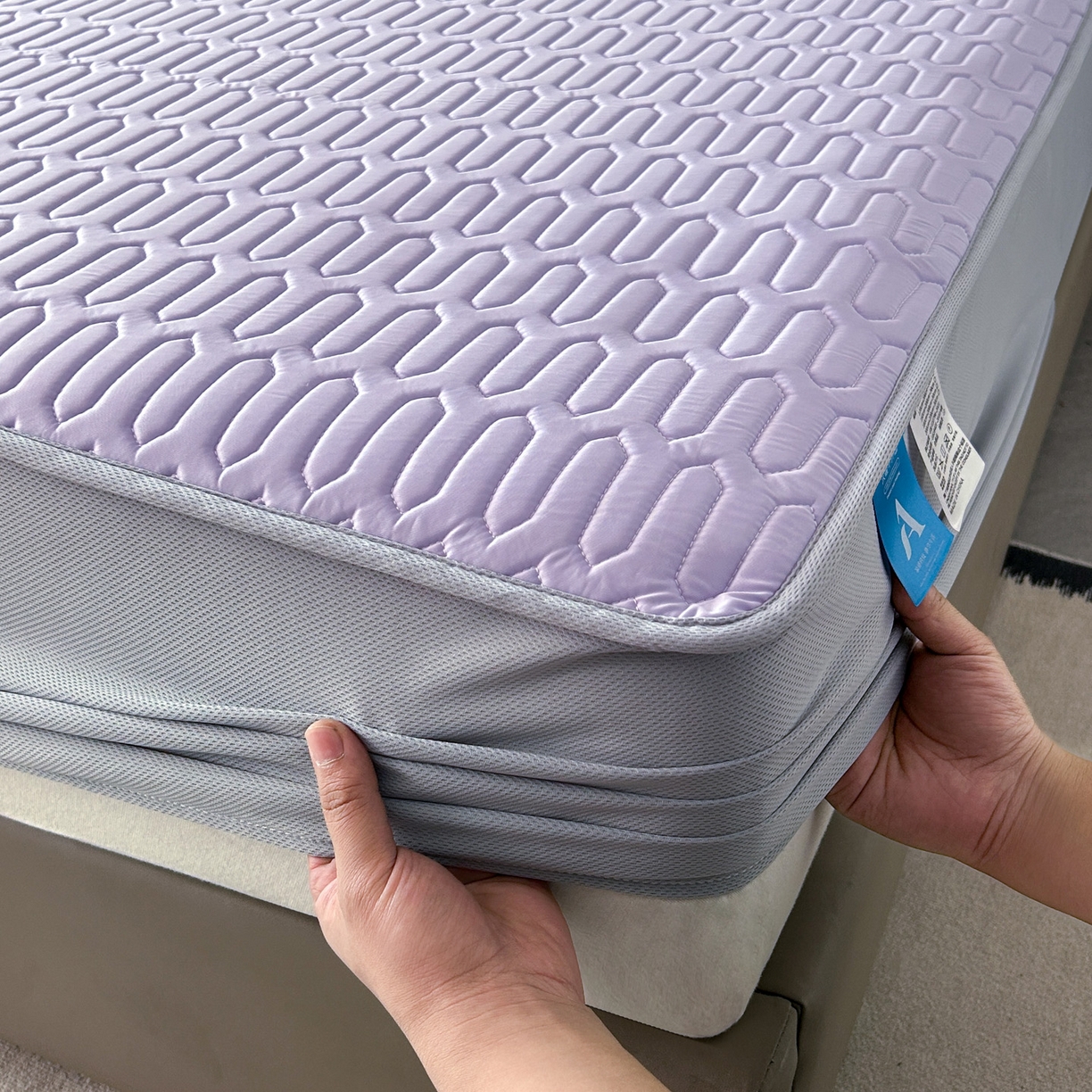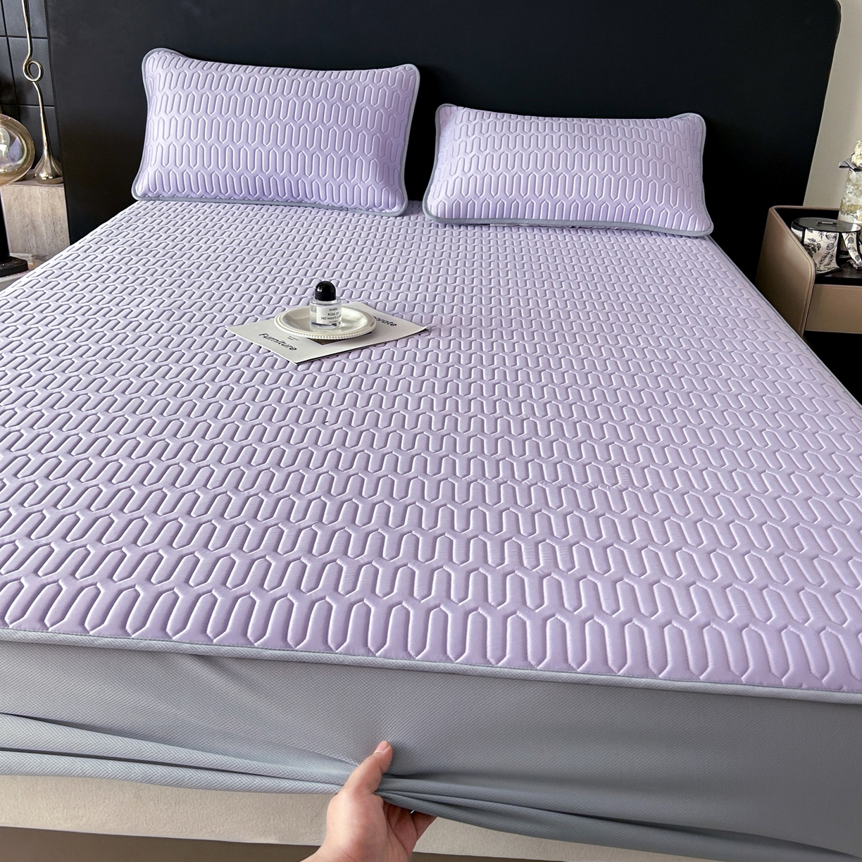 > 莱登卡奴 2026春夏新款A类冰淇淋凉感丝氨纶夹棉聚氨酯单床笠 床笠单件曲纹系列-曲纹系列 曲纹-浅紫