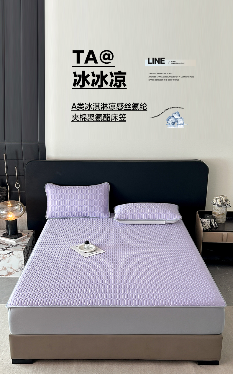 莱登卡奴 2026春夏新款A类冰淇淋凉感丝氨纶夹棉聚氨酯单床笠 床笠单件曲纹系列-曲纹系列 曲纹-浅紫