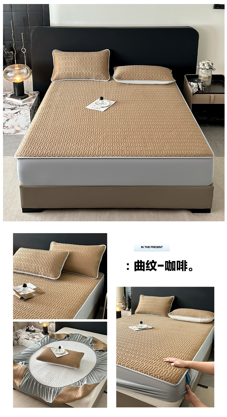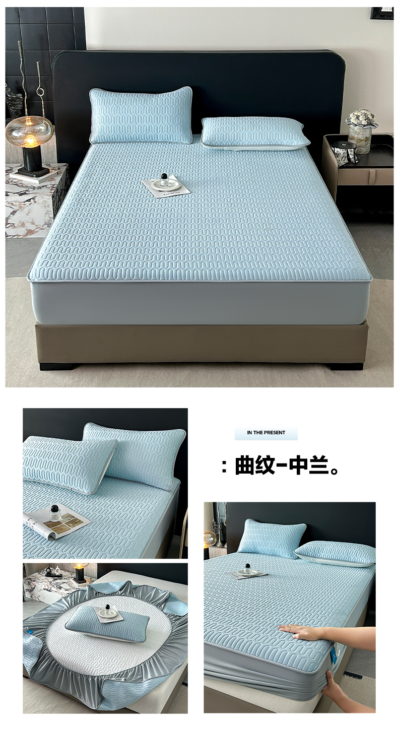 2026春夏新款A类冰淇淋凉感丝氨纶夹棉聚氨酯单床笠-曲纹