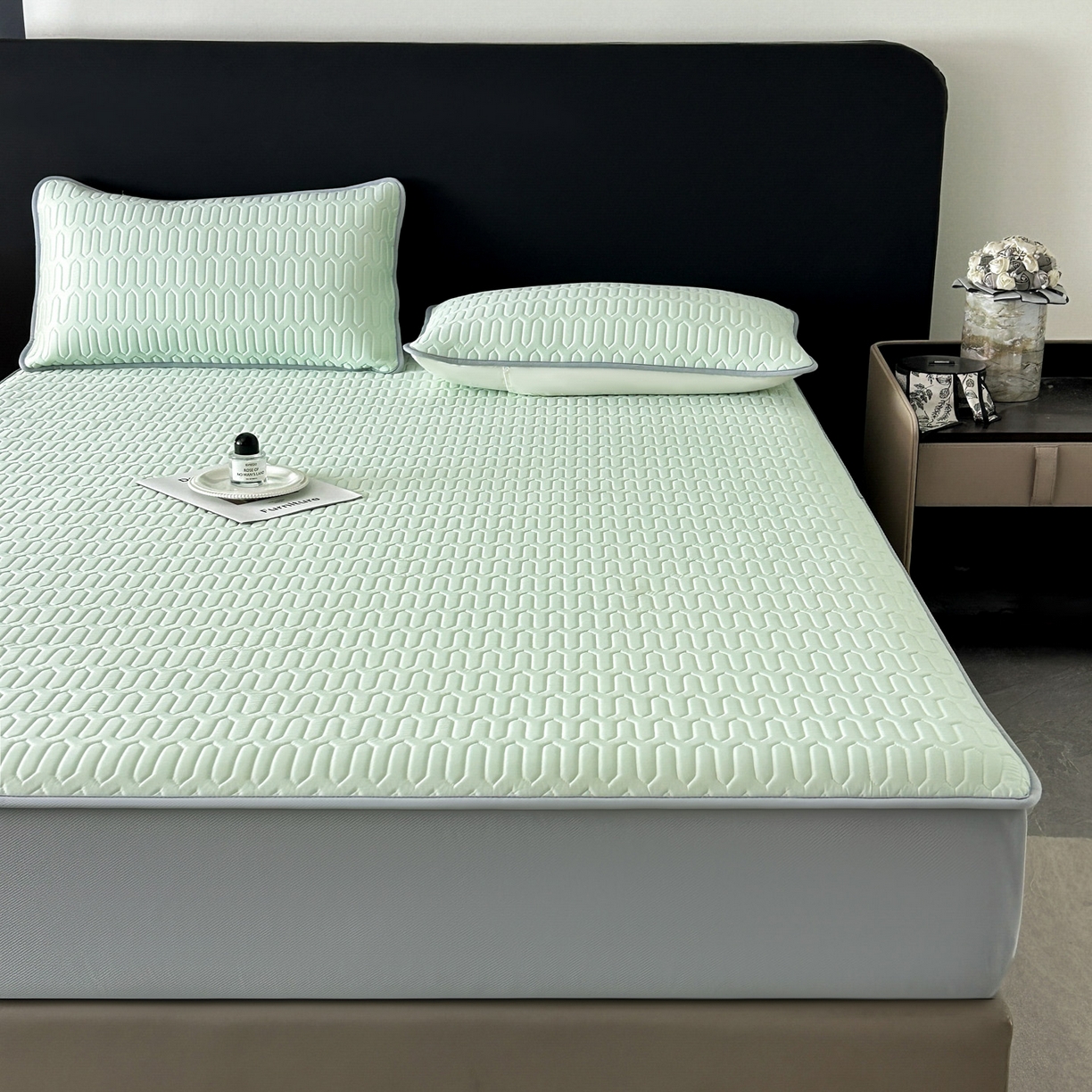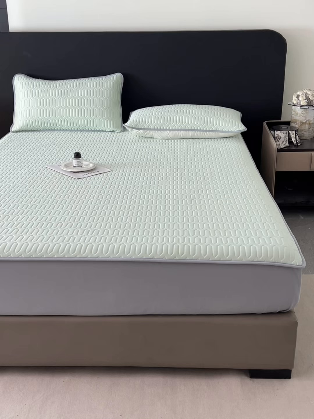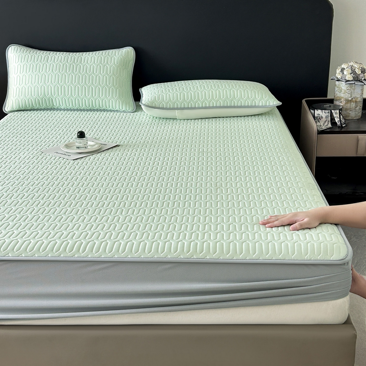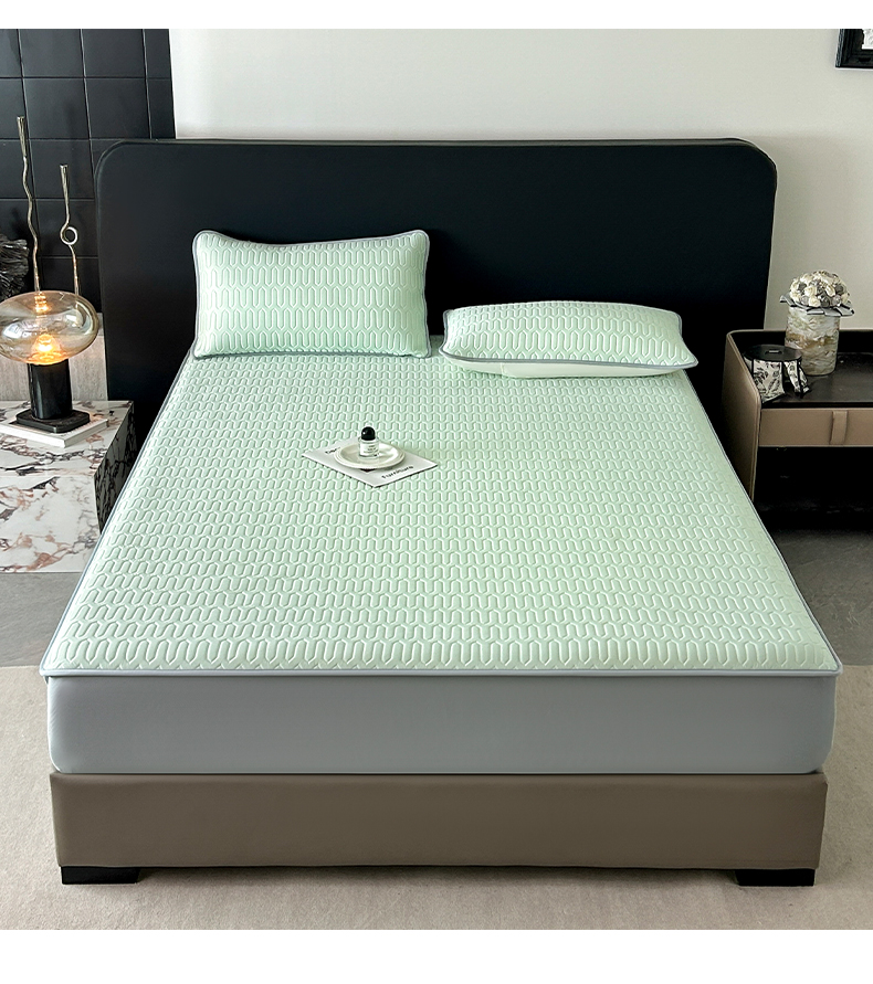 > 莱登卡奴 2026春夏新款A类冰淇淋凉感丝氨纶夹棉聚氨酯单床笠 床笠单件曲纹系列-曲纹系列 曲纹-浅绿