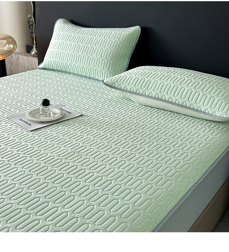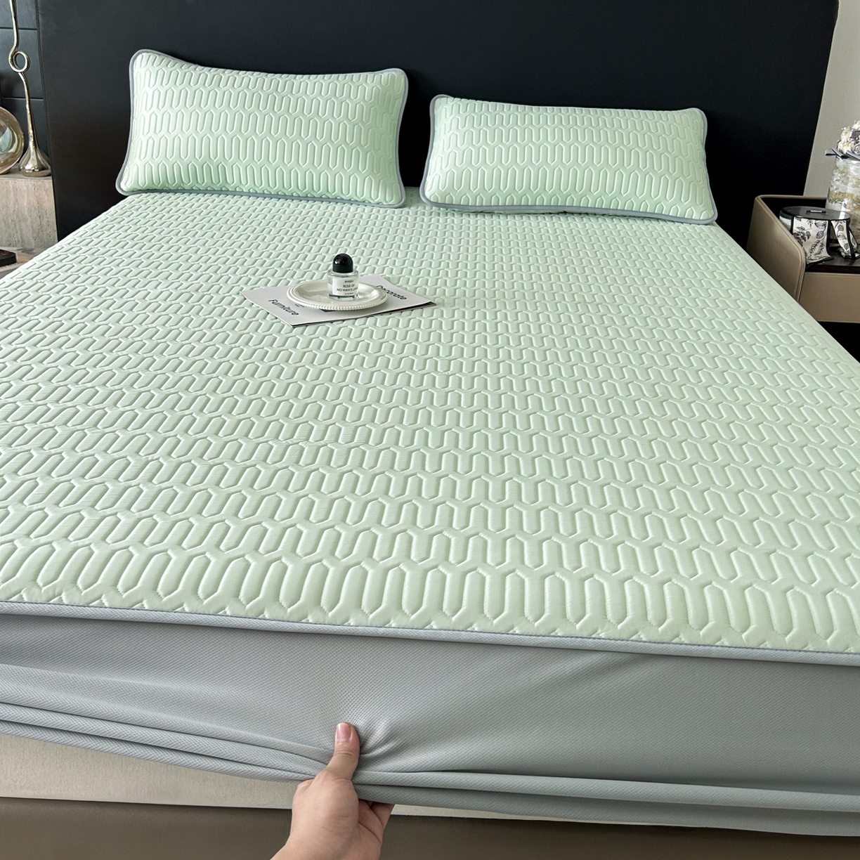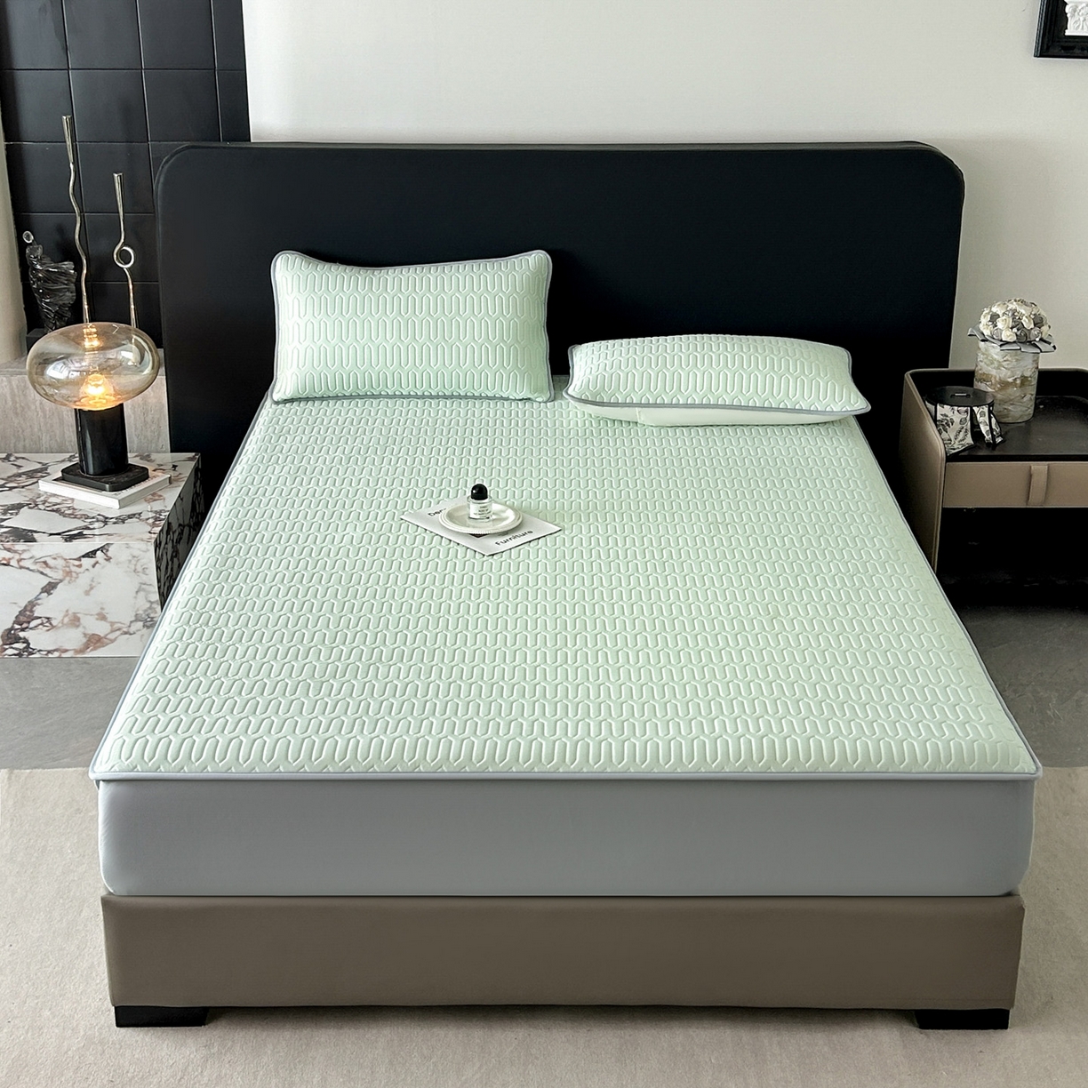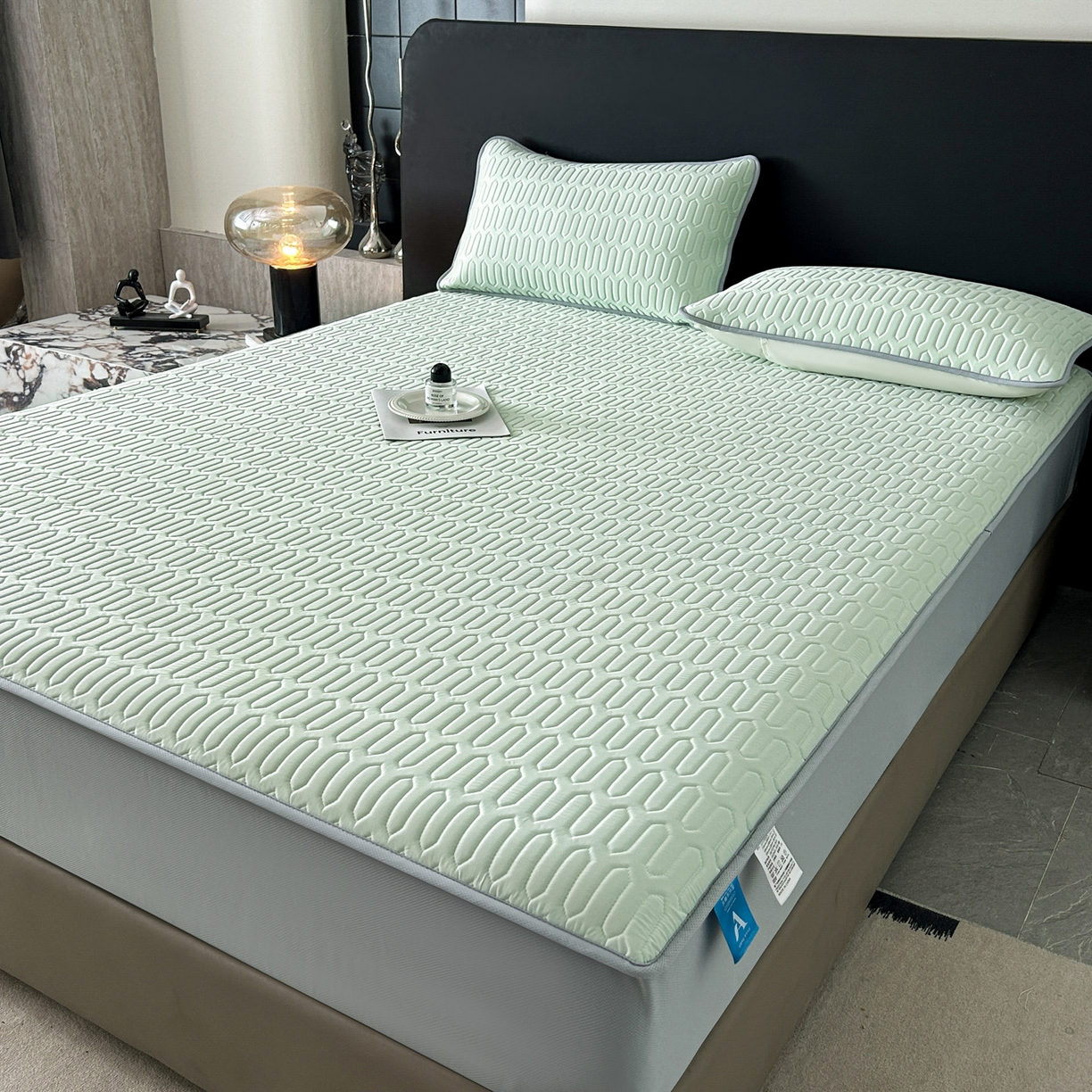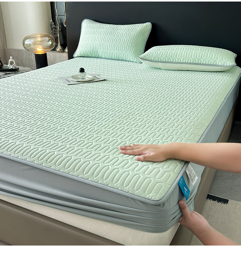> 莱登卡奴 2026春夏新款A类冰淇淋凉感丝氨纶夹棉聚氨酯单床笠 床笠单件曲纹系列-曲纹系列 曲纹-浅绿