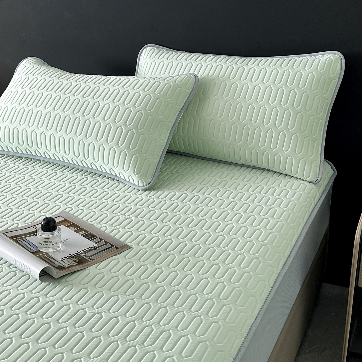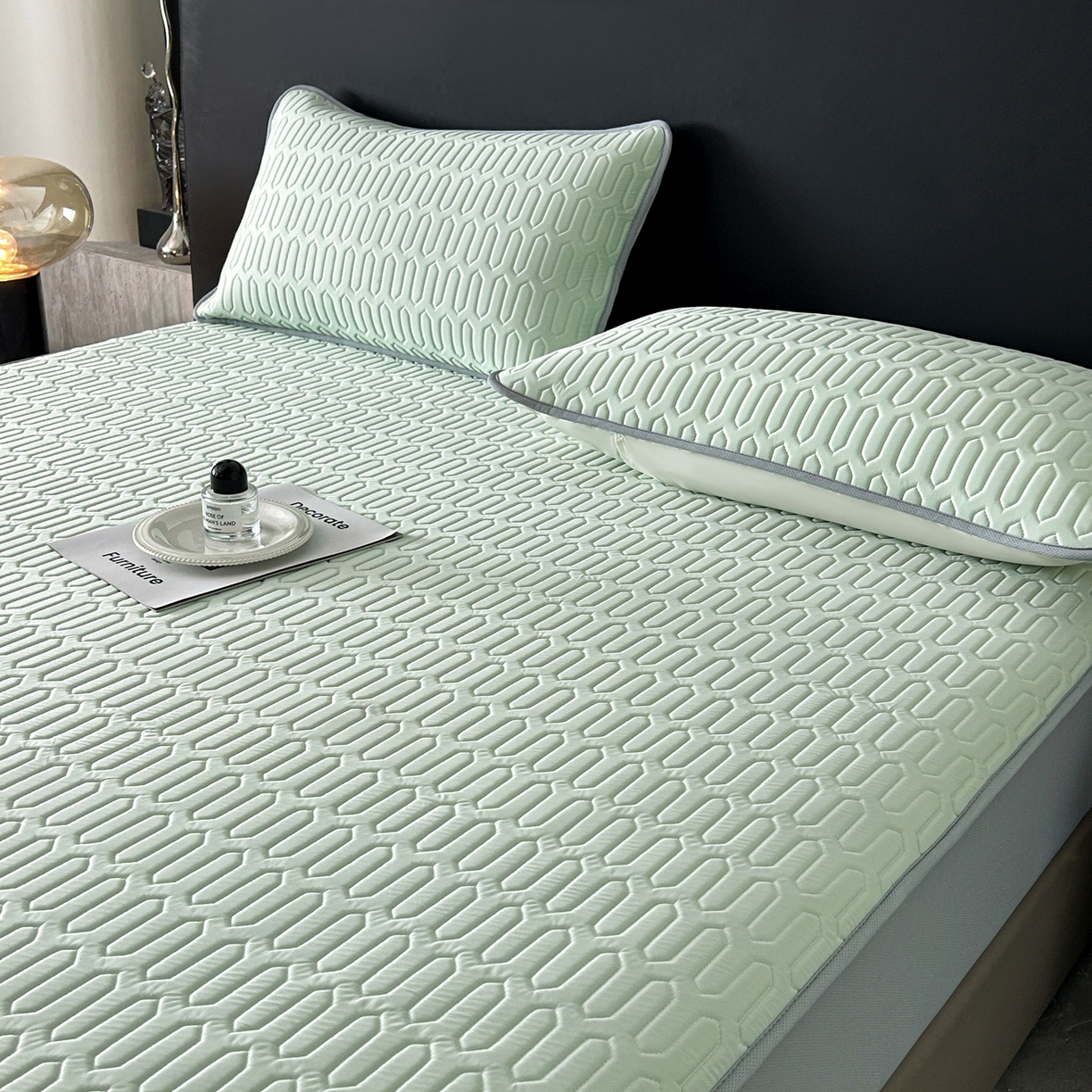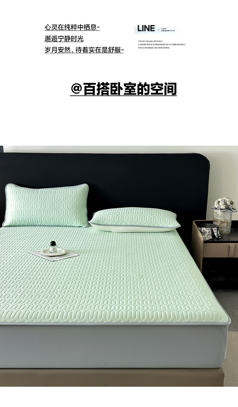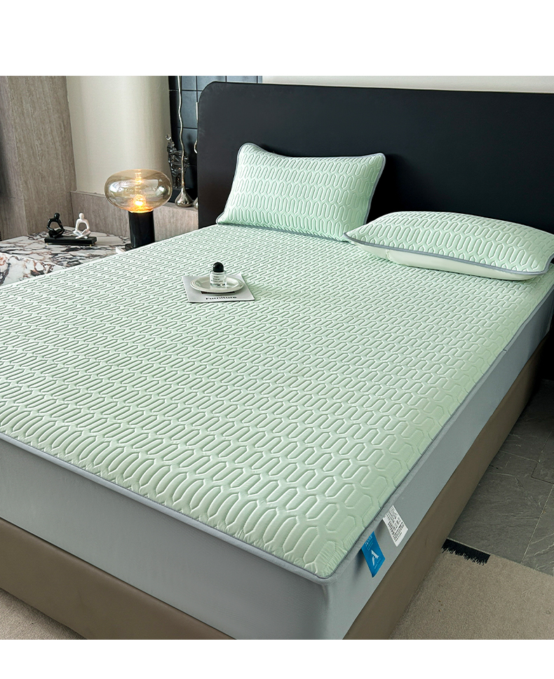 > 莱登卡奴 2026春夏新款A类冰淇淋凉感丝氨纶夹棉聚氨酯单床笠 床笠单件曲纹系列-曲纹系列 曲纹-浅绿