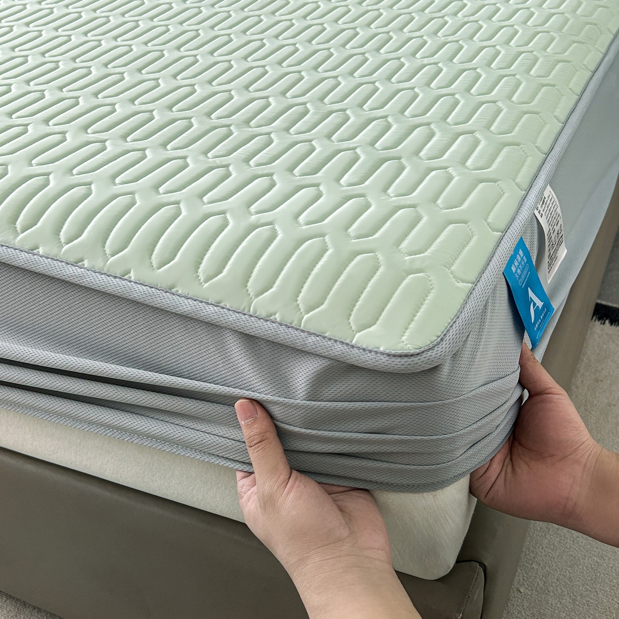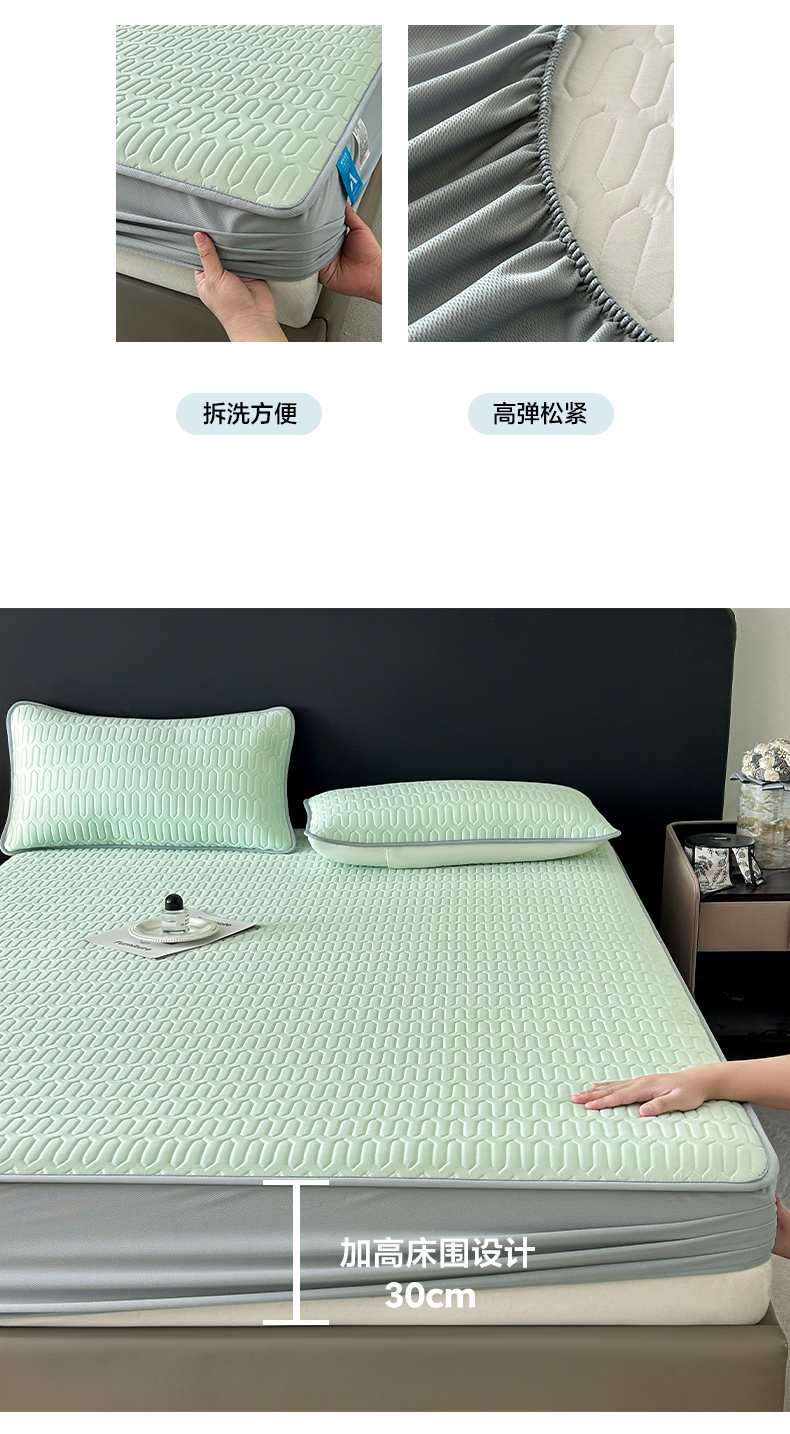 莱登卡奴 2026春夏新款A类冰淇淋凉感丝氨纶夹棉聚氨酯单床笠 床笠单件曲纹系列-曲纹系列 曲纹-浅绿
