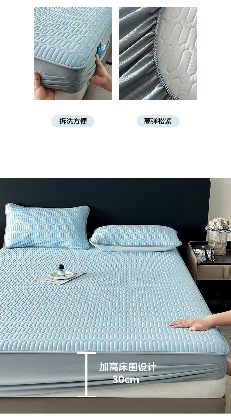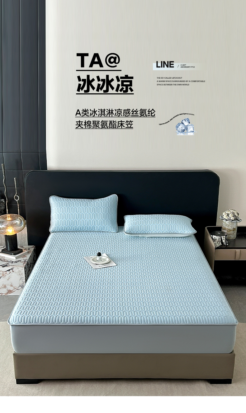 2026春夏新款A类冰淇淋凉感丝氨纶夹棉聚氨酯单床笠-曲纹