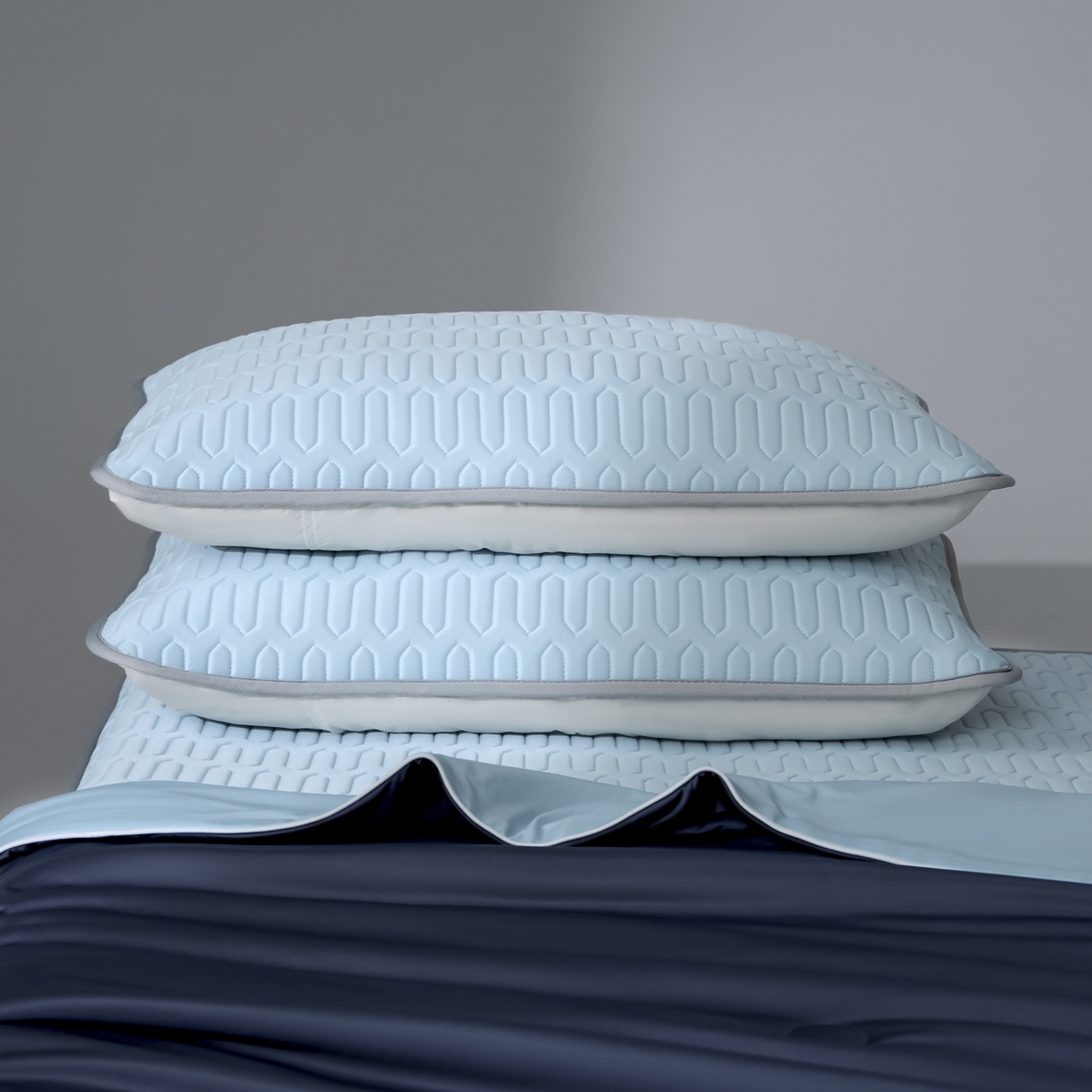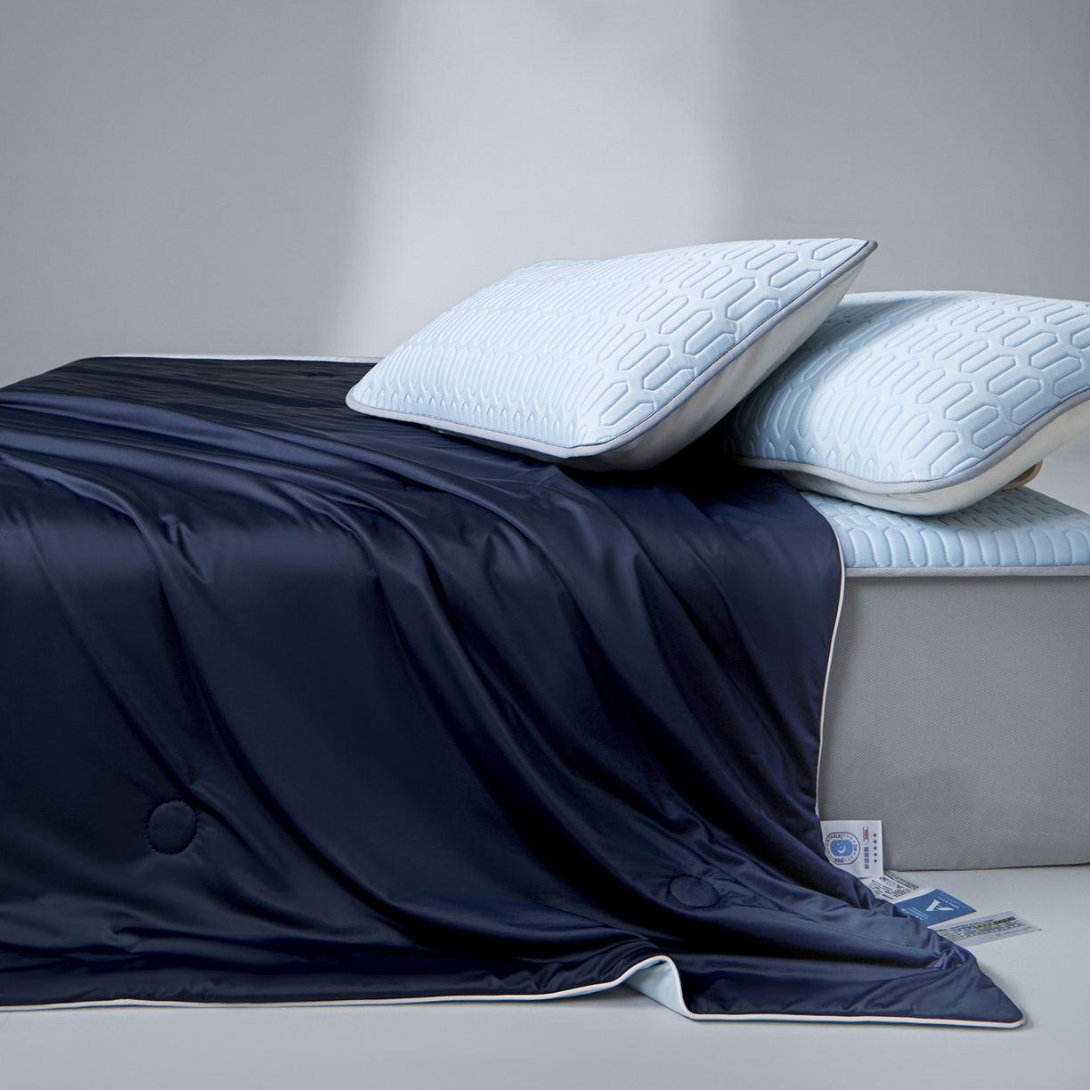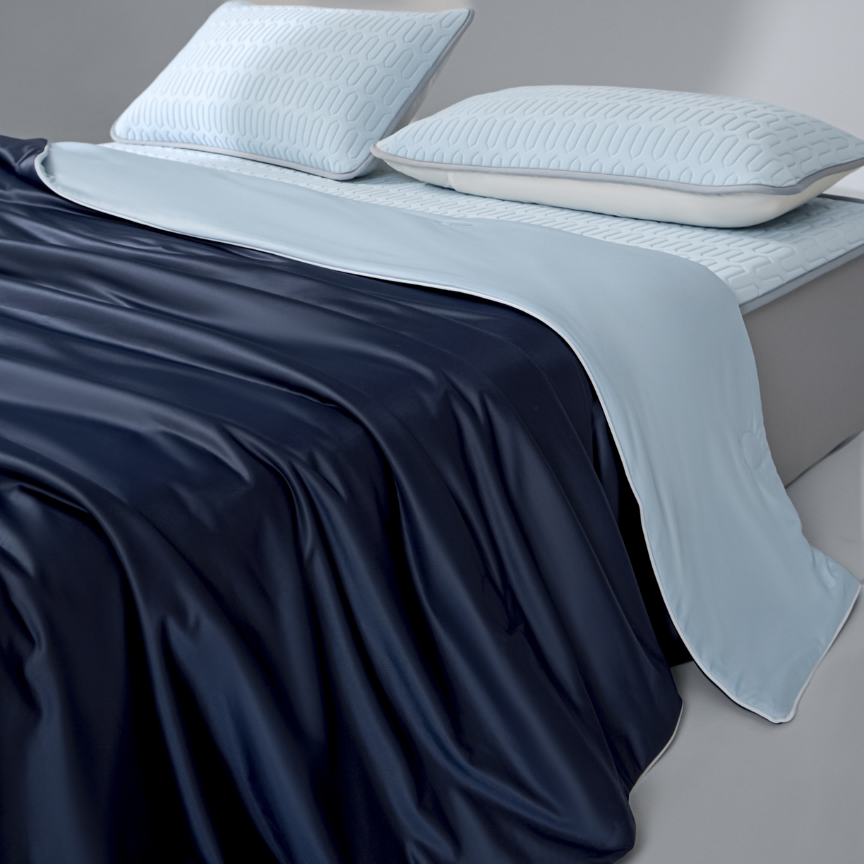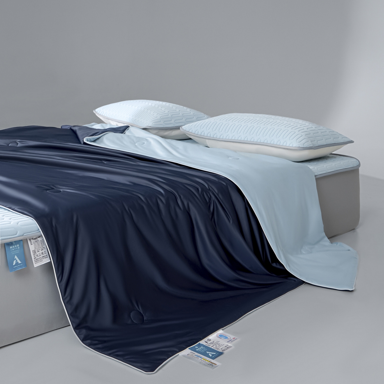 > 莱登卡奴 2026春夏新款A类冰淇淋凉感丝氨纶聚氨酯夏被夏凉被空调被四件套系列 星球深浅蓝