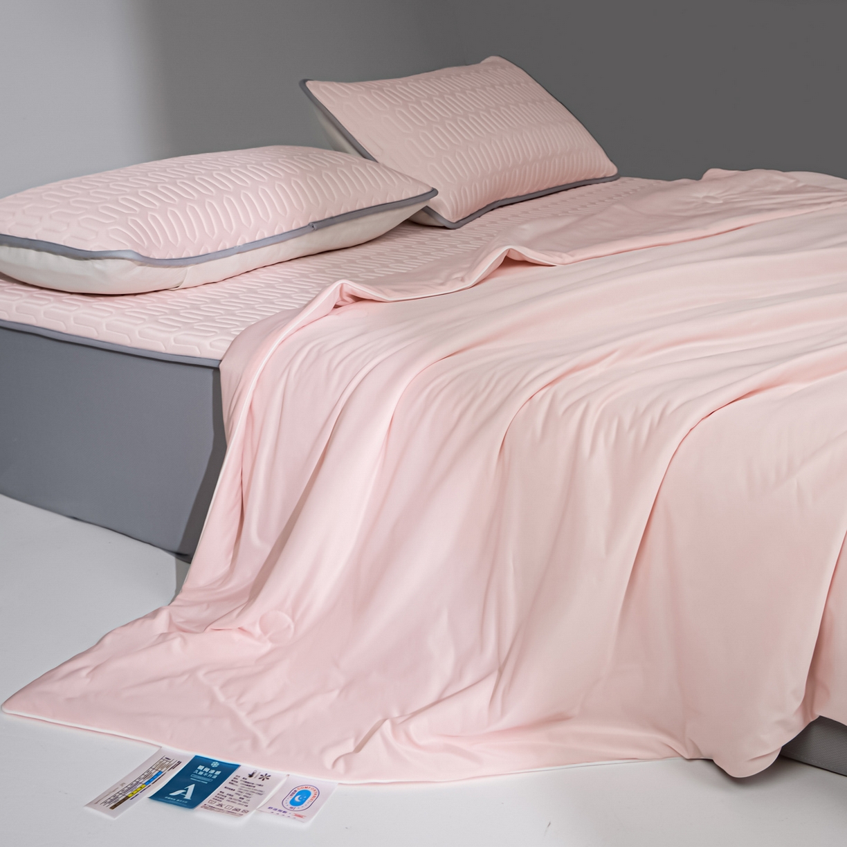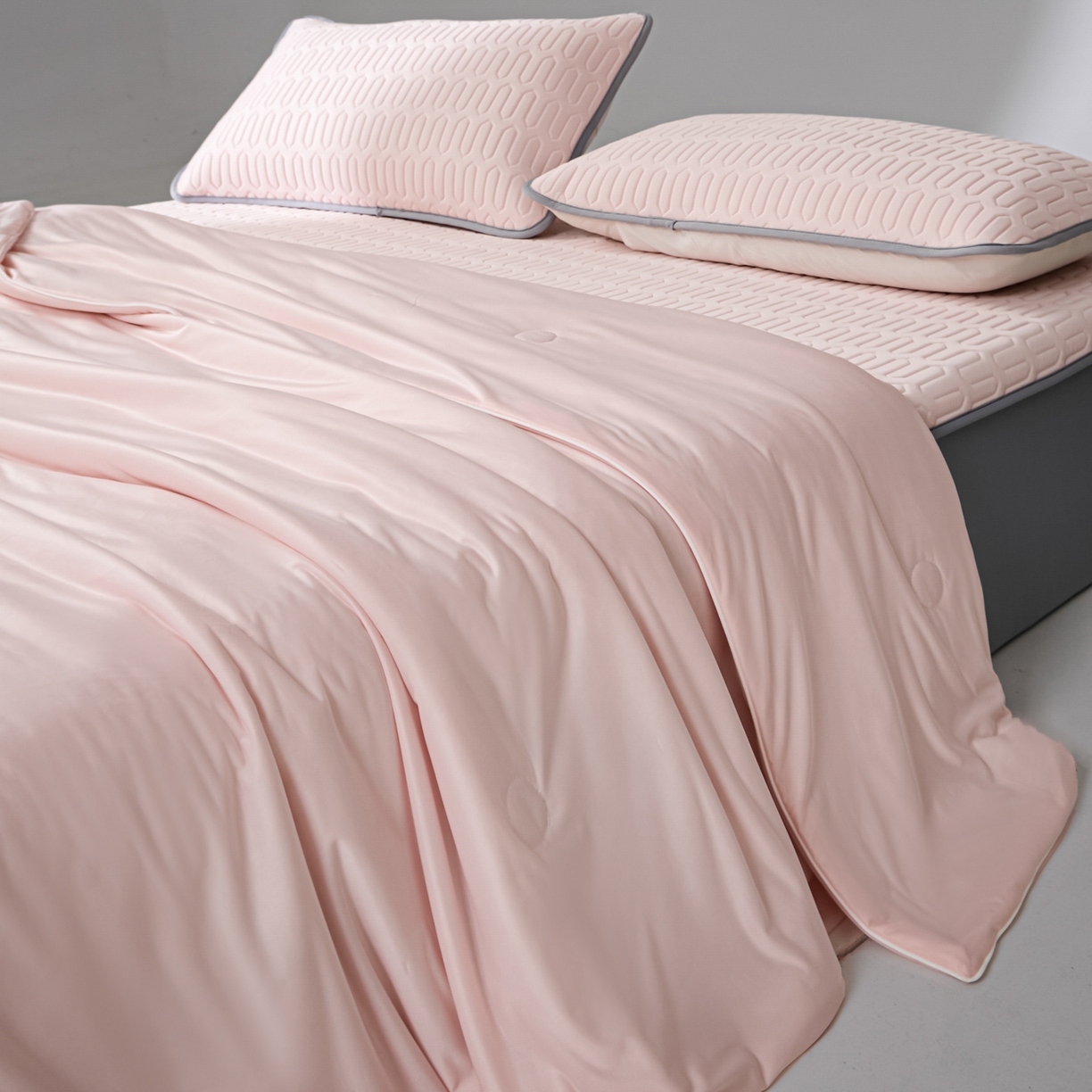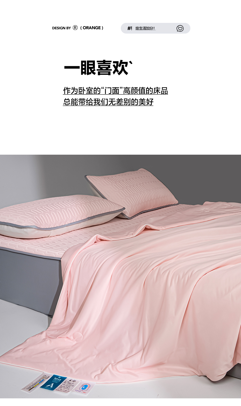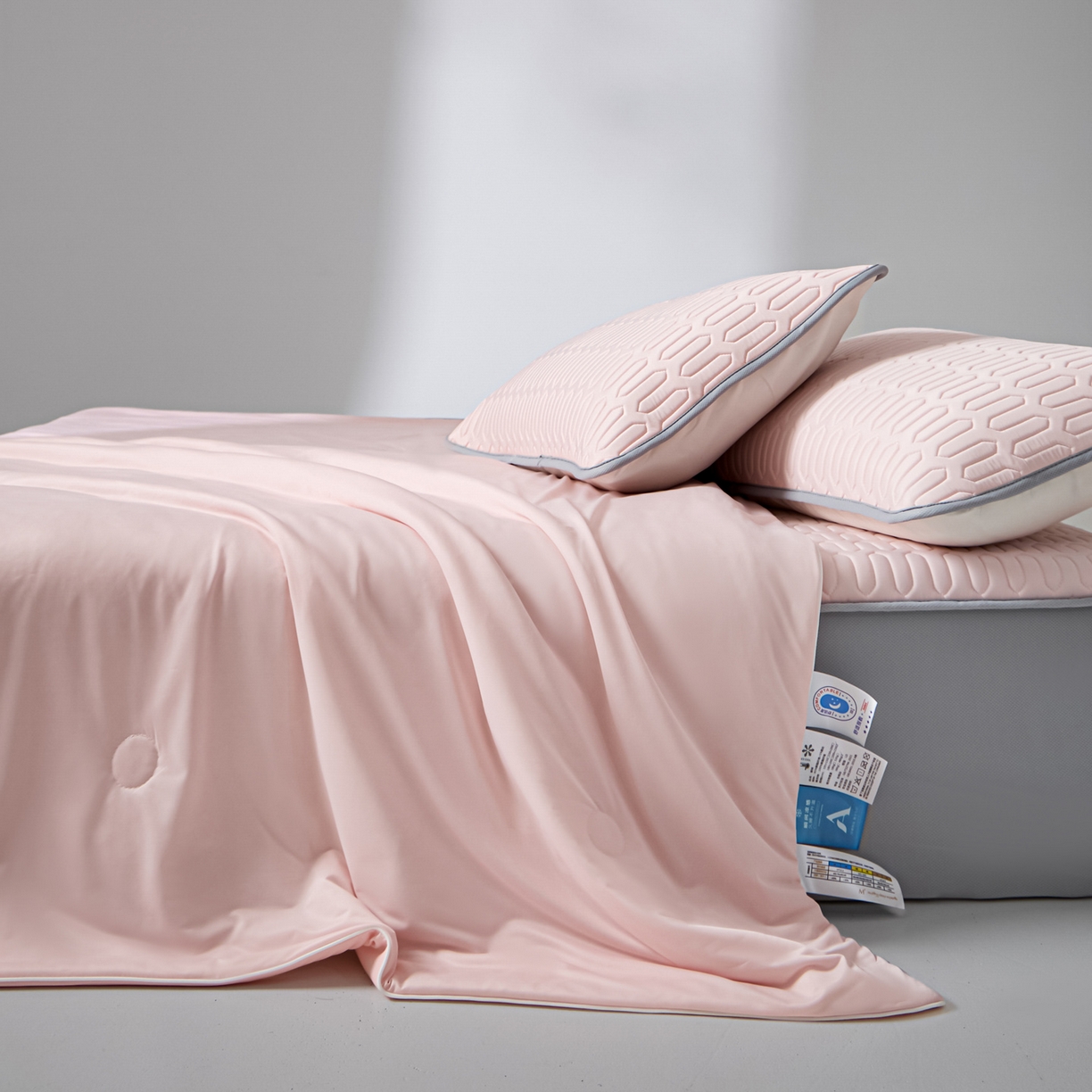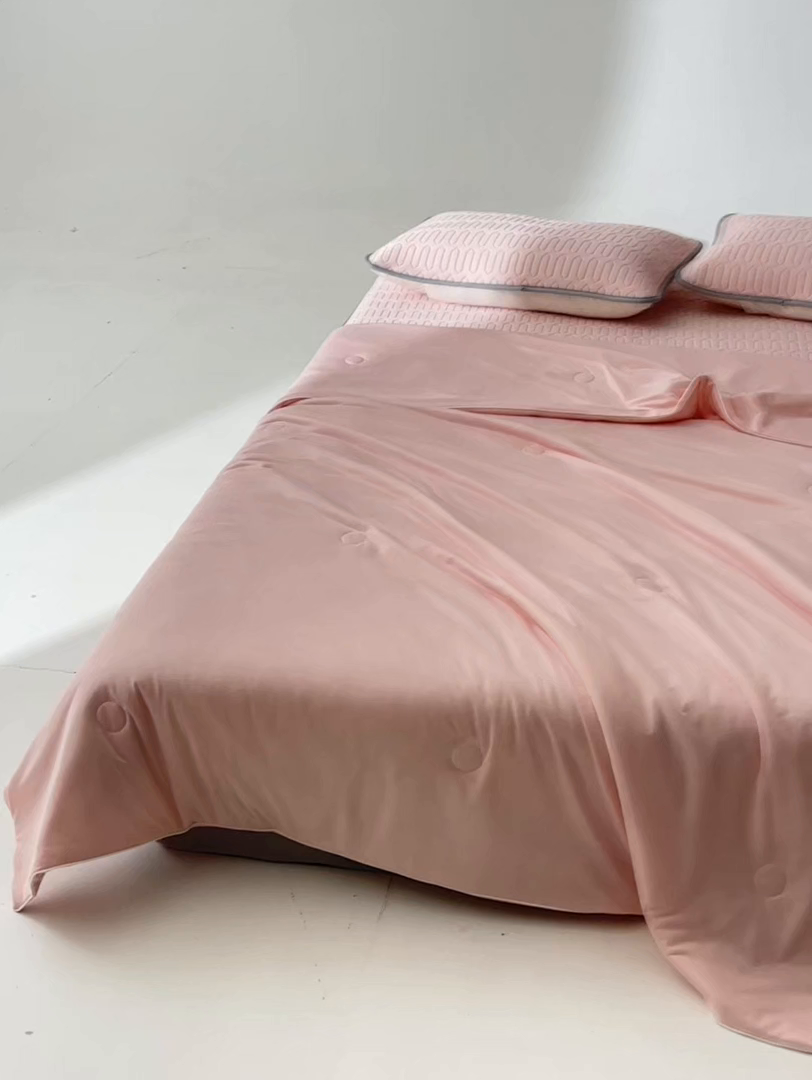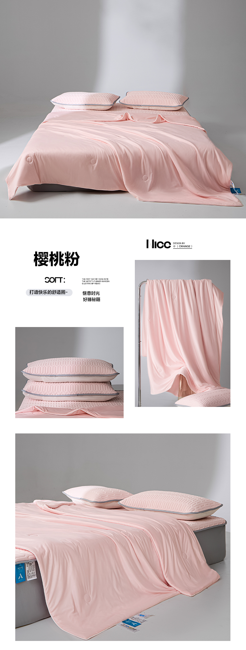 > 莱登卡奴 2026春夏新款A类冰淇淋凉感丝氨纶聚氨酯夏被夏凉被空调被四件套系列 樱桃粉
