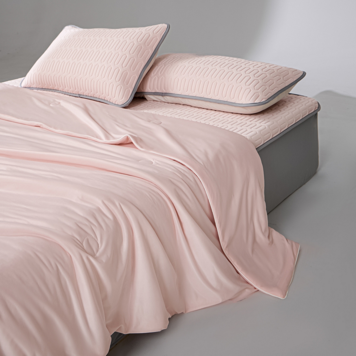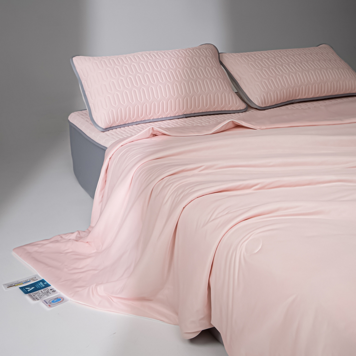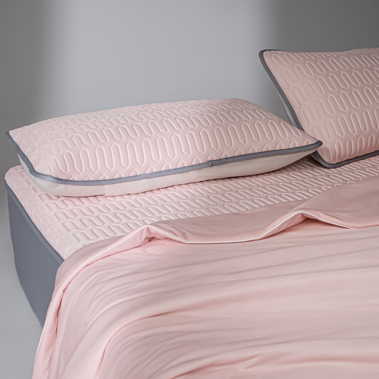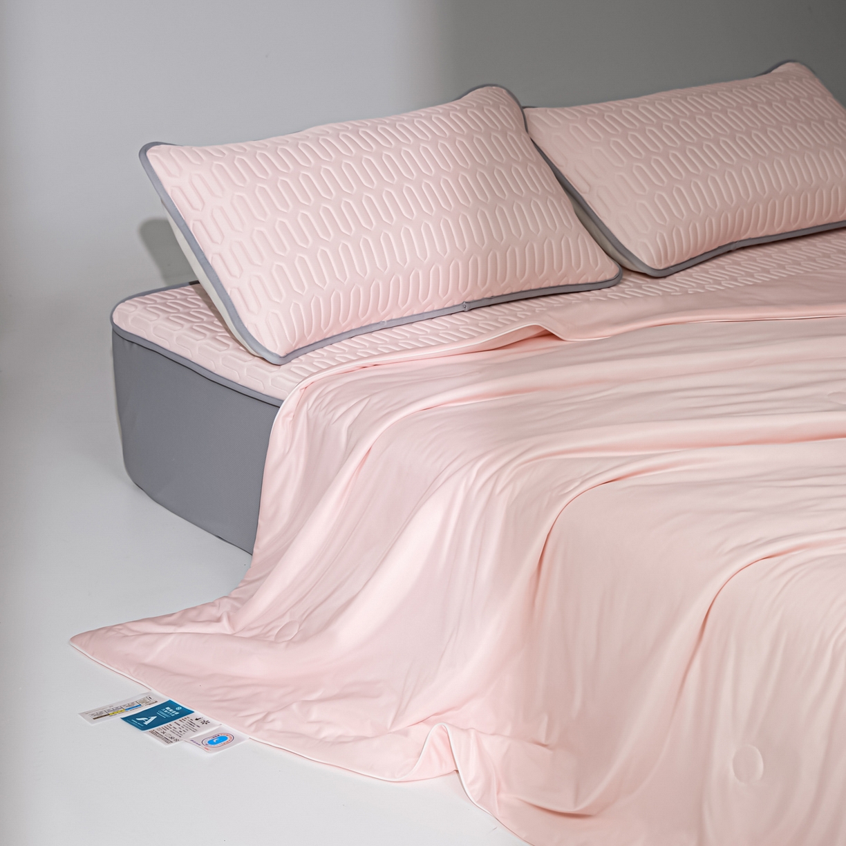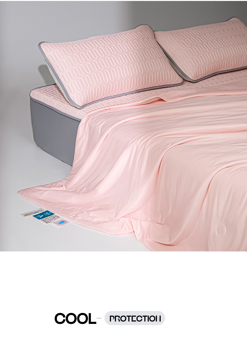 > 莱登卡奴 2026春夏新款A类冰淇淋凉感丝氨纶聚氨酯夏被夏凉被空调被四件套系列 樱桃粉