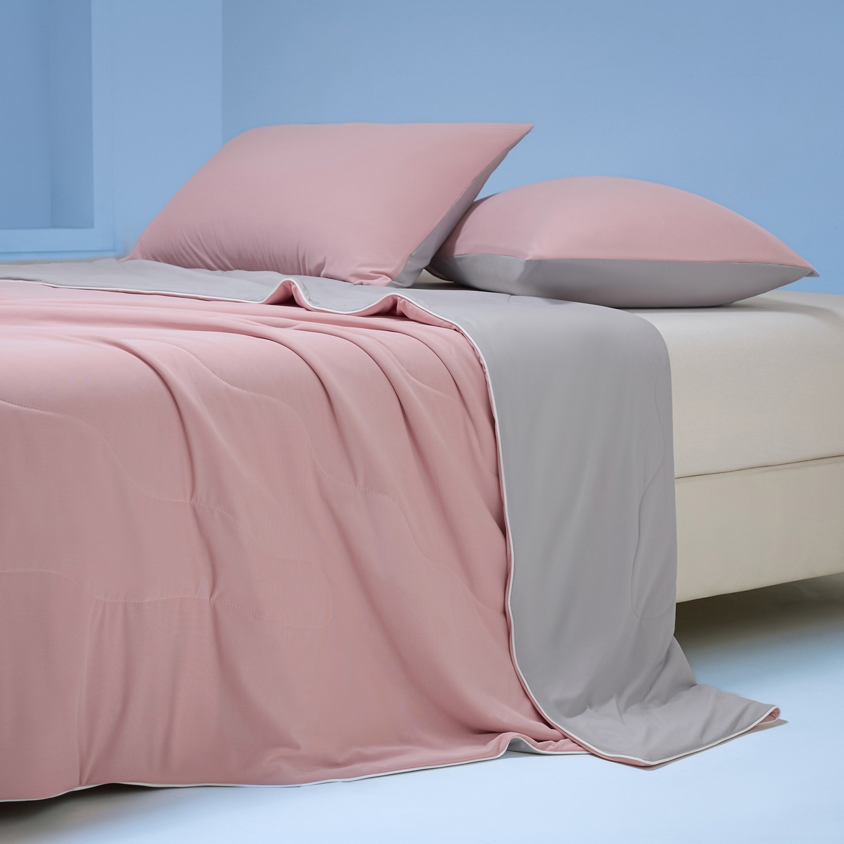 > 莱登卡奴 2026新款A类凉感丝锦氨撞色夏被夏凉被空调被 锦氨豆沙灰