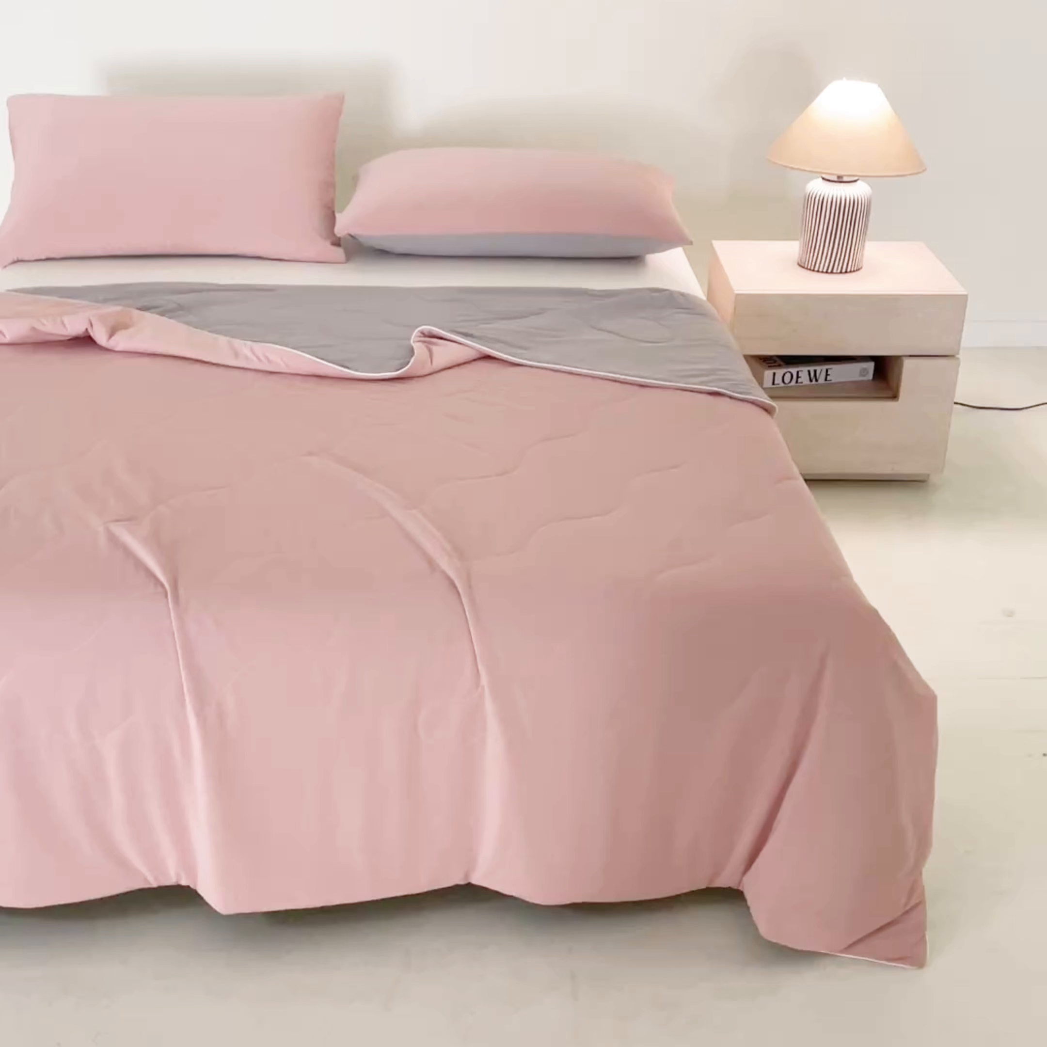 莱登卡奴 2026新款A类凉感丝锦氨撞色夏被夏凉被空调被 锦氨豆沙灰