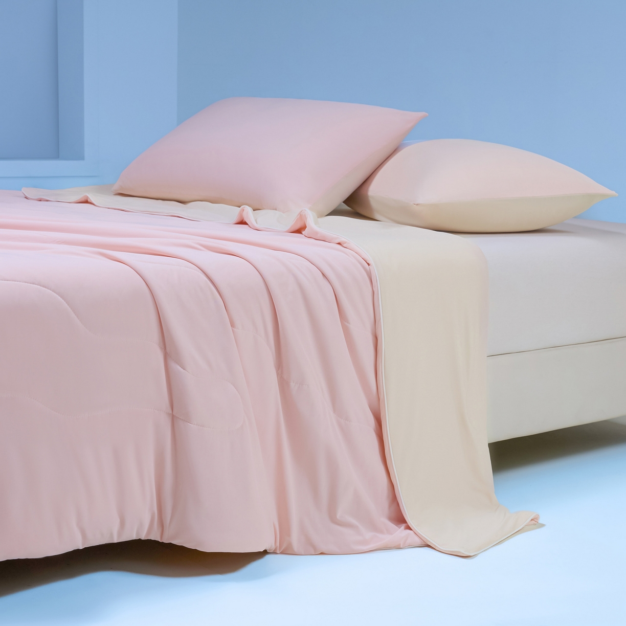 > 莱登卡奴 2026新款A类凉感丝锦氨撞色夏被夏凉被空调被 锦氨玉浅杏