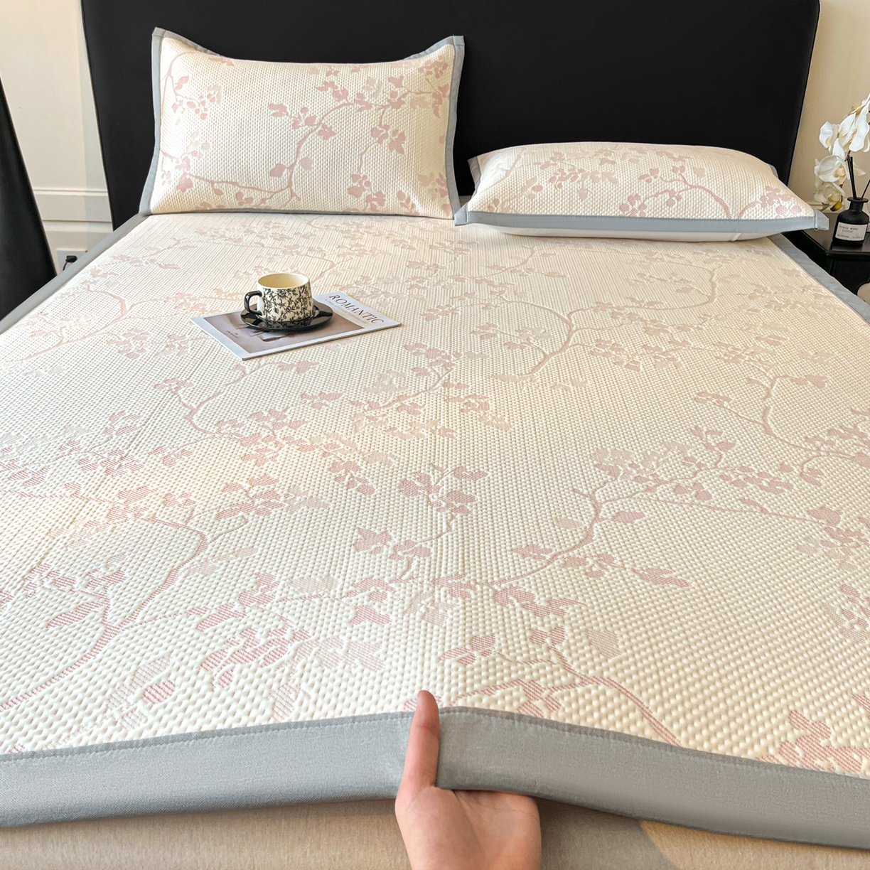 2025新款A类云母凉感丝豆豆被夏被凉席系列-花边凉席床笠款