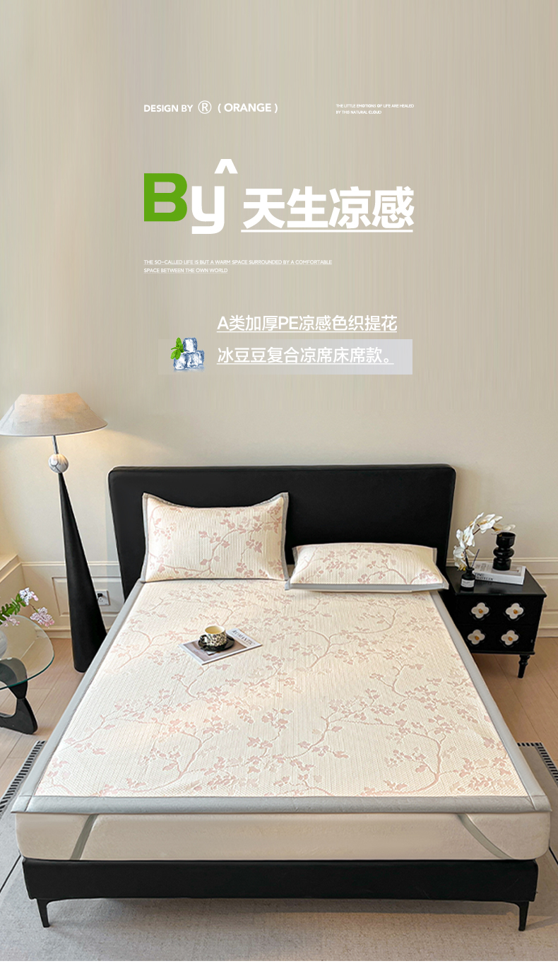 2026新款新款A类加厚PE凉感色织提花冰豆豆复合凉席席子床席款