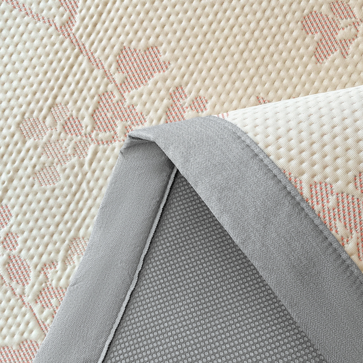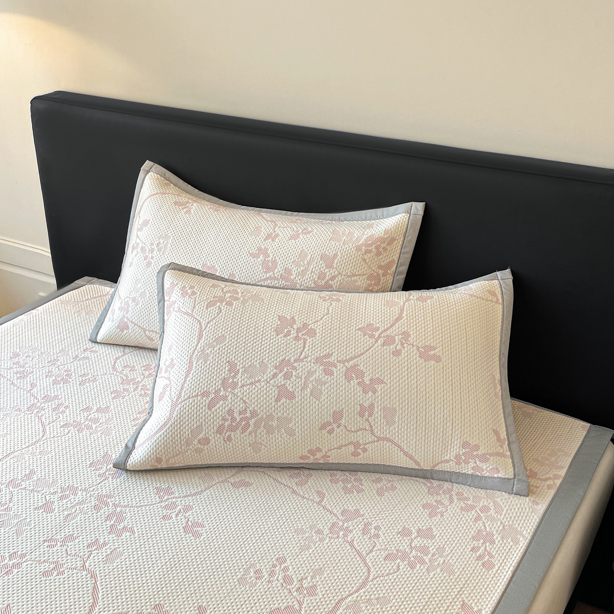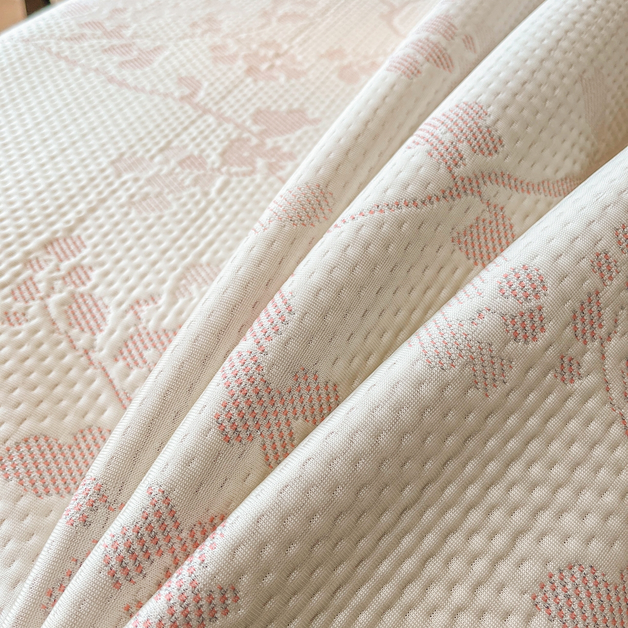 > 莱登卡奴 2026新款新款A类加厚PE凉感色织提花冰豆豆复合凉席席子床席款 椿沐-粉红