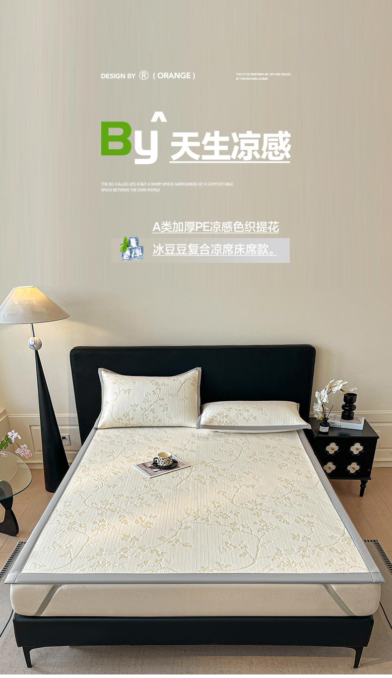 2026新款新款A类加厚PE凉感色织提花冰豆豆复合凉席席子床席款