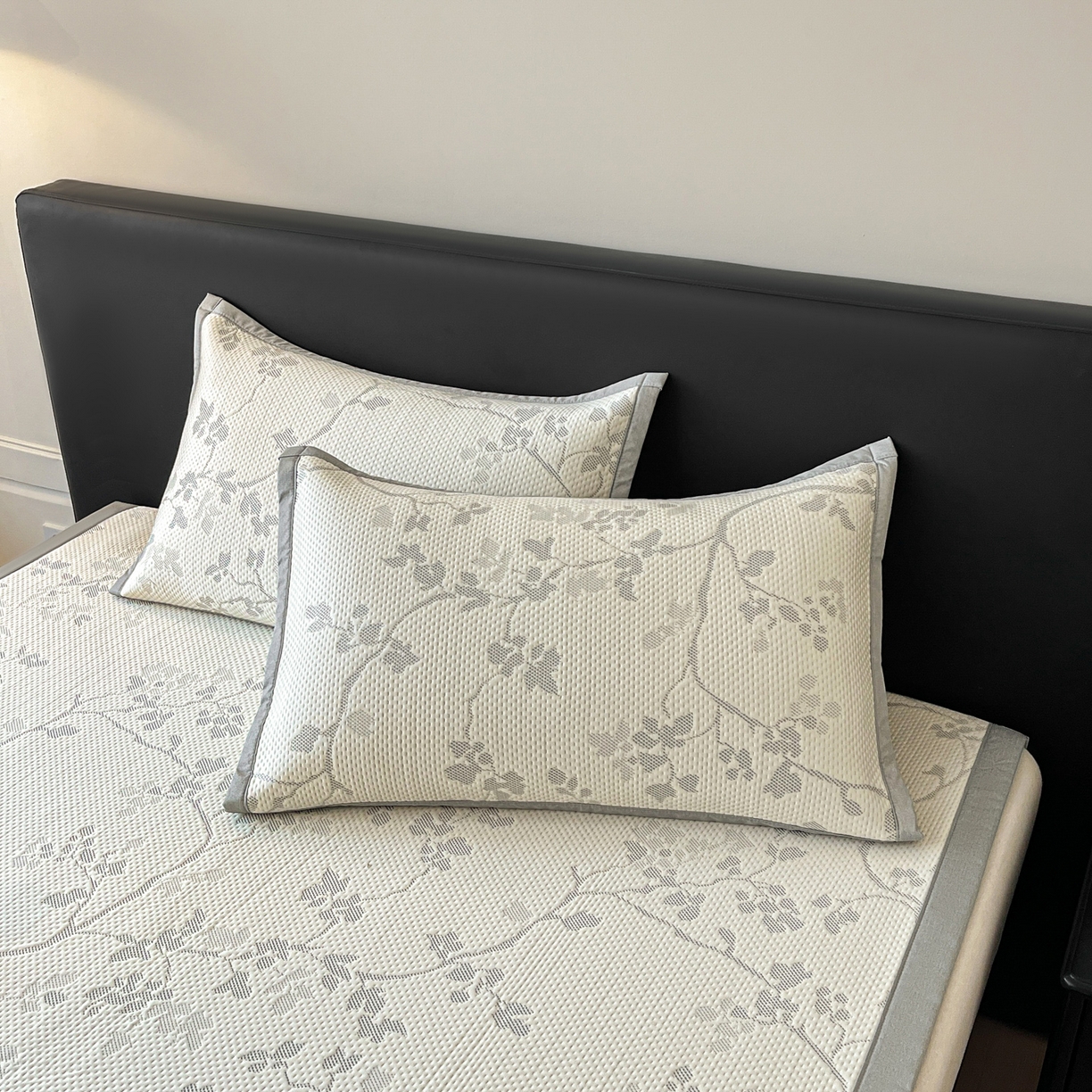 > 莱登卡奴 2026新款新款A类加厚PE凉感色织提花冰豆豆复合凉席席子床席款 椿沐-浅灰