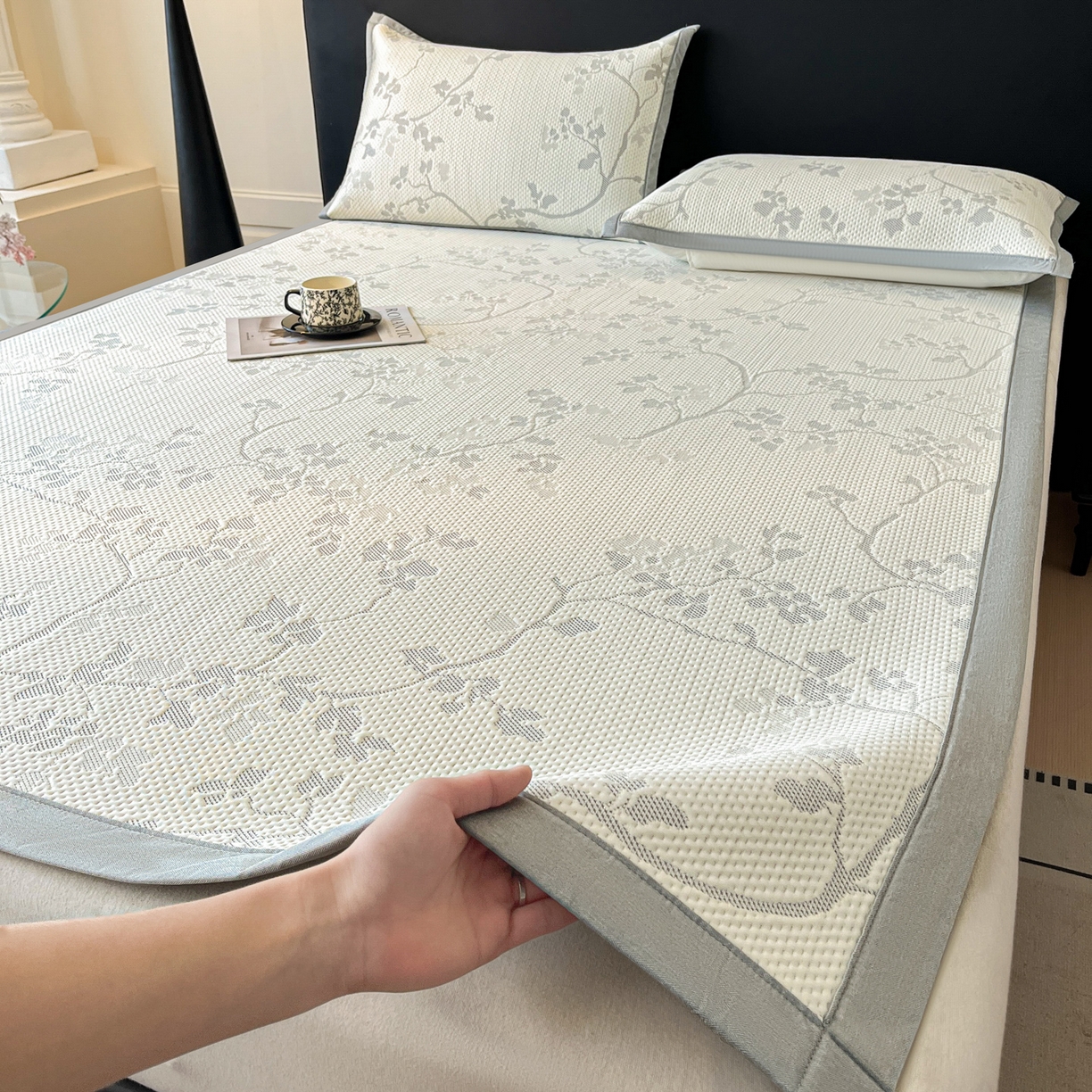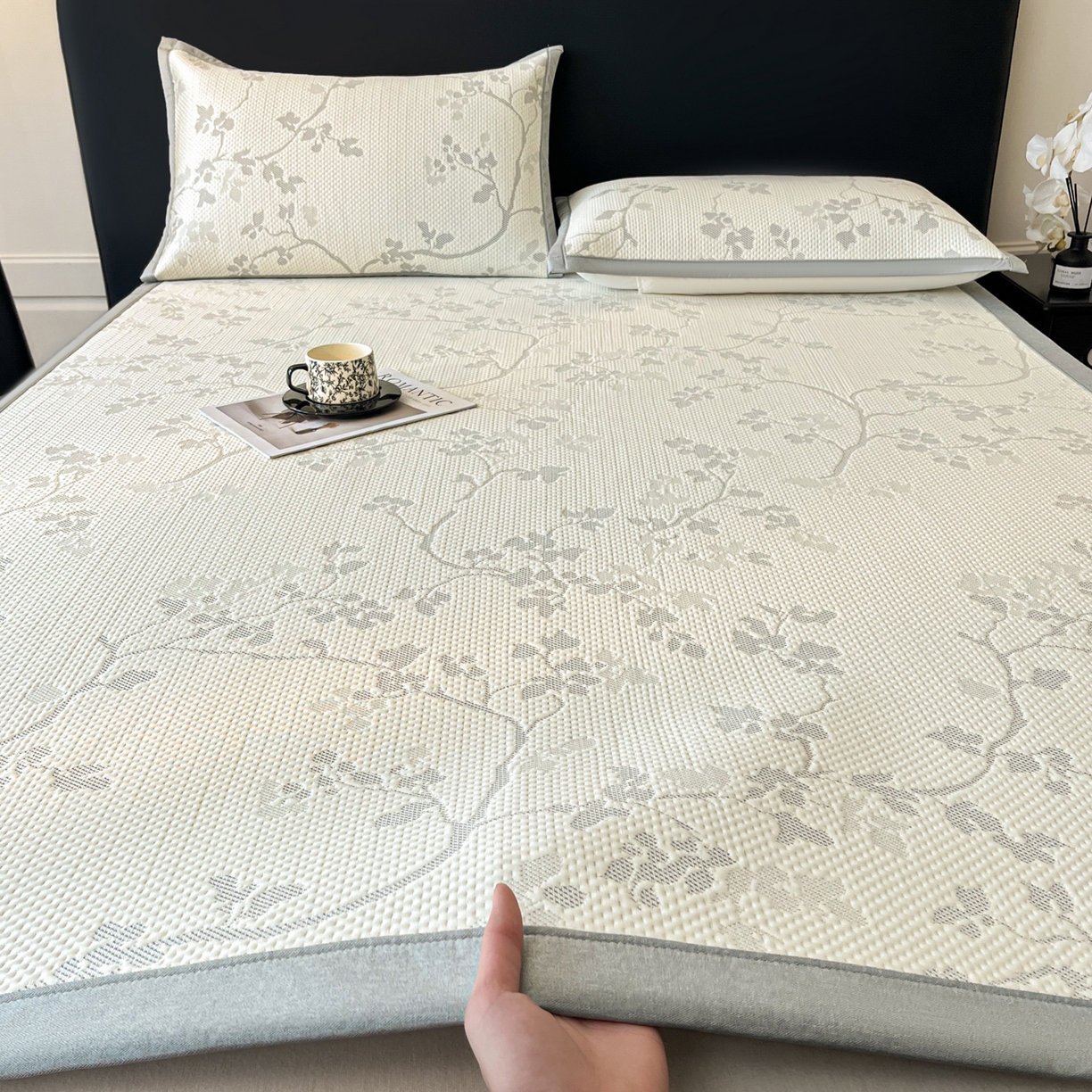 2025新款A类云母凉感丝豆豆被夏被凉席系列-花边凉席床笠款