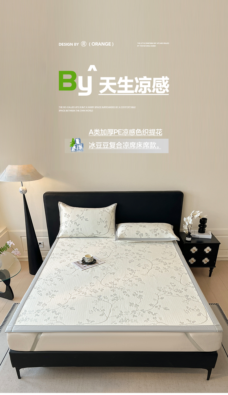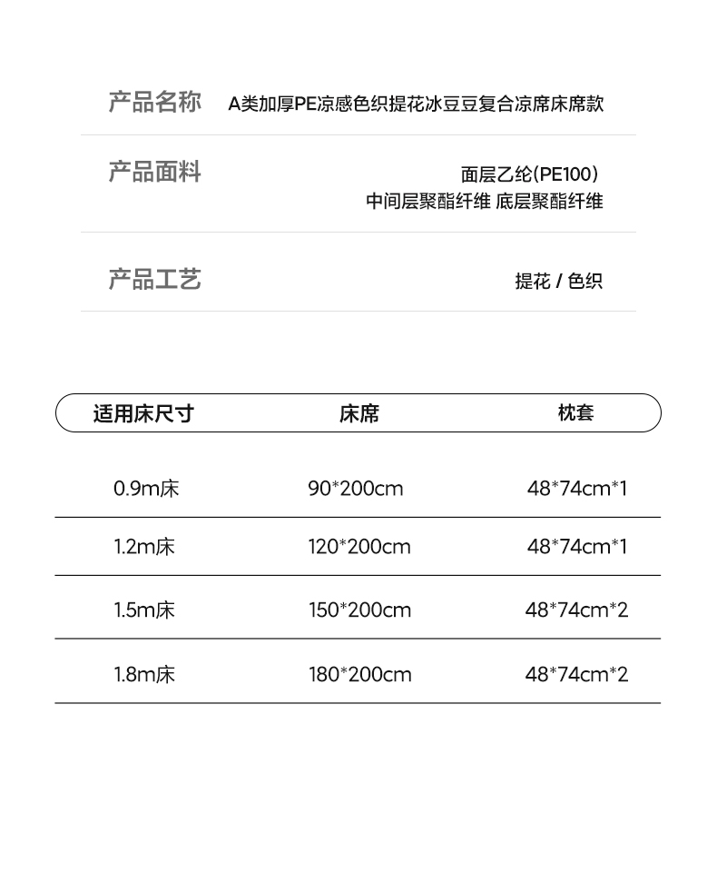 2026新款新款A类加厚PE凉感色织提花冰豆豆复合凉席席子床席款
