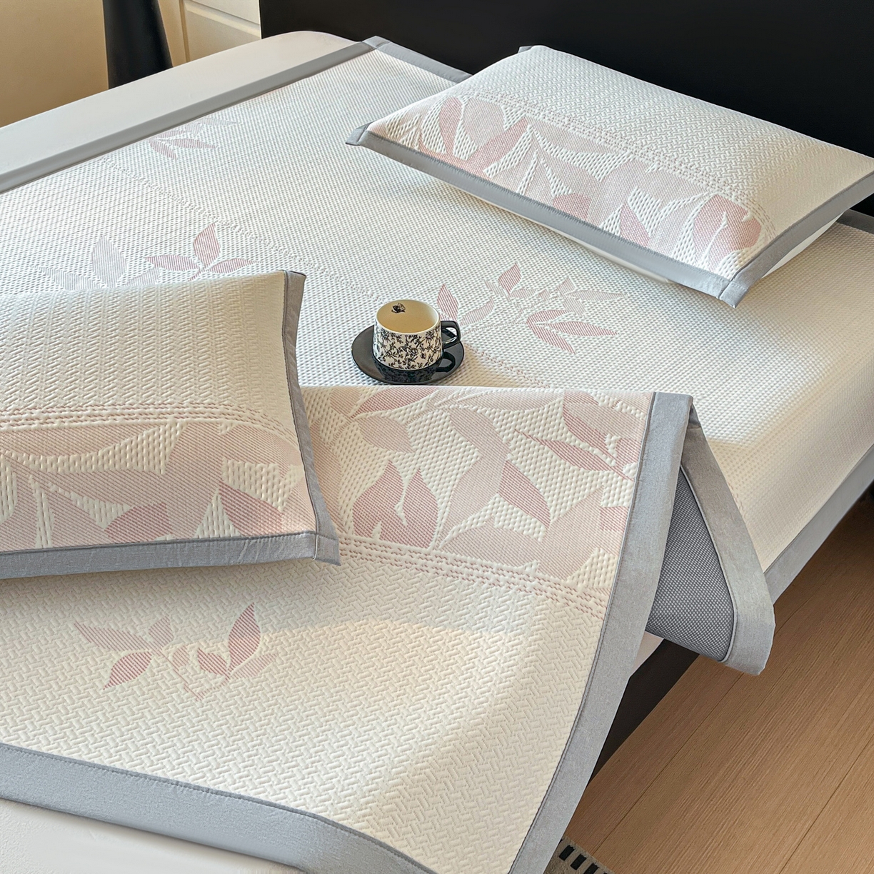 > 莱登卡奴 2026新款新款A类加厚PE凉感色织提花冰豆豆复合凉席席子床席款 沁悠-粉红