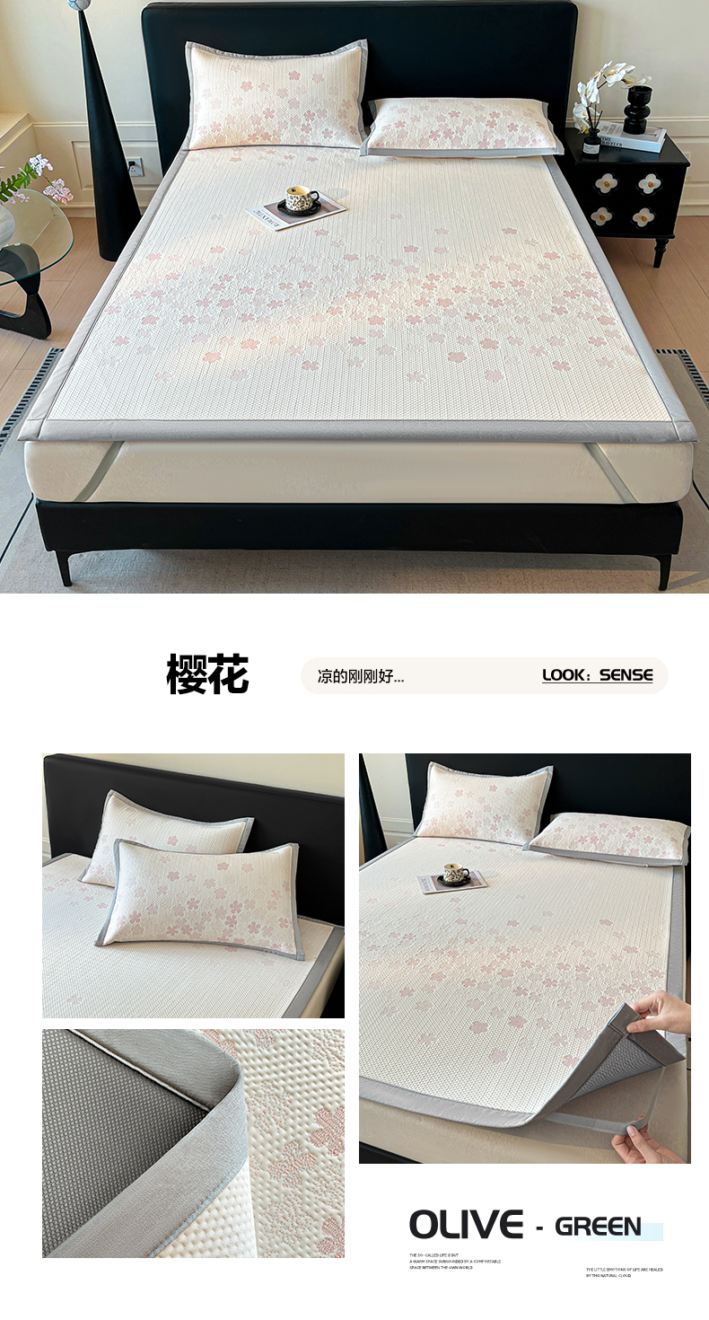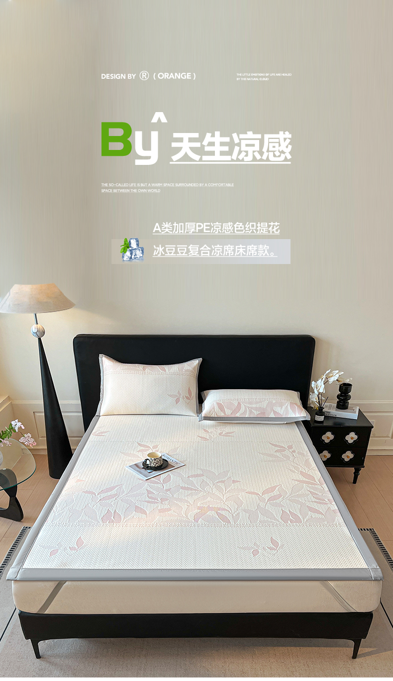 2026新款新款A类加厚PE凉感色织提花冰豆豆复合凉席席子床席款