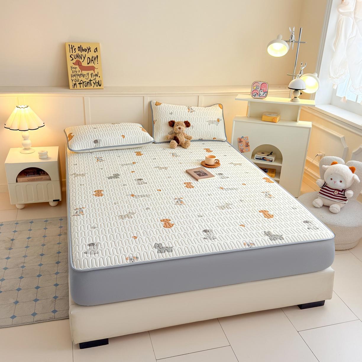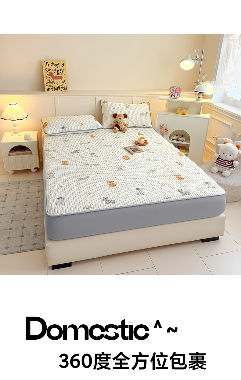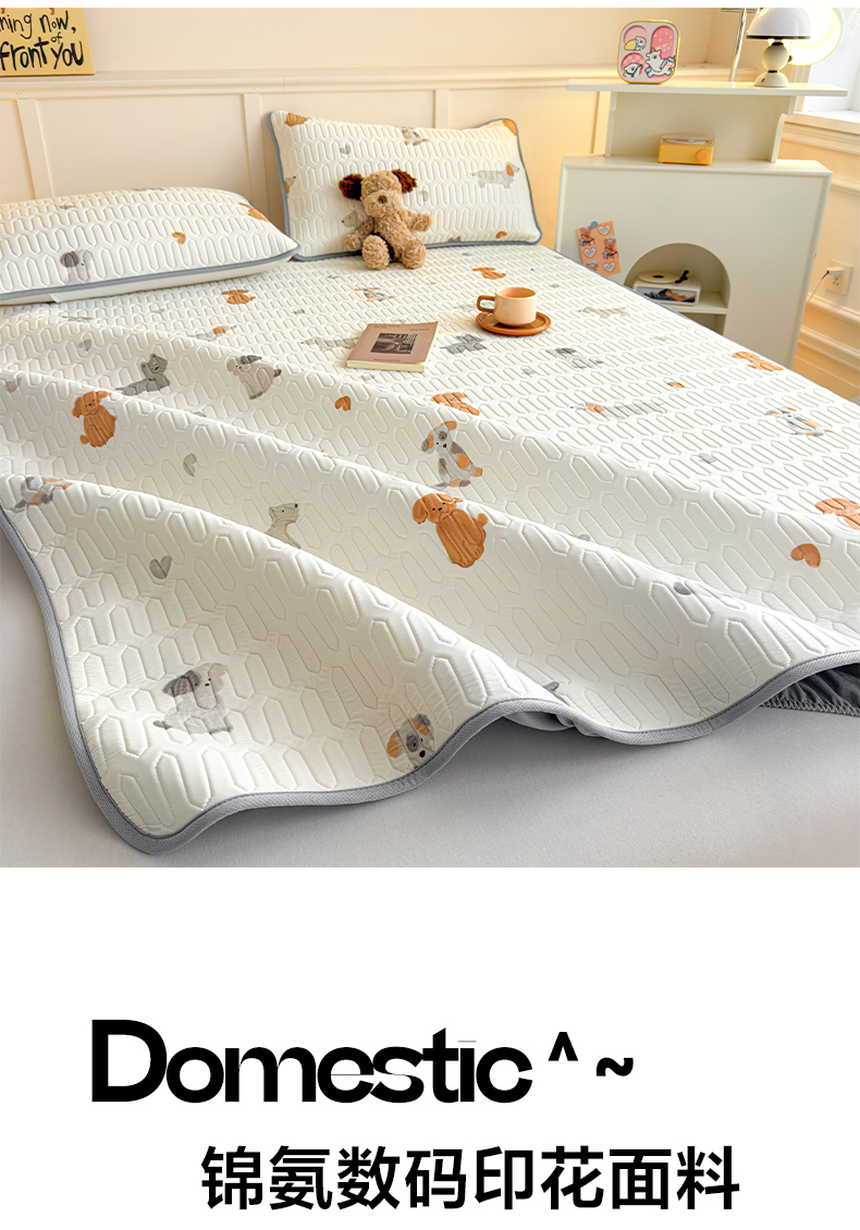 > 莱登卡奴 2026新款A类凉感丝锦氨印花凉席床笠款凉席席子系列 萌宠小狗