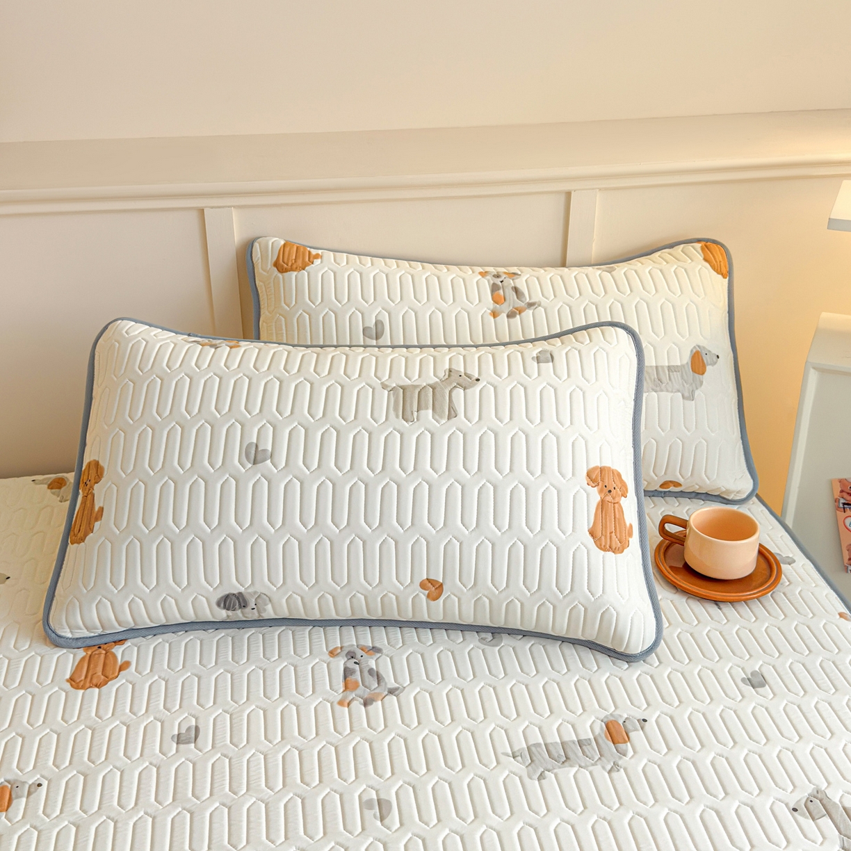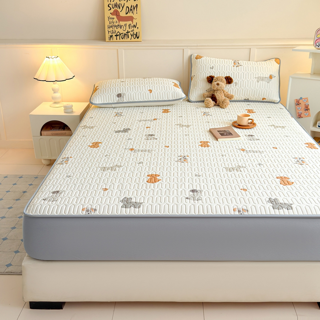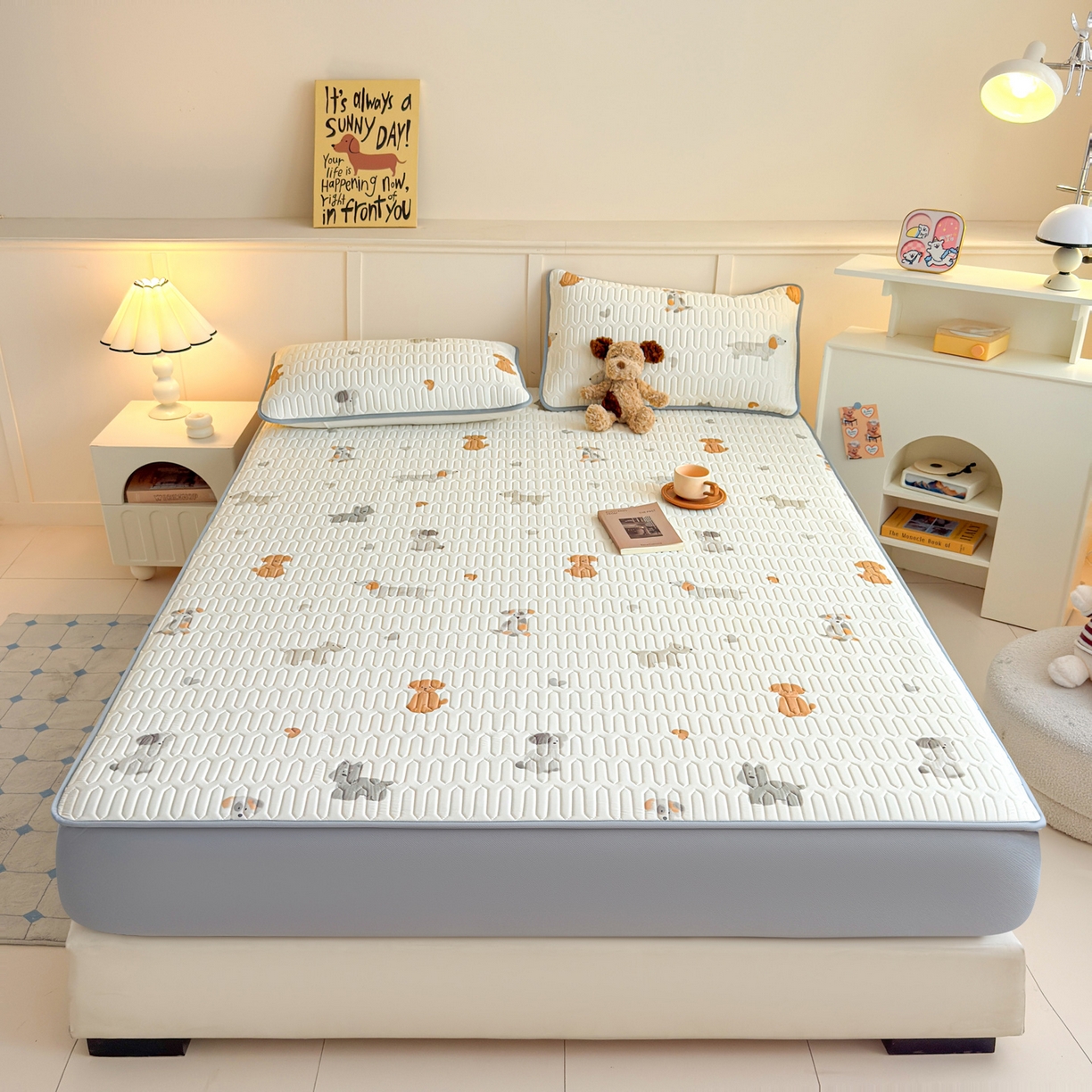 > 莱登卡奴 2026新款A类凉感丝锦氨印花凉席床笠款凉席席子系列 萌宠小狗