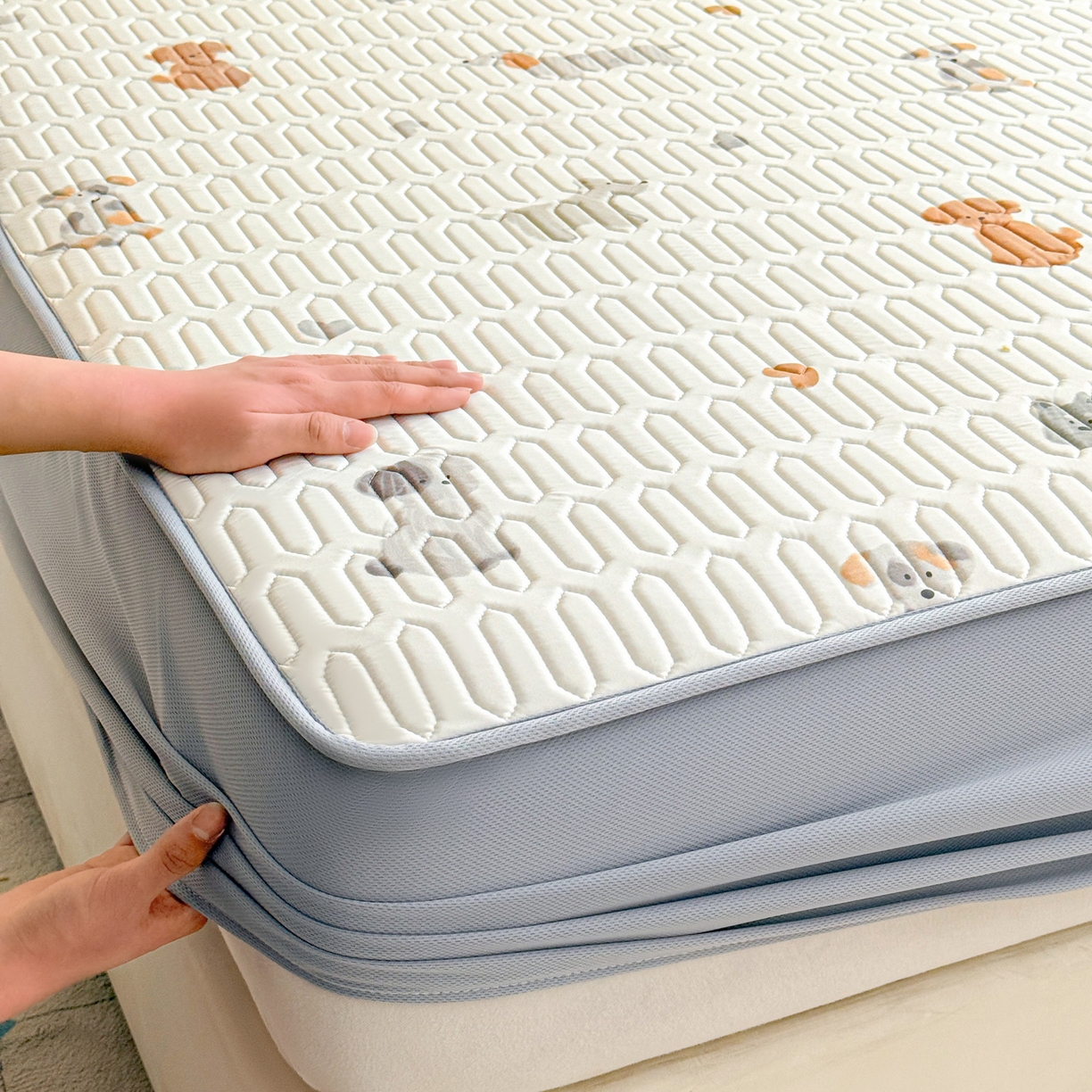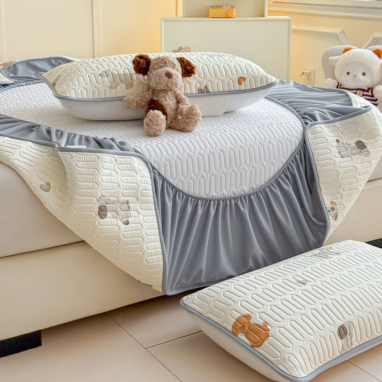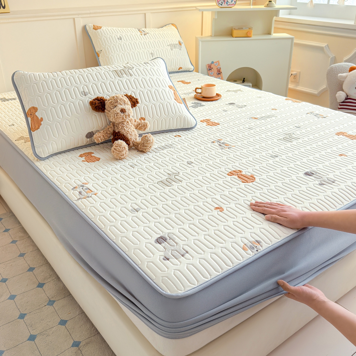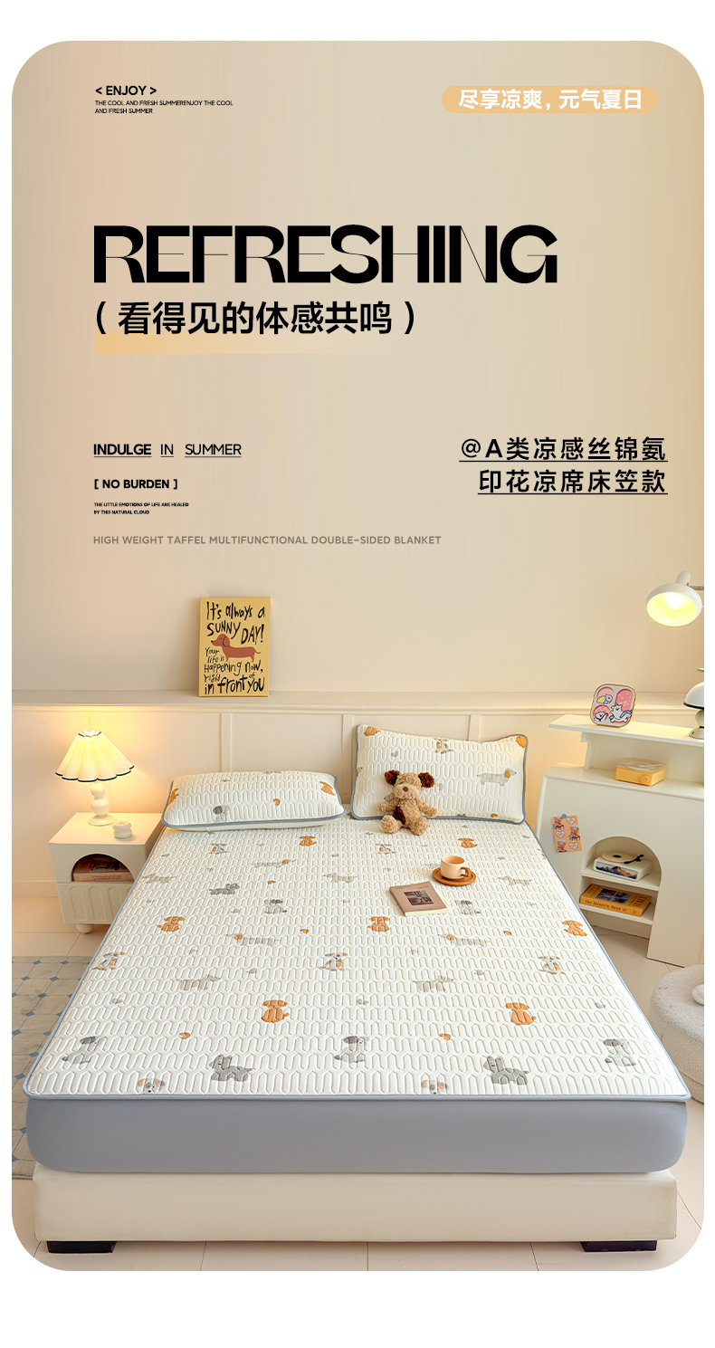 25新款A类凉感丝熊豆豆凉席床笠款