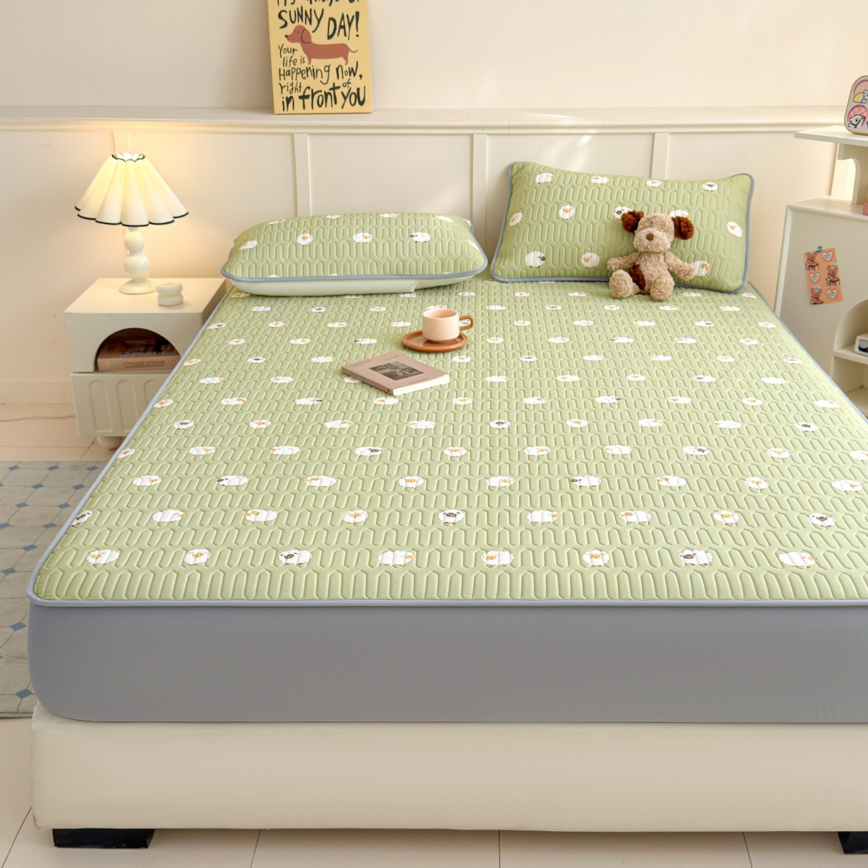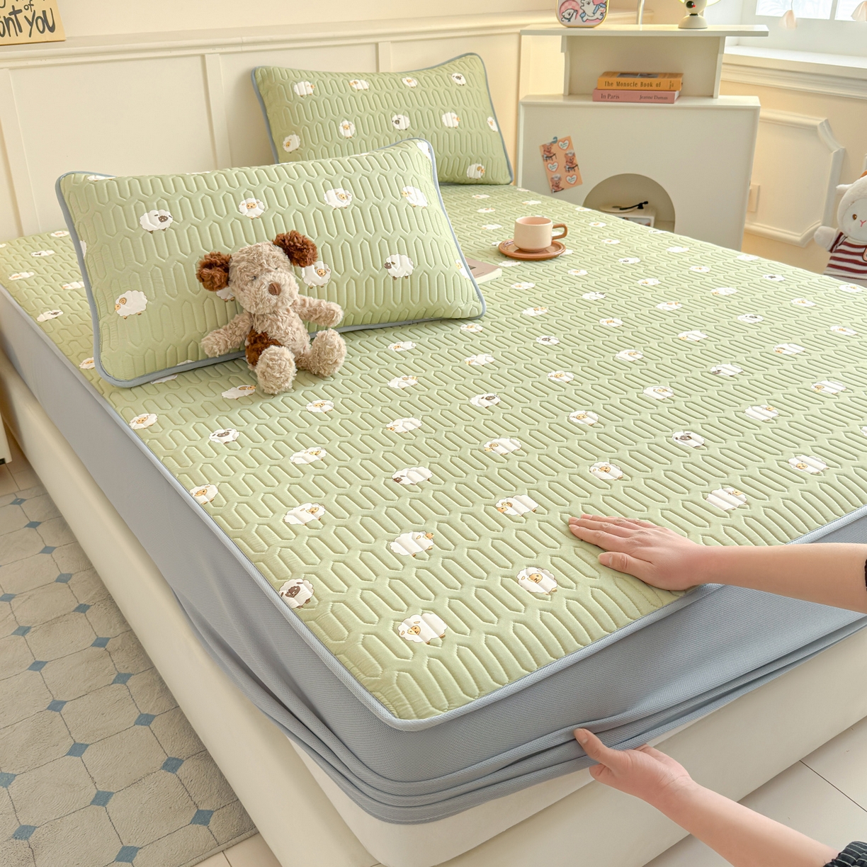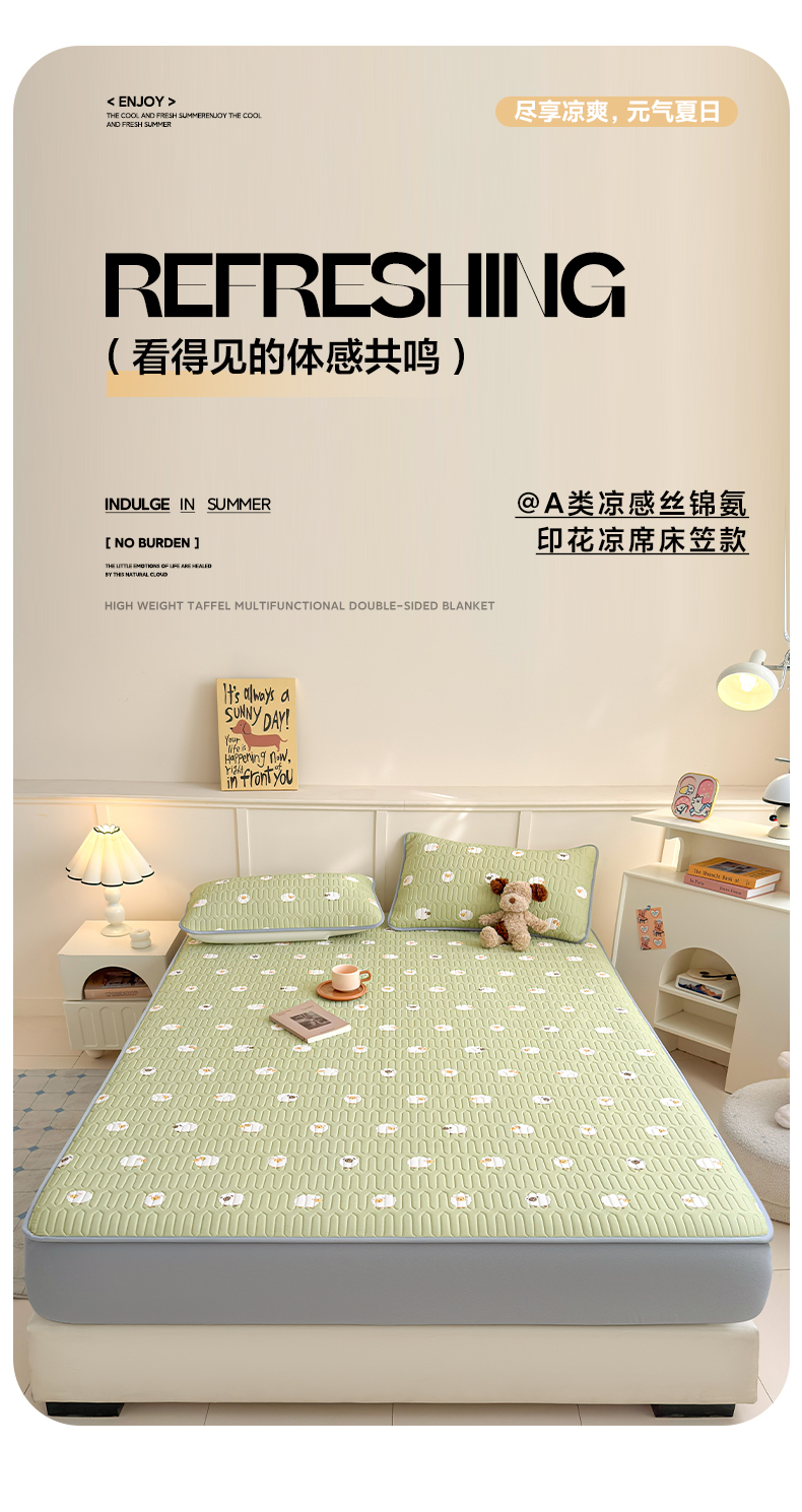 25新款A类凉感丝熊豆豆凉席床笠款
