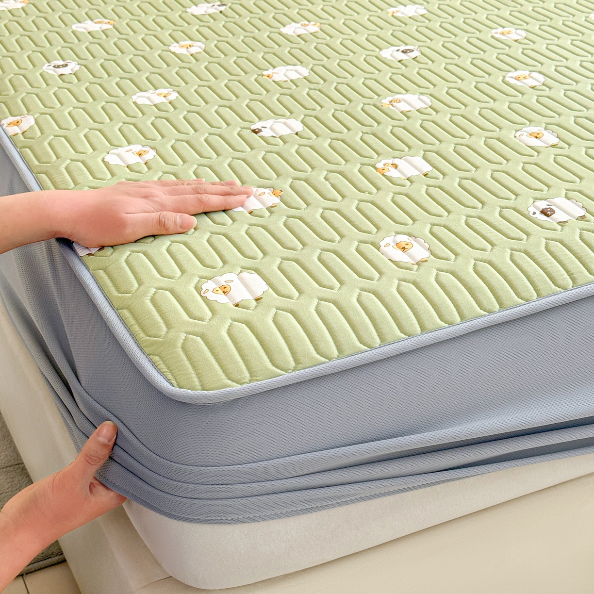 2026春夏新款A类冰淇淋凉感丝氨纶夹棉聚氨酯单床笠-曲纹