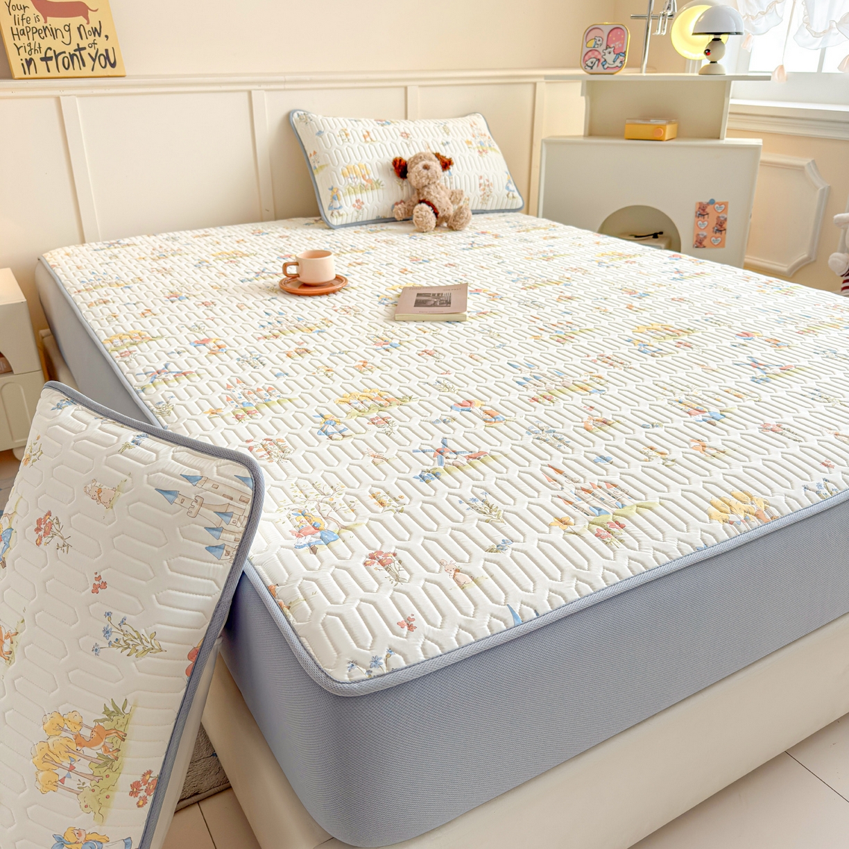 2025新款全棉磨毛加绒夹棉床盖卡通系列