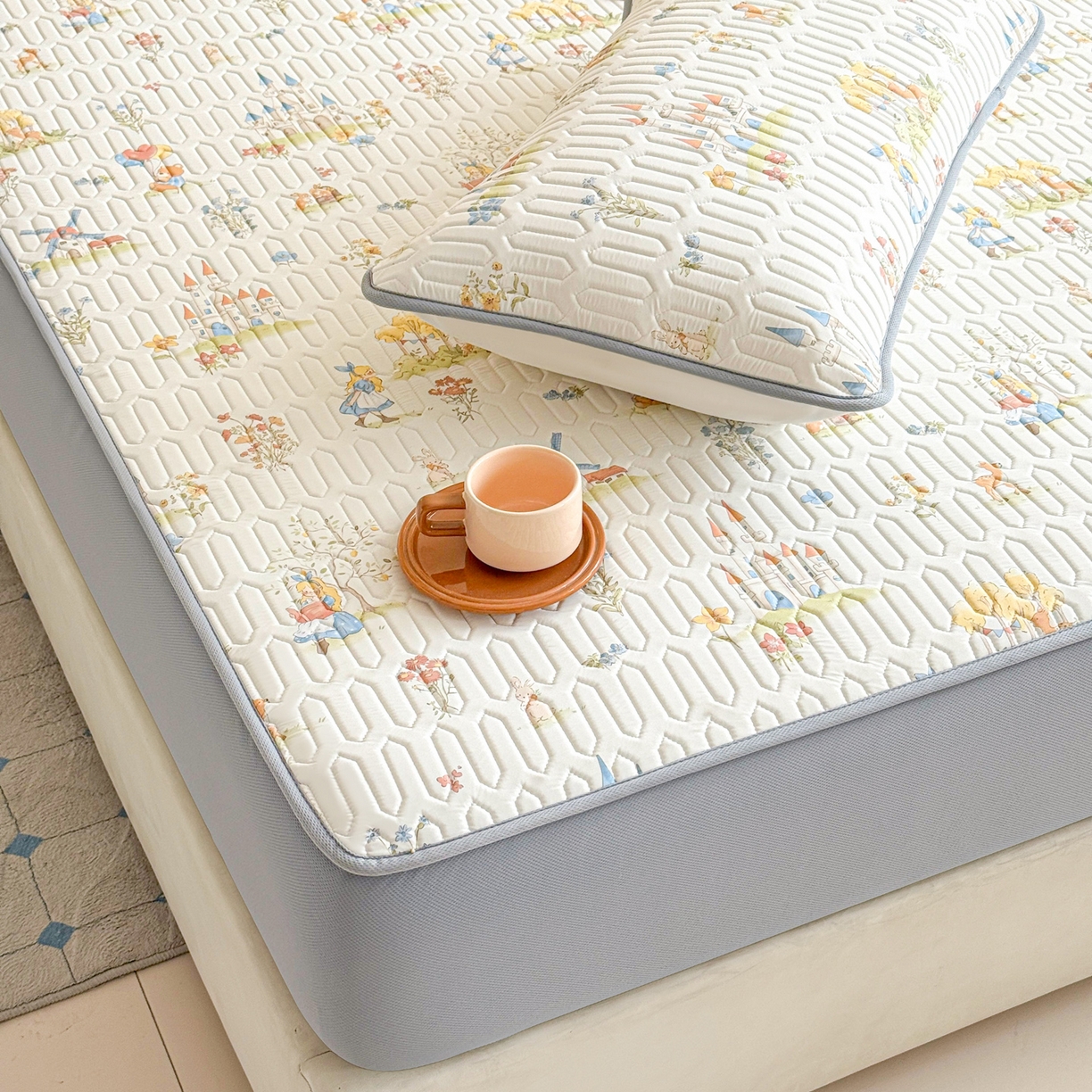 > 莱登卡奴 2026新款A类凉感丝锦氨印花凉席床笠款凉席席子系列 浅梦田园
