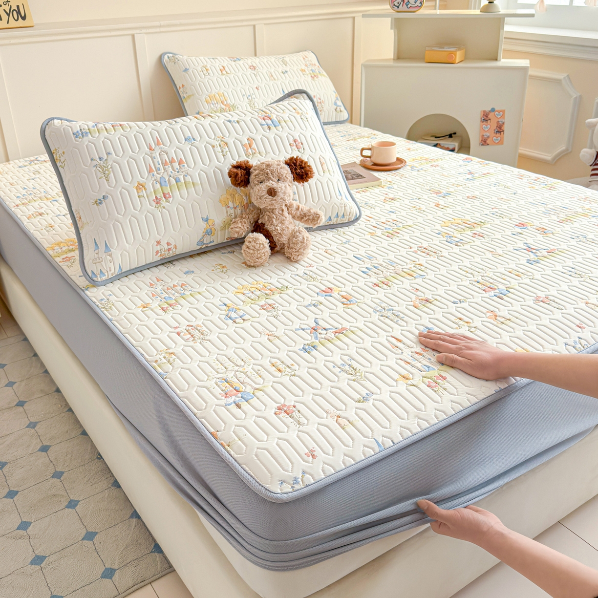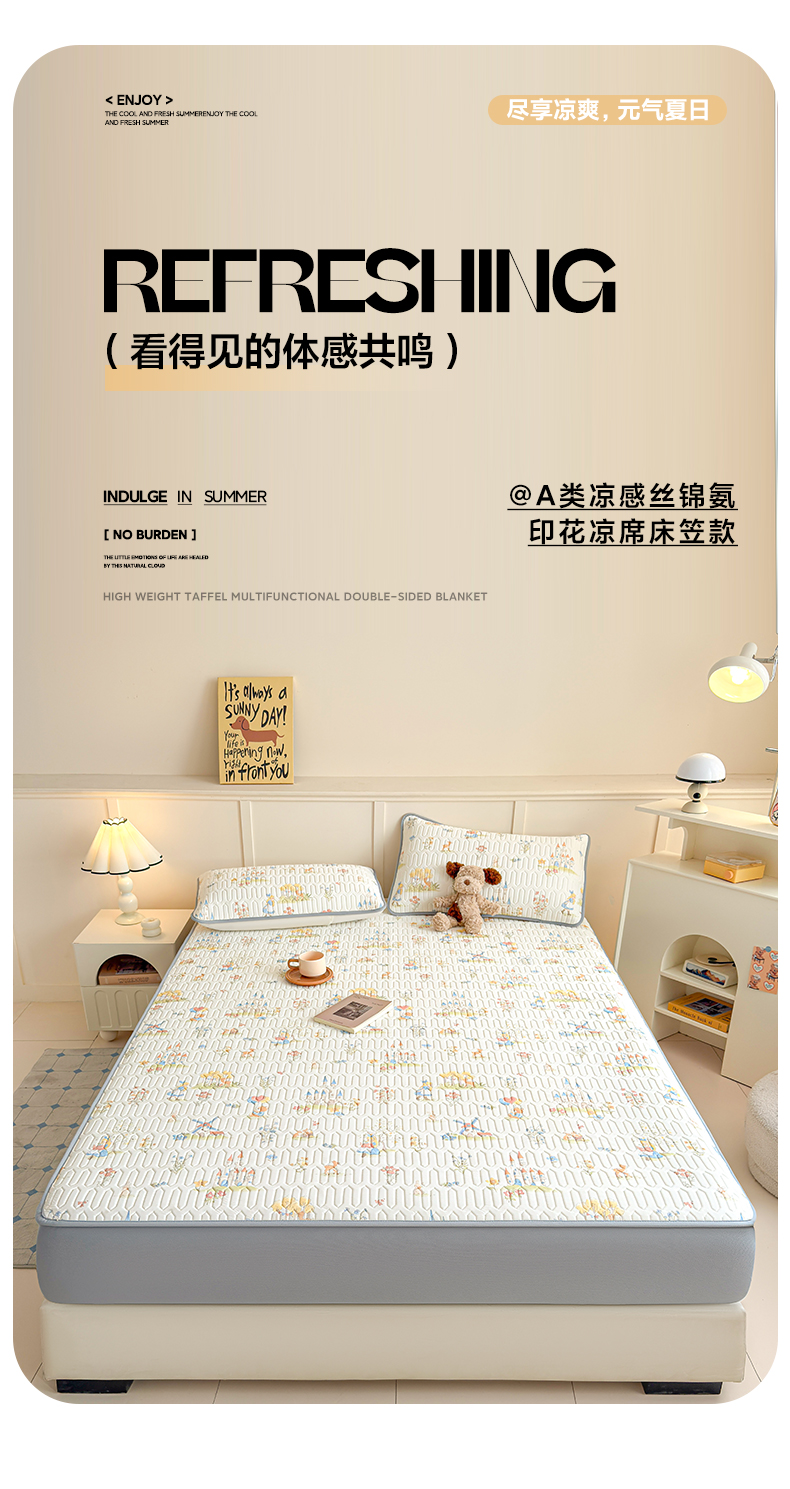 25新款A类凉感丝熊豆豆凉席床笠款