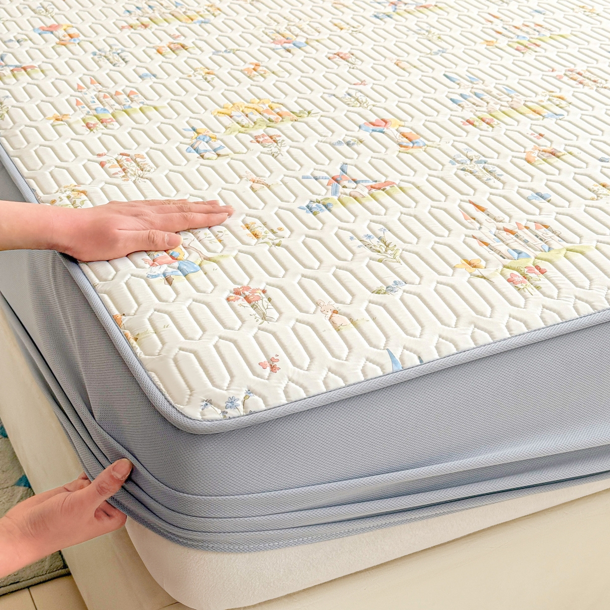 莱登卡奴 2026新款A类凉感丝锦氨印花凉席床笠款凉席席子系列 浅梦田园