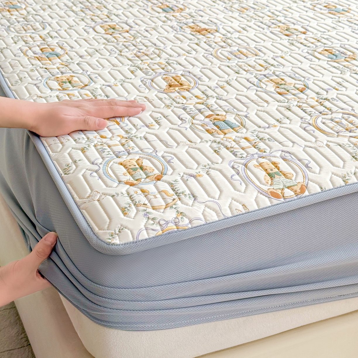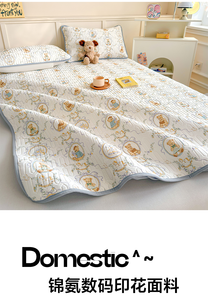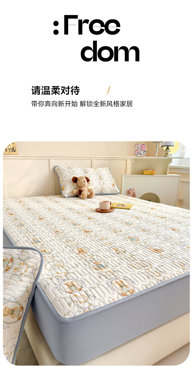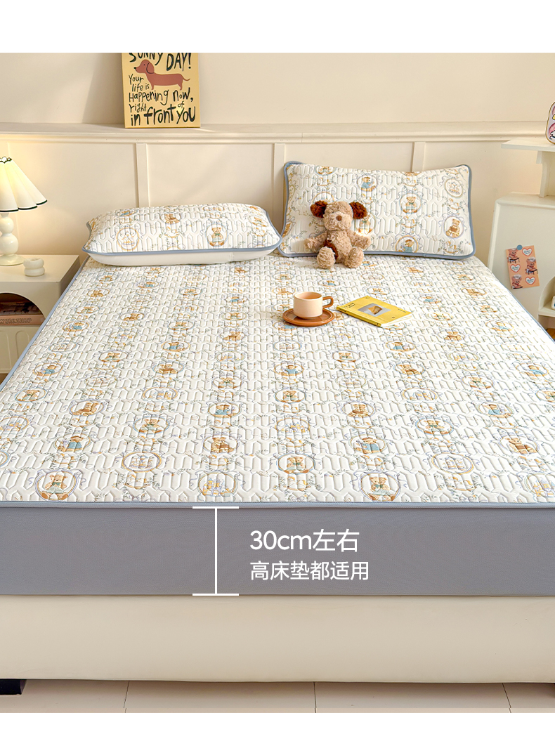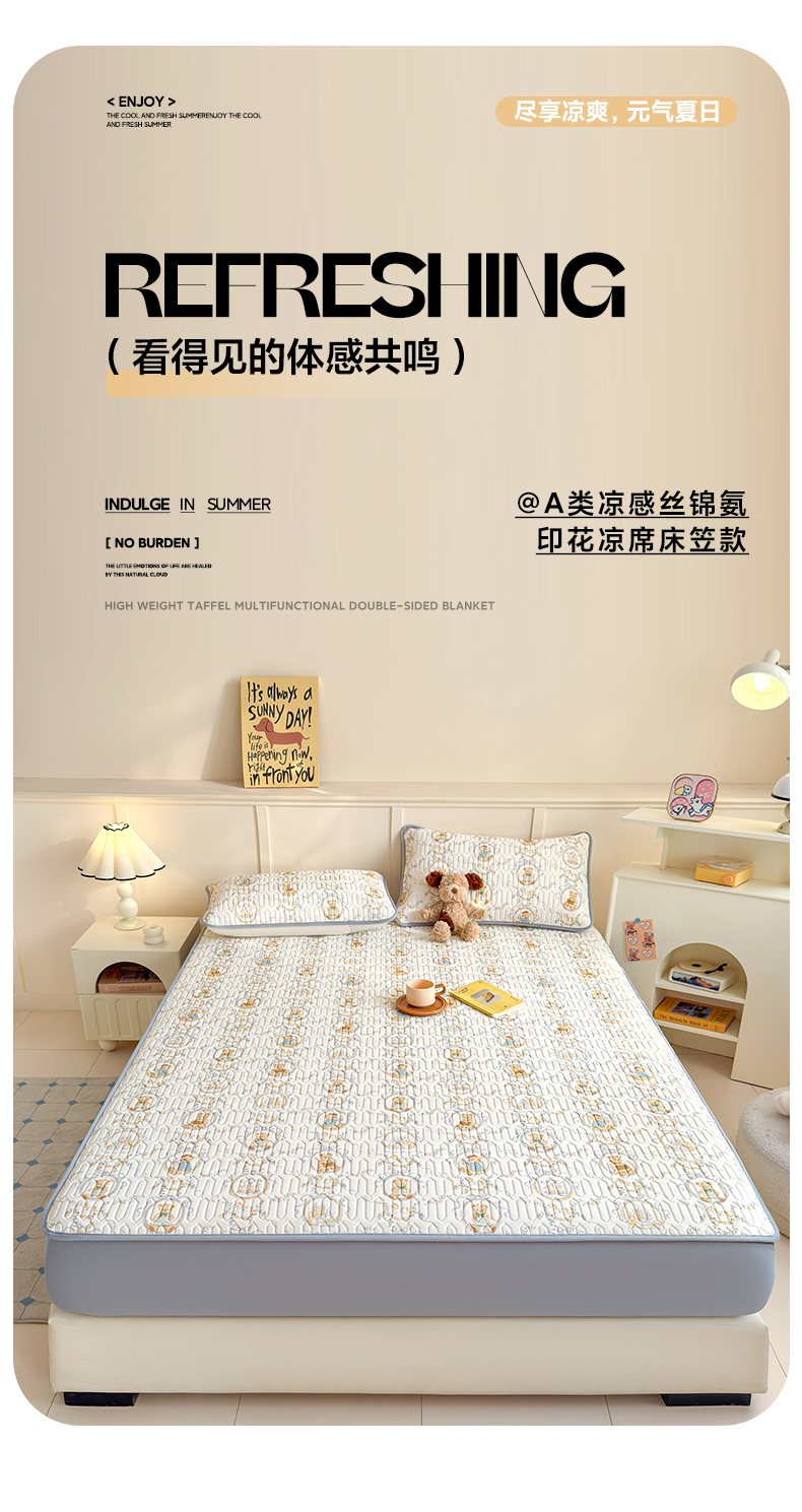 > 莱登卡奴 2026新款A类凉感丝锦氨印花凉席床笠款凉席席子系列 熊堡轻梦