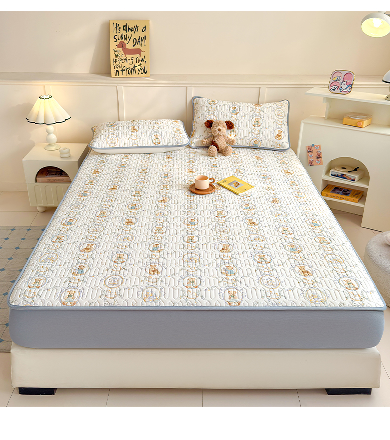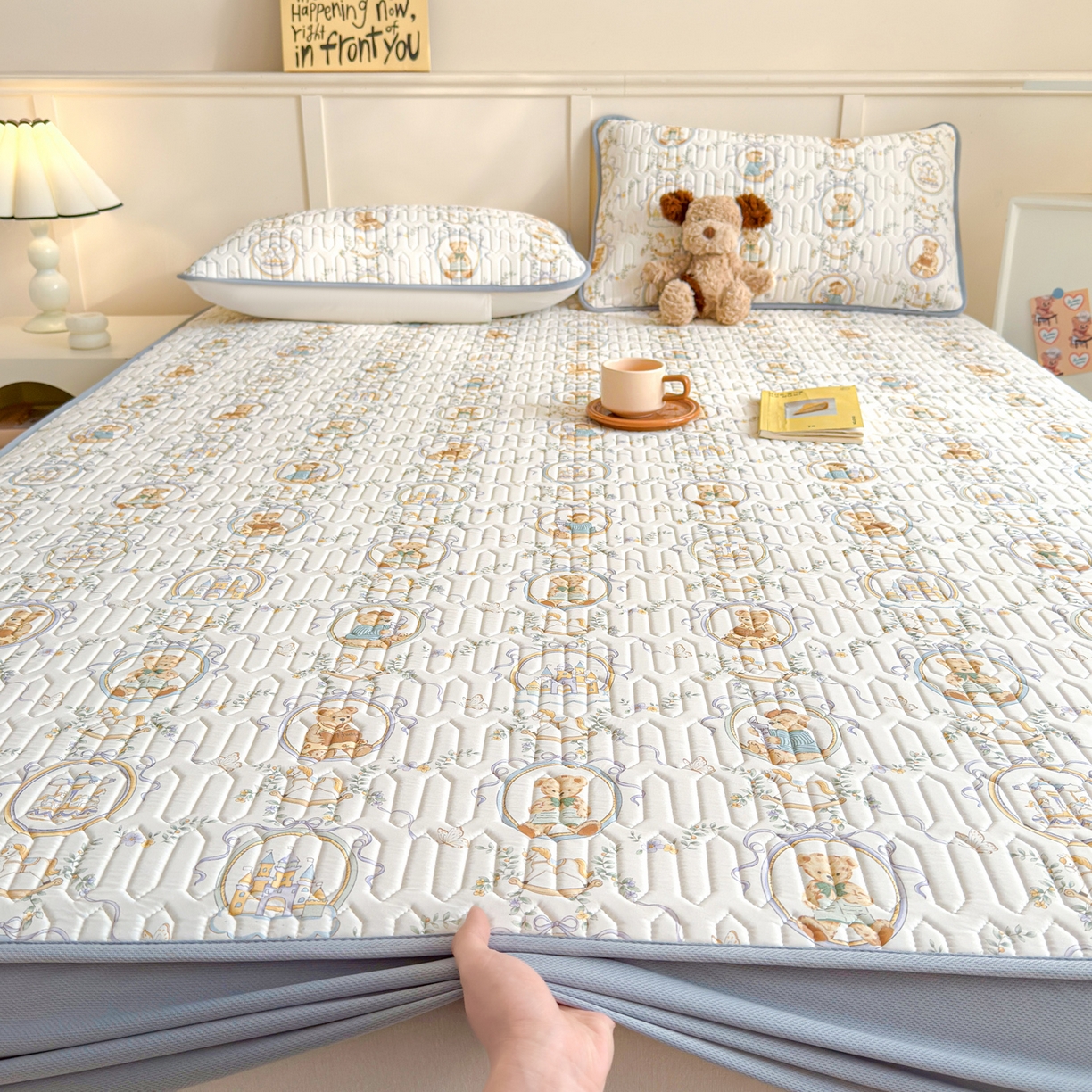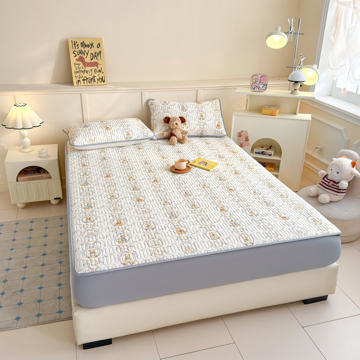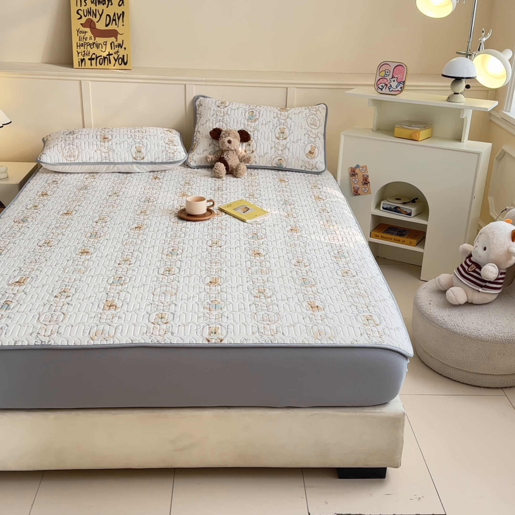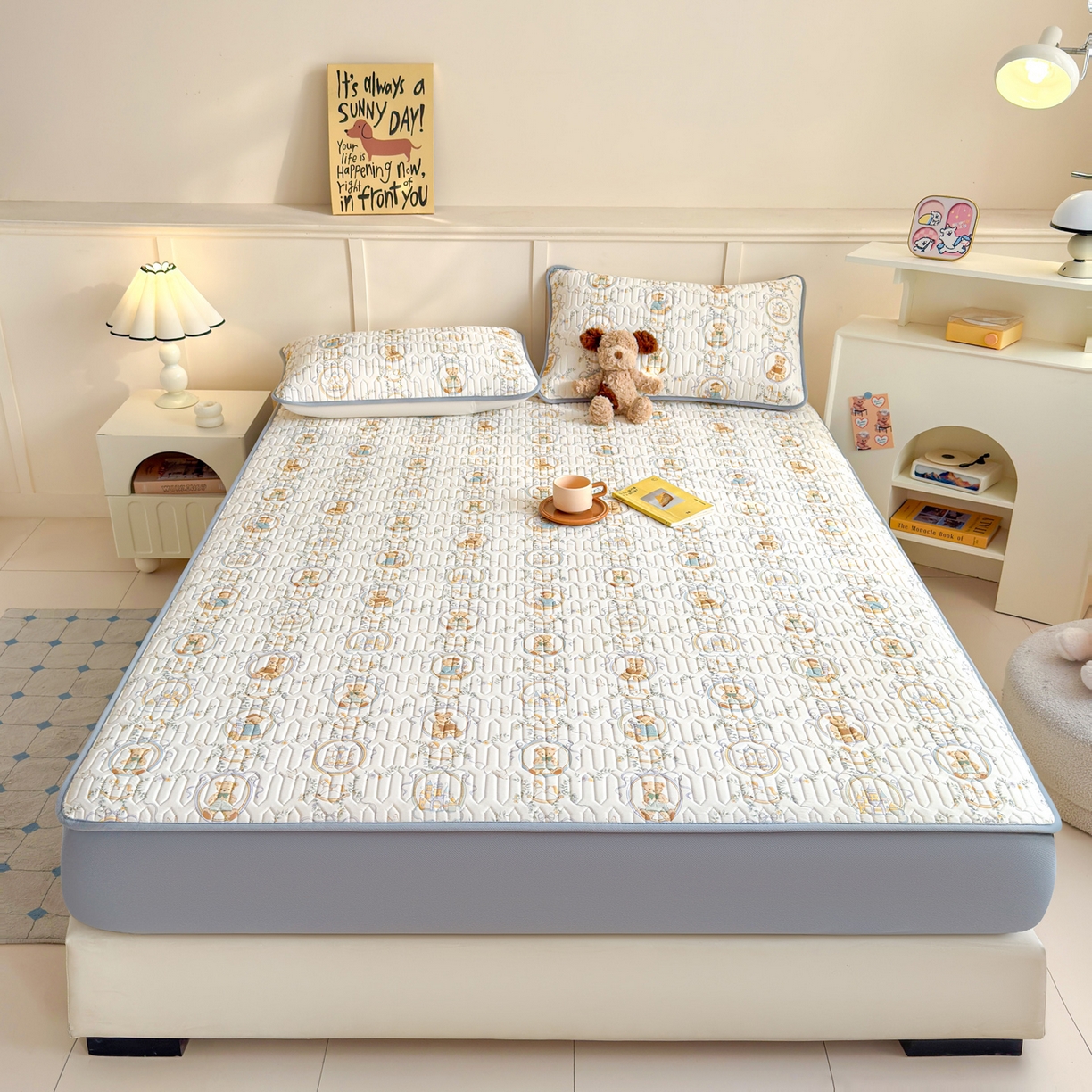 > 莱登卡奴 2026新款A类凉感丝锦氨印花凉席床笠款凉席席子系列 熊堡轻梦