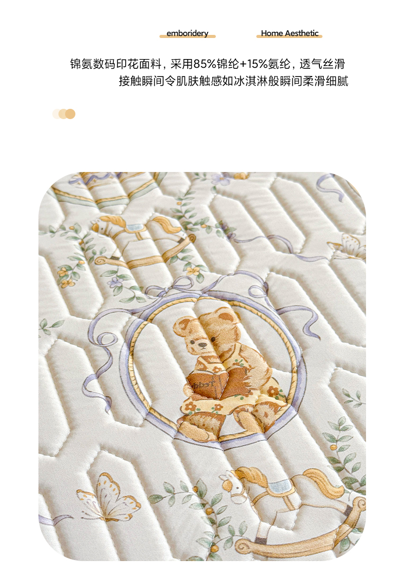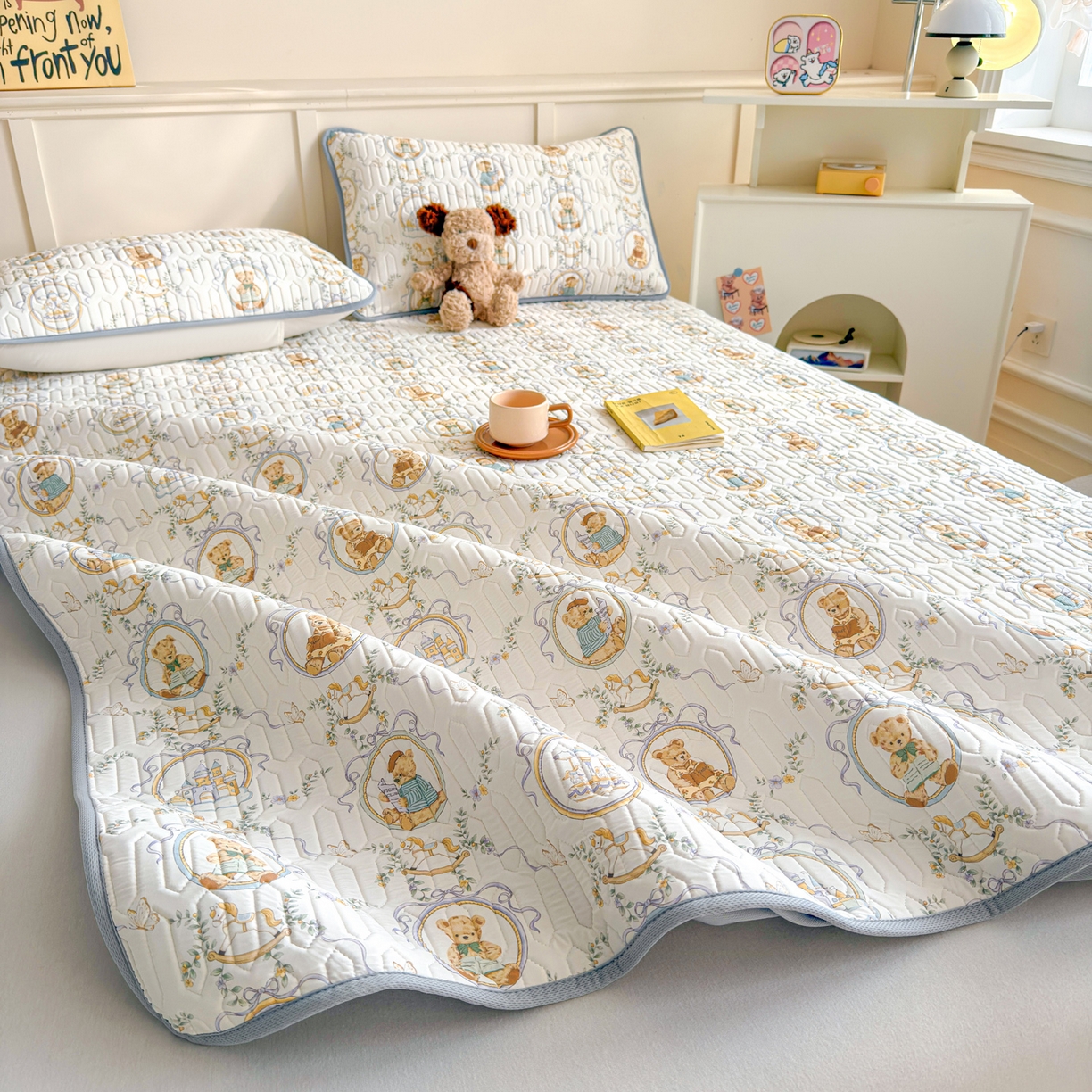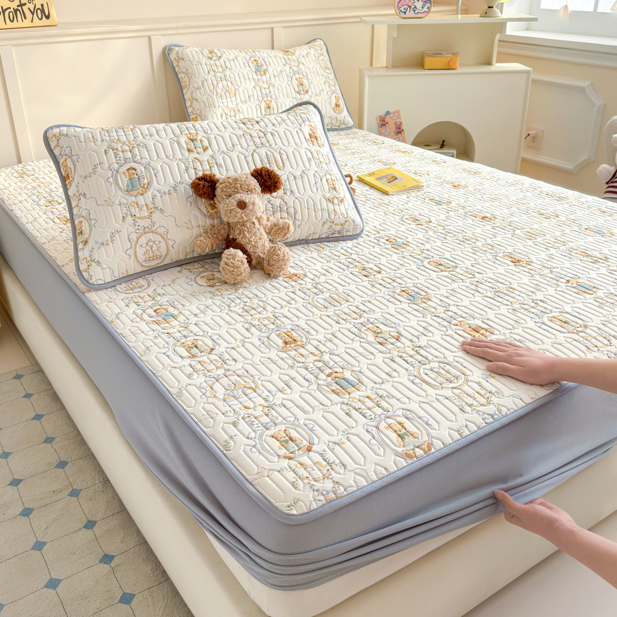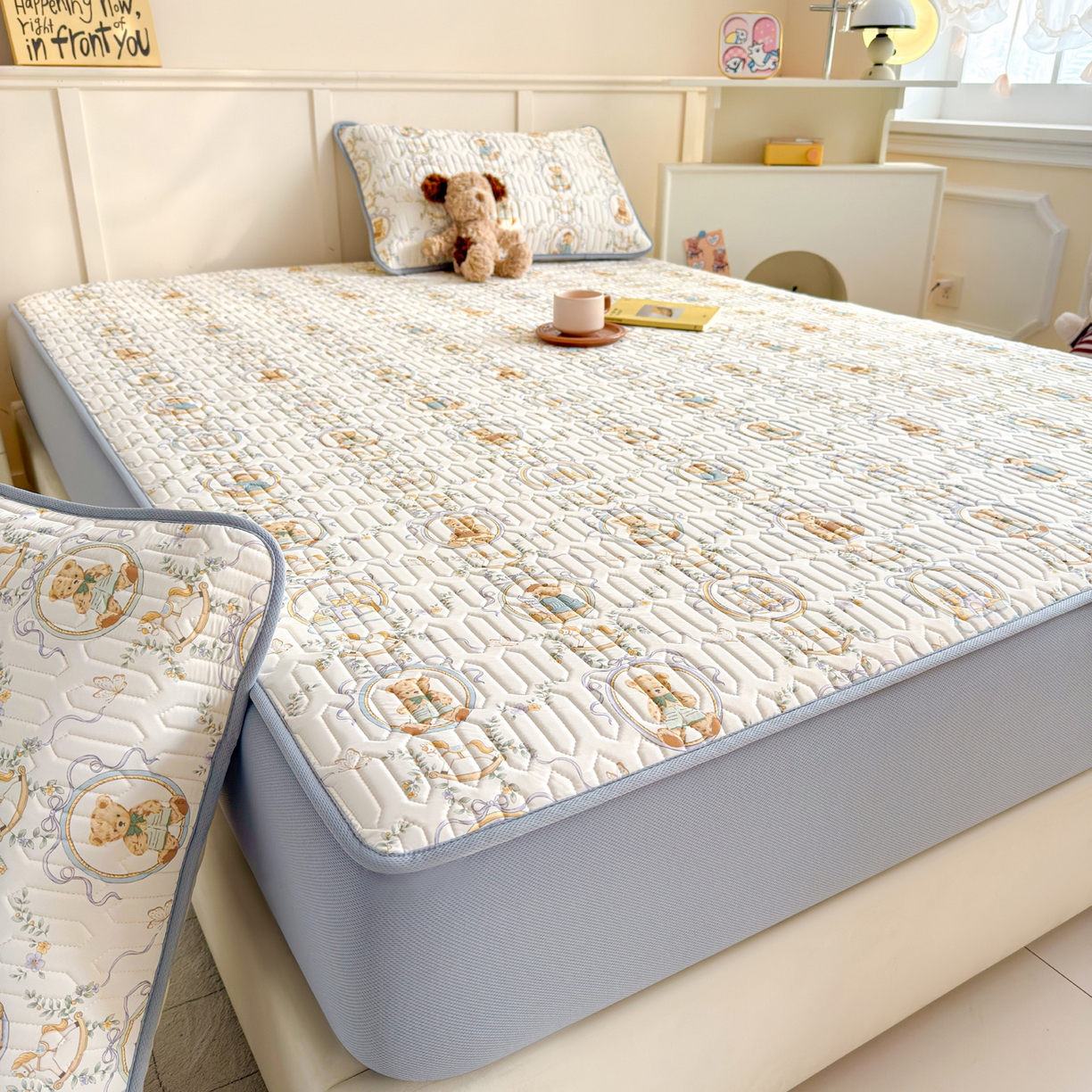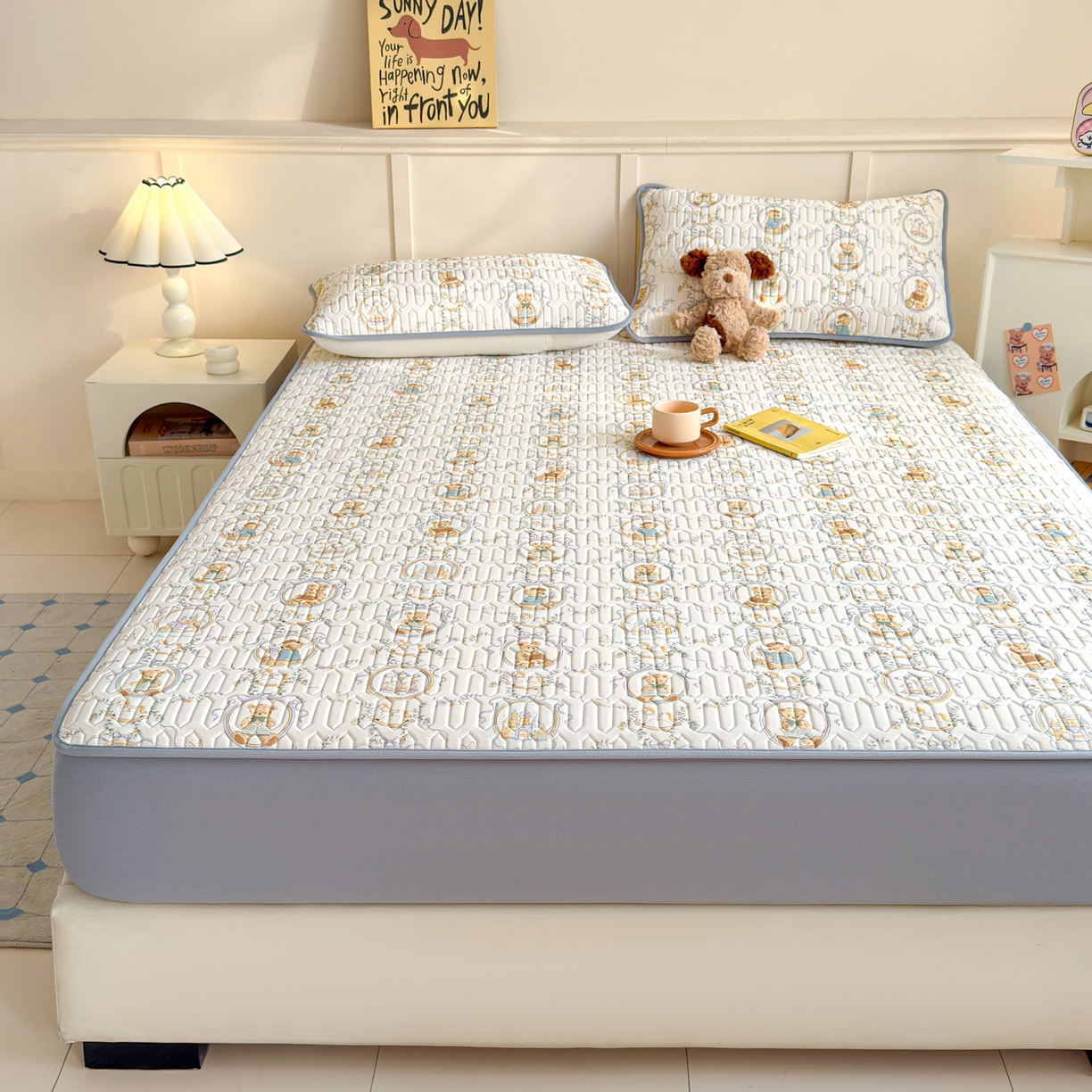 > 莱登卡奴 2026新款A类凉感丝锦氨印花凉席床笠款凉席席子系列 熊堡轻梦