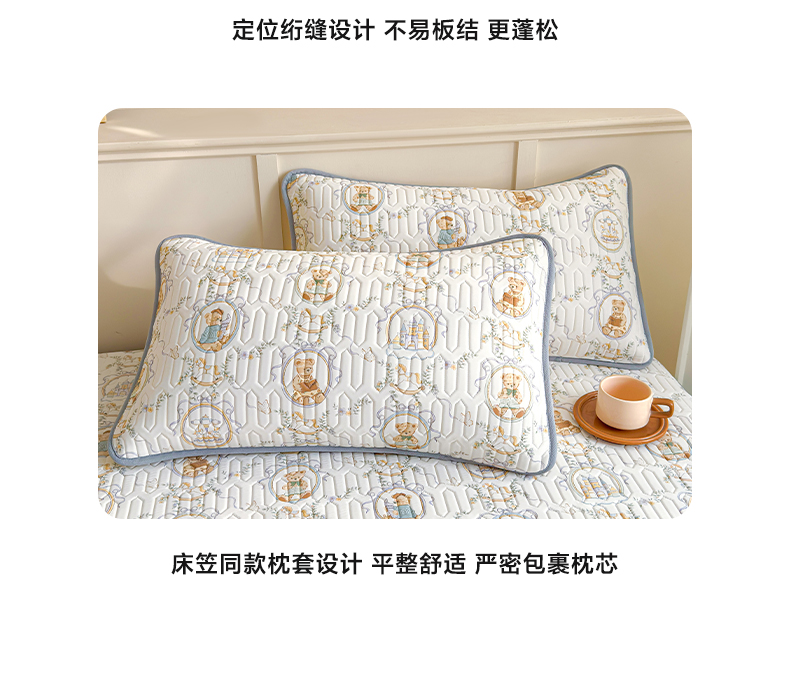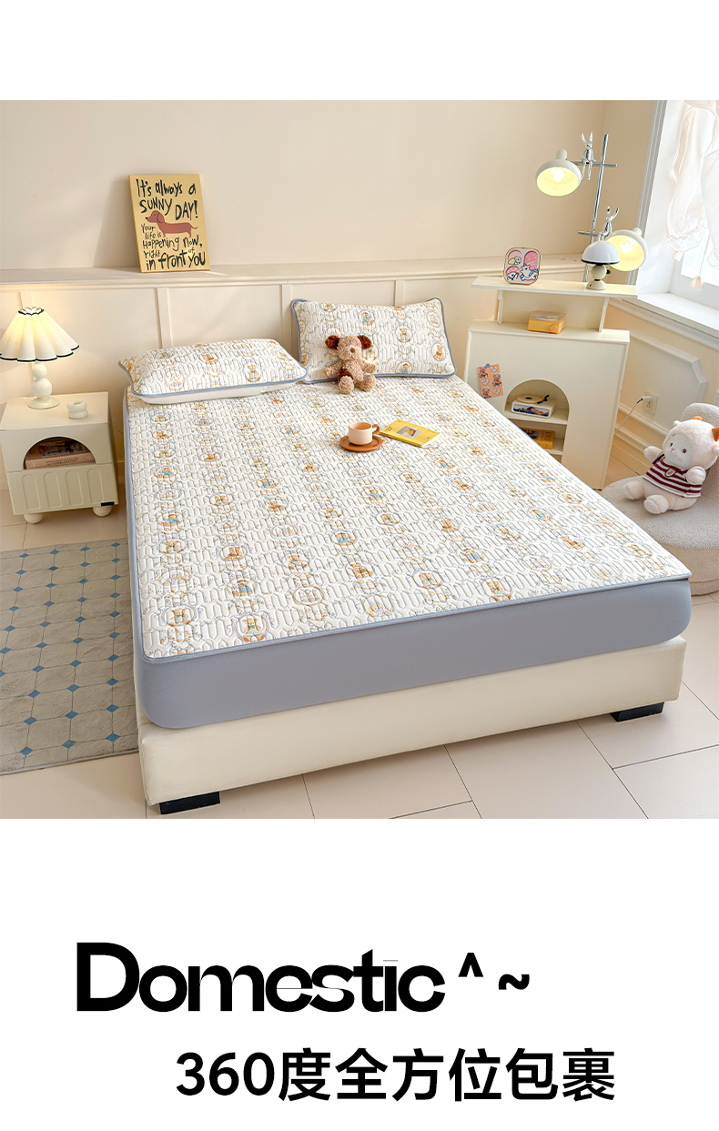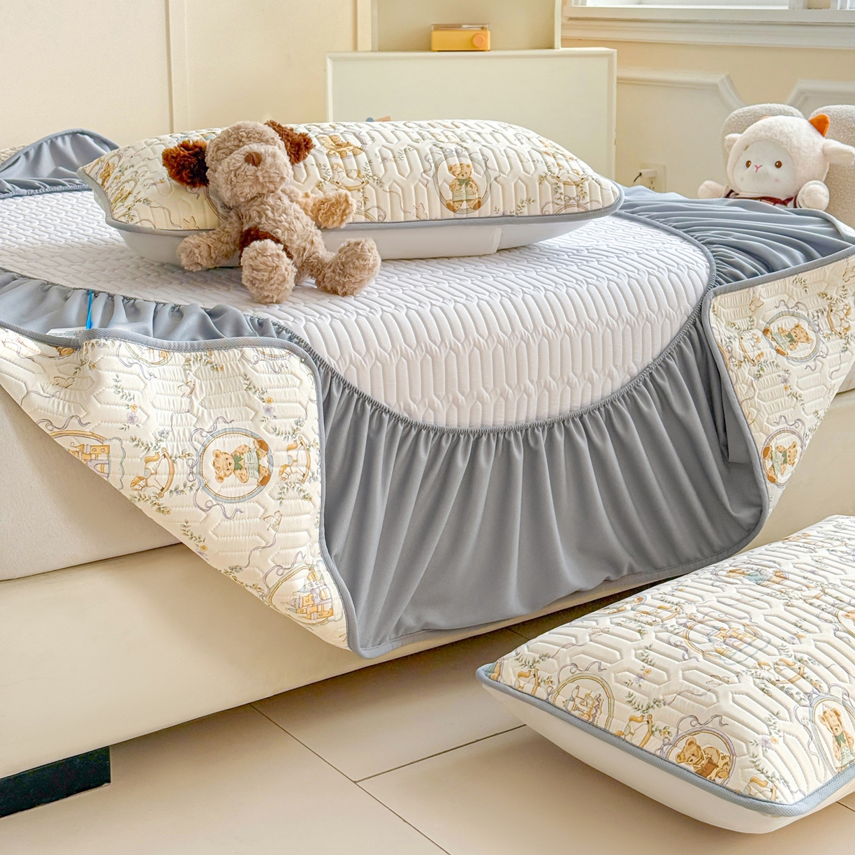 莱登卡奴 2026新款A类凉感丝锦氨印花凉席床笠款凉席席子系列 熊堡轻梦