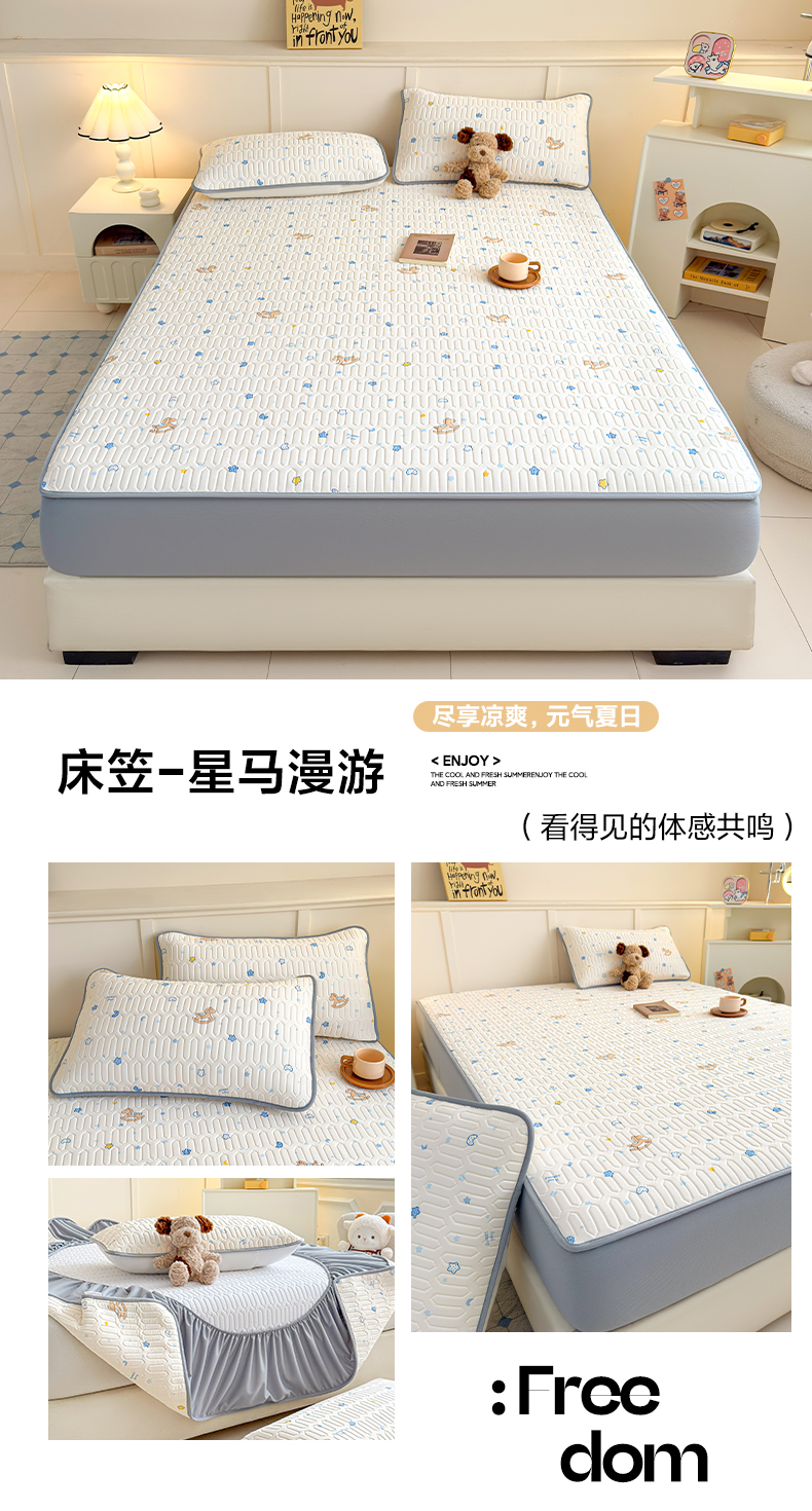 2026春夏新款A类冰淇淋凉感丝氨纶夹棉聚氨酯单床笠-曲纹