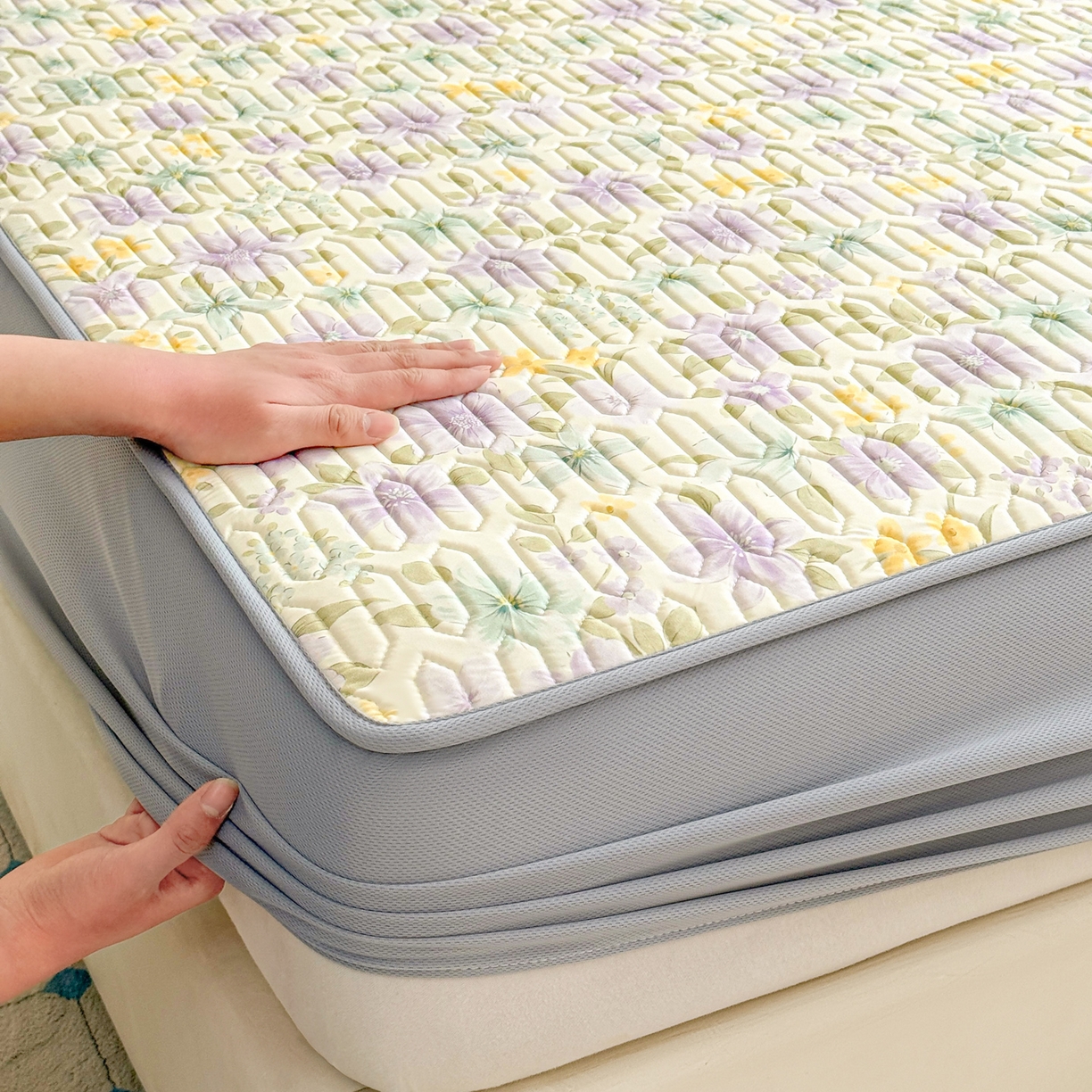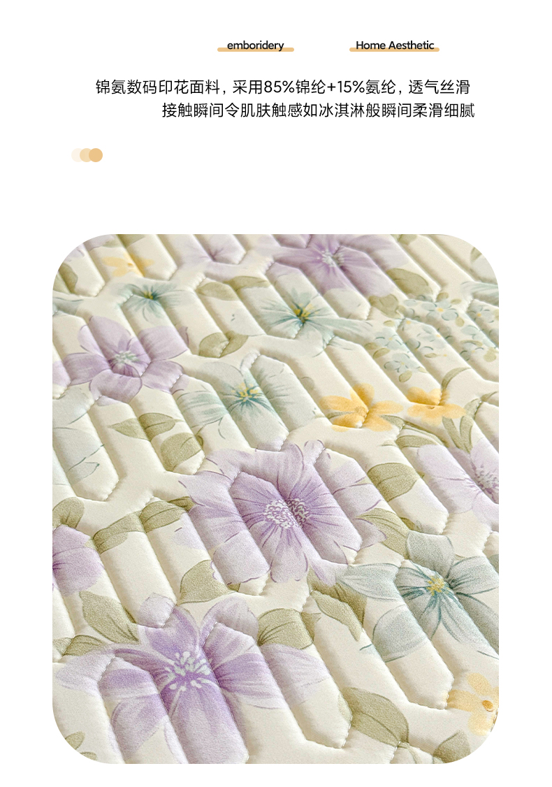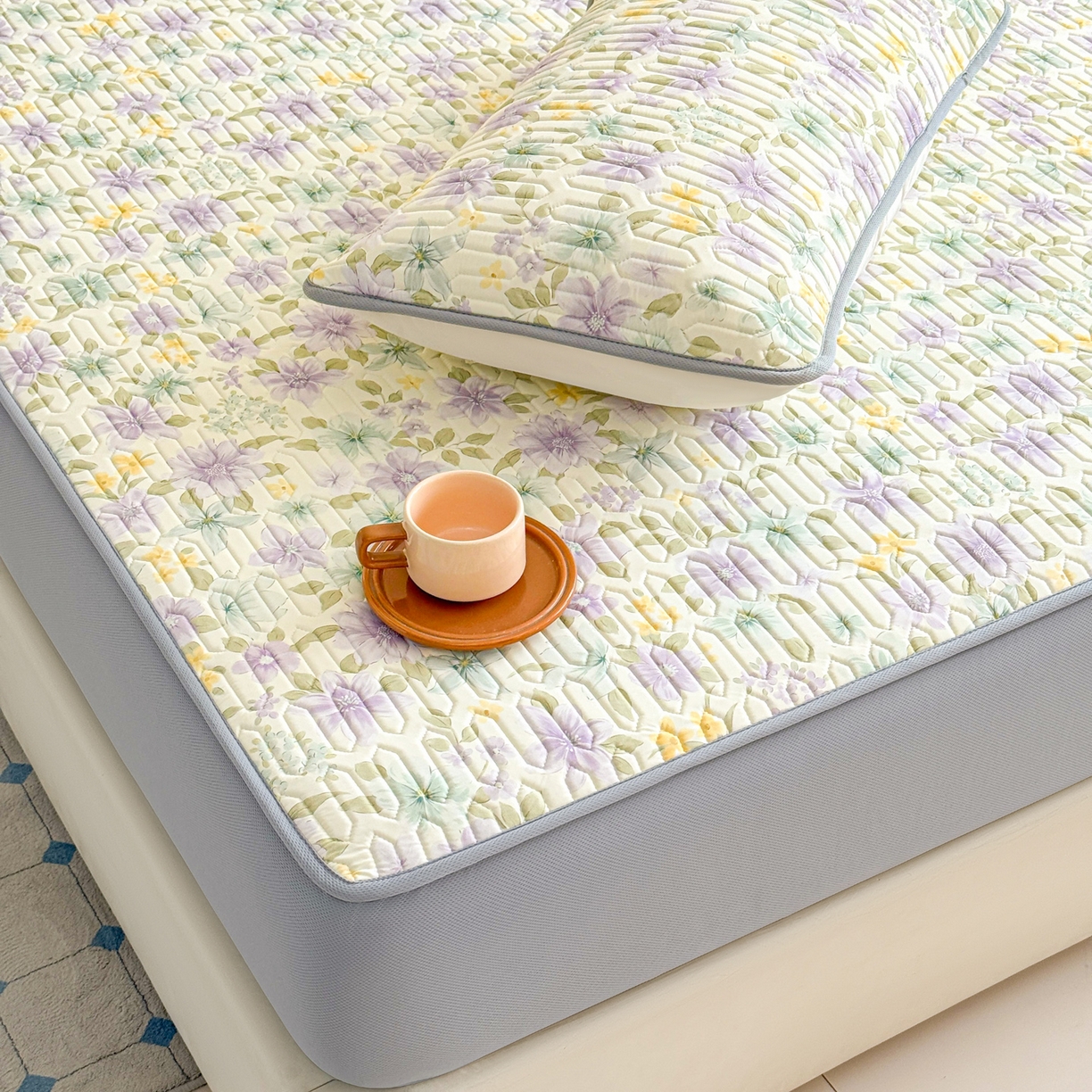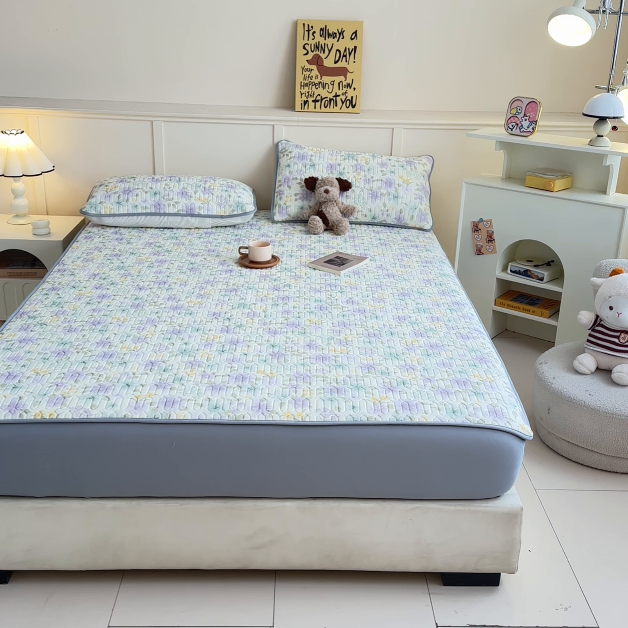 > 莱登卡奴 2026新款A类凉感丝锦氨印花凉席床笠款凉席席子系列 紫雾花眠