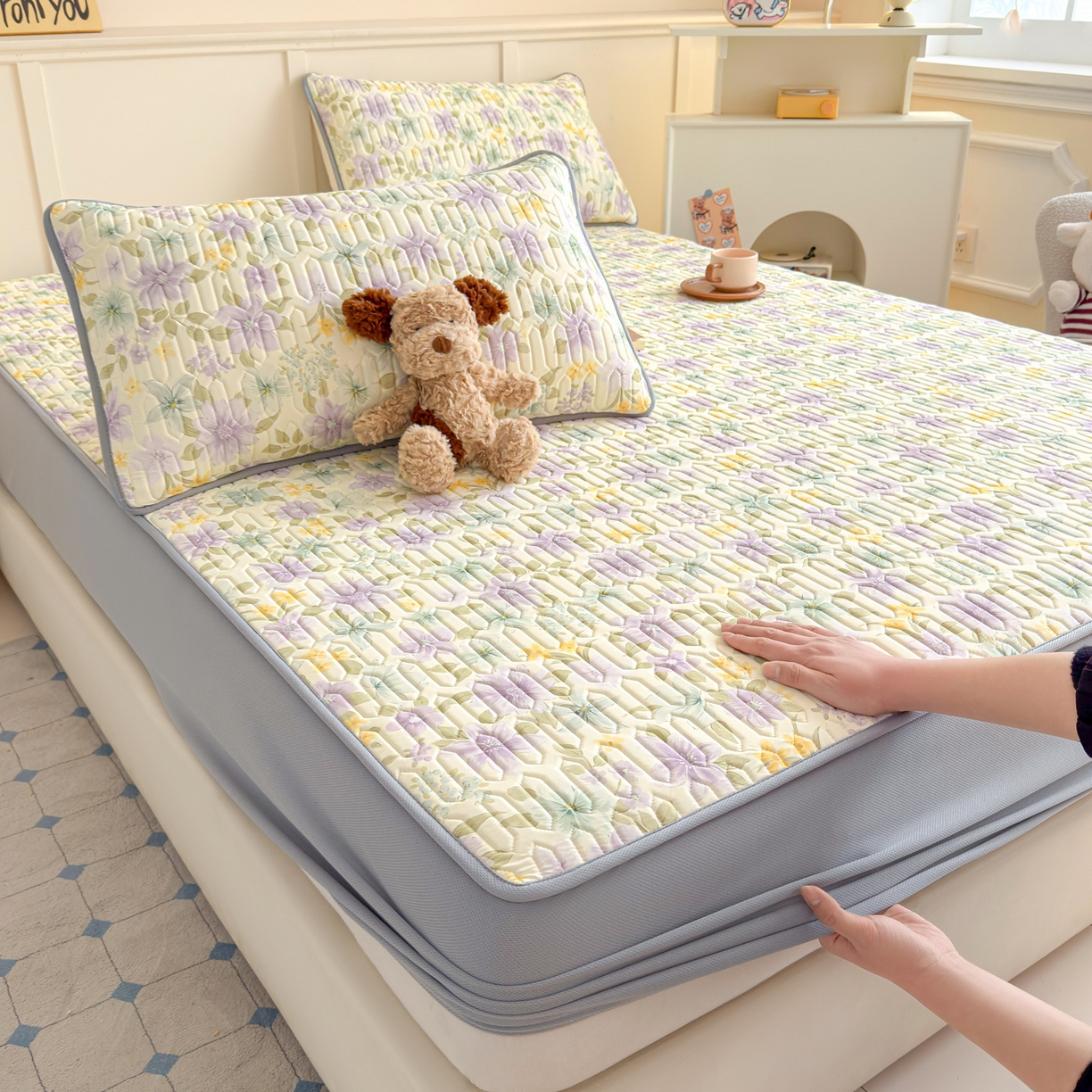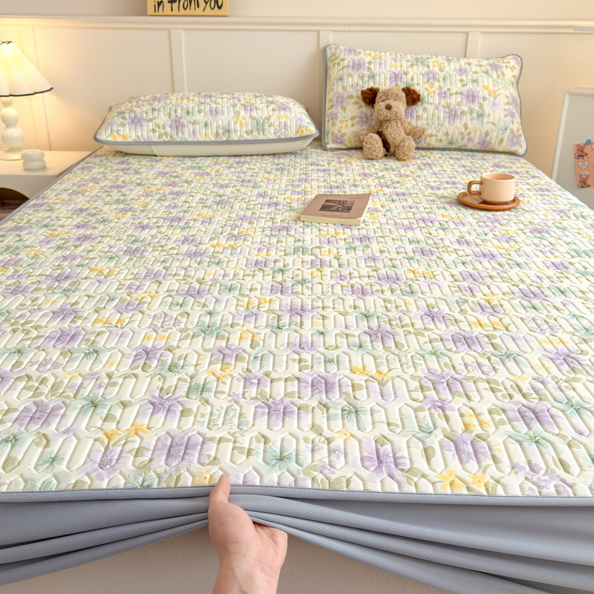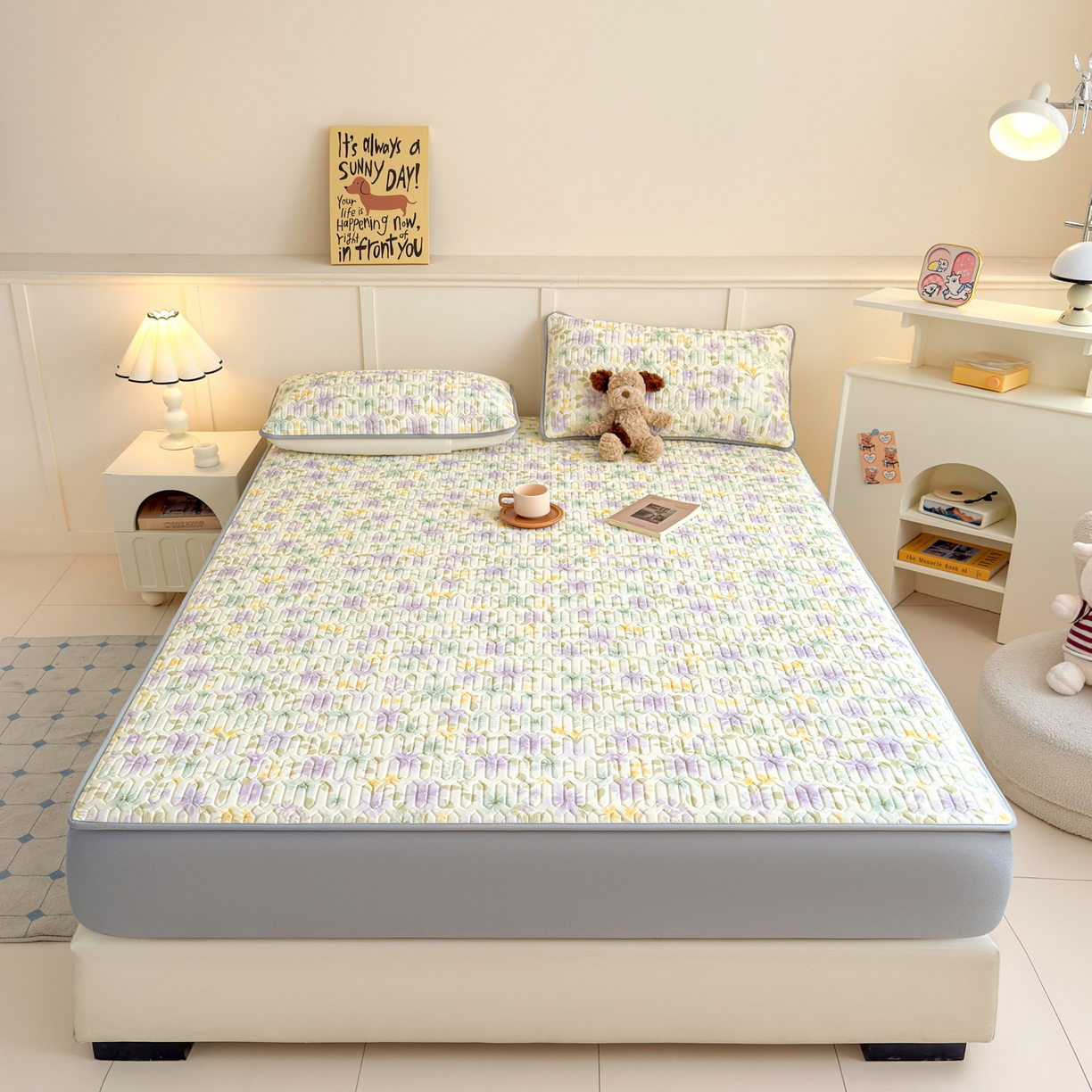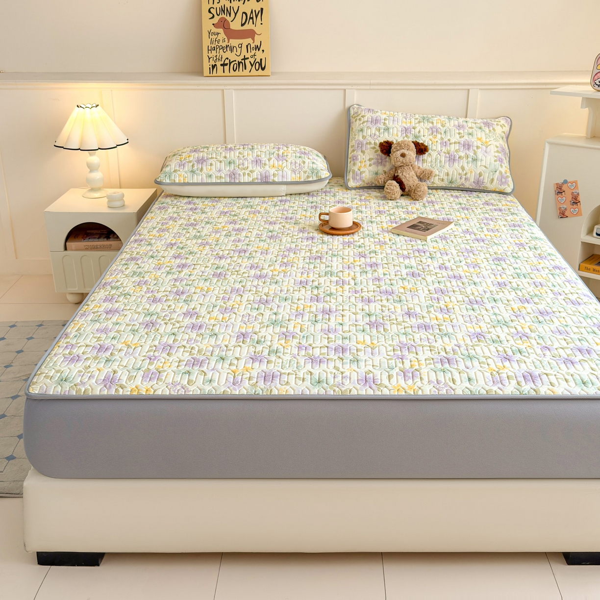 > 莱登卡奴 2026新款A类凉感丝锦氨印花凉席床笠款凉席席子系列 紫雾花眠