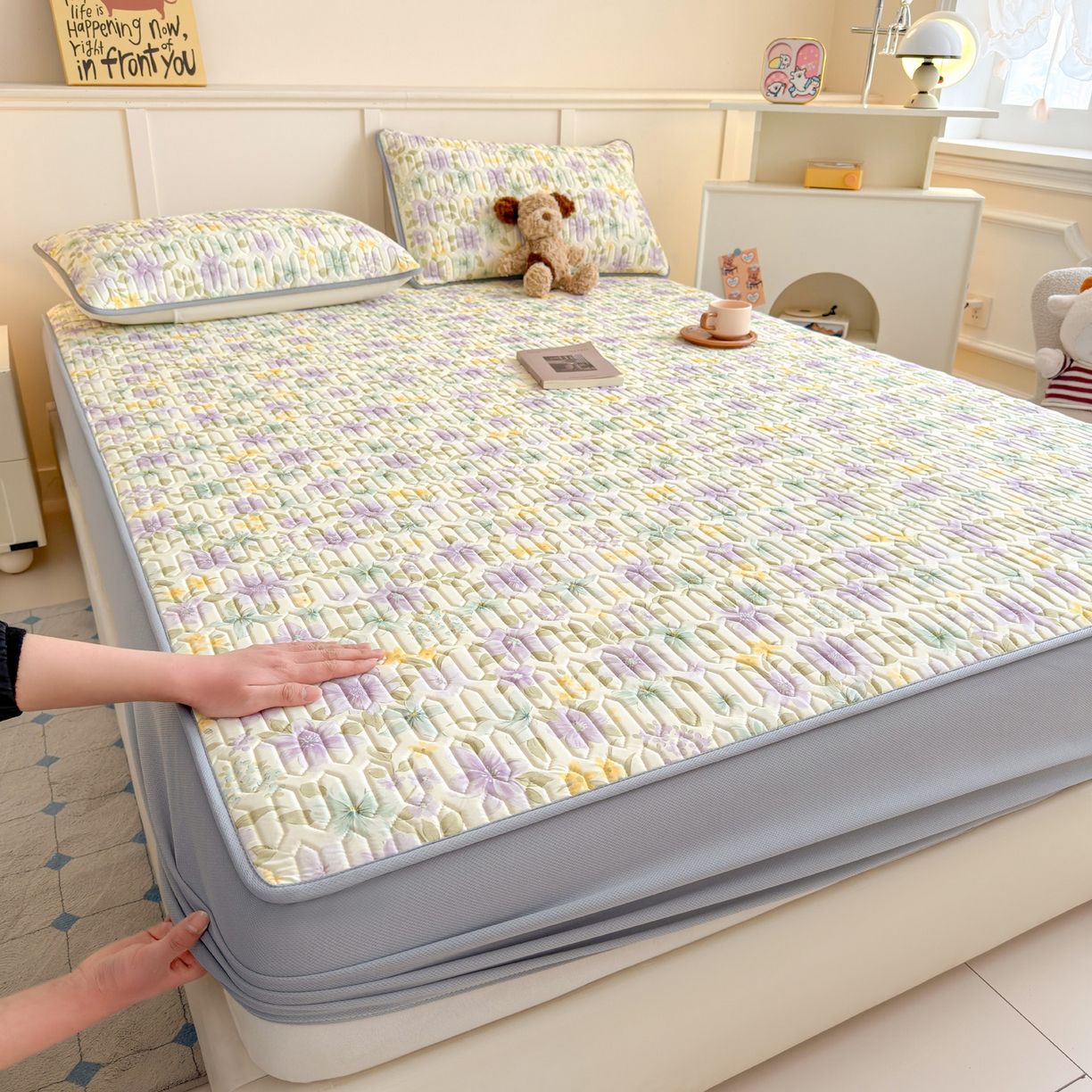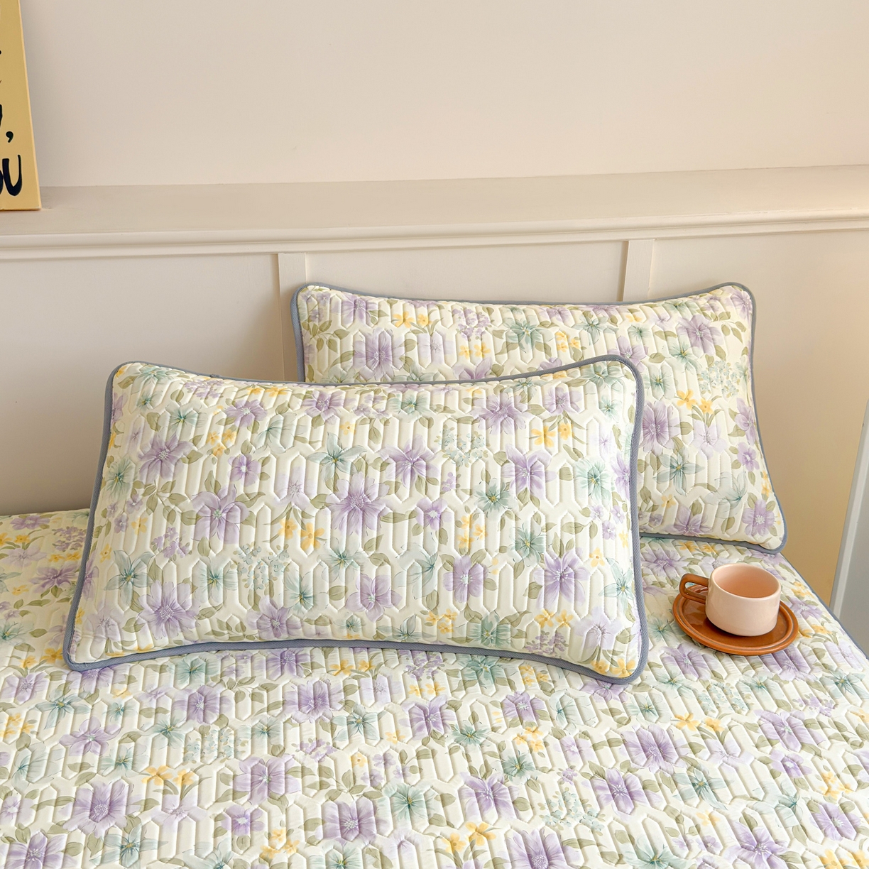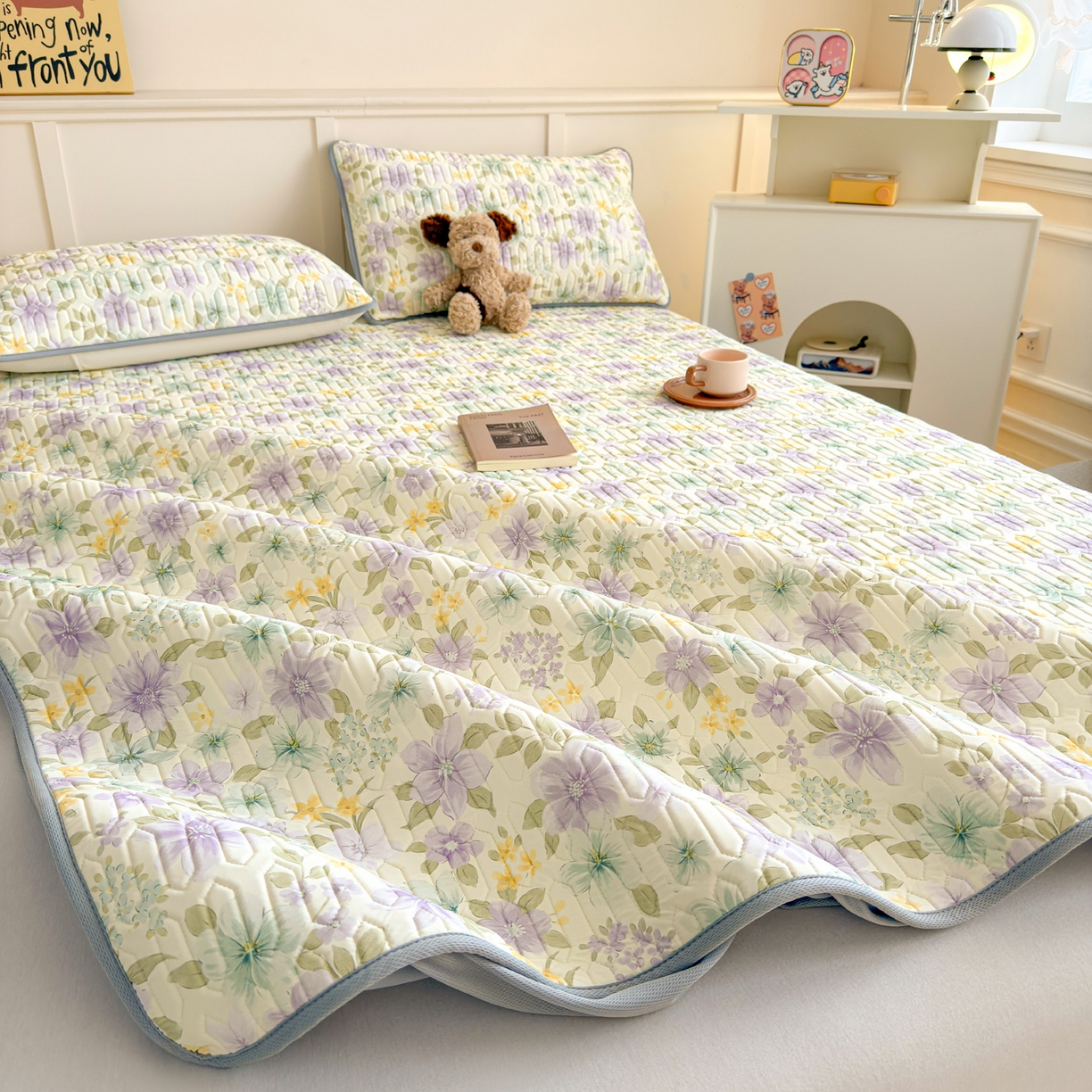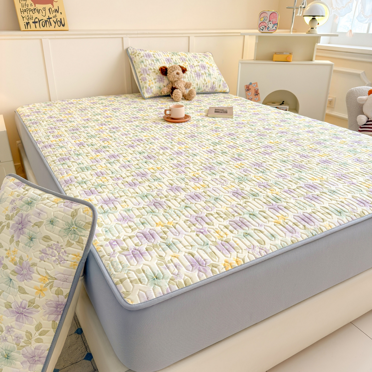 > 莱登卡奴 2026新款A类凉感丝锦氨印花凉席床笠款凉席席子系列 紫雾花眠
